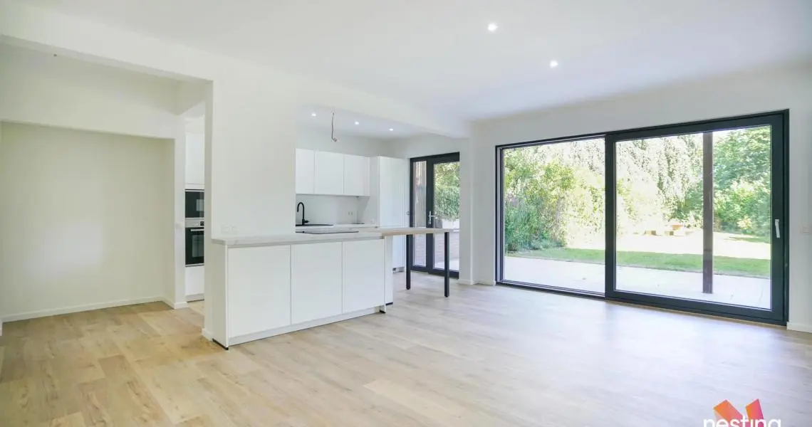 Superbe rez-de-chaussée entièrement rénové en 2022 avec de de beaux espaces, calme, lumineux et offrant :