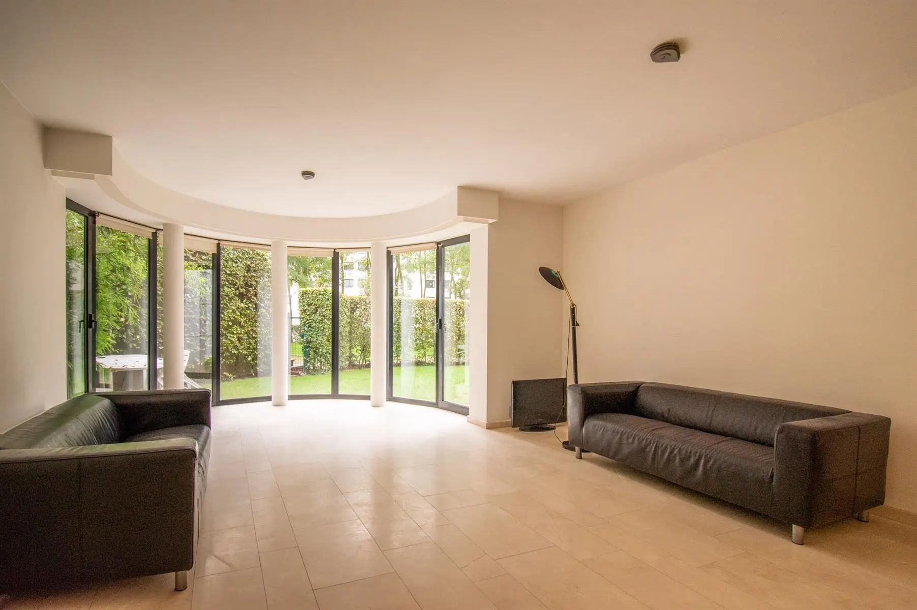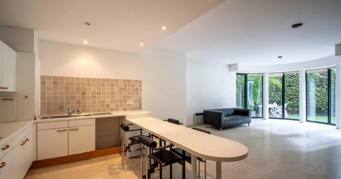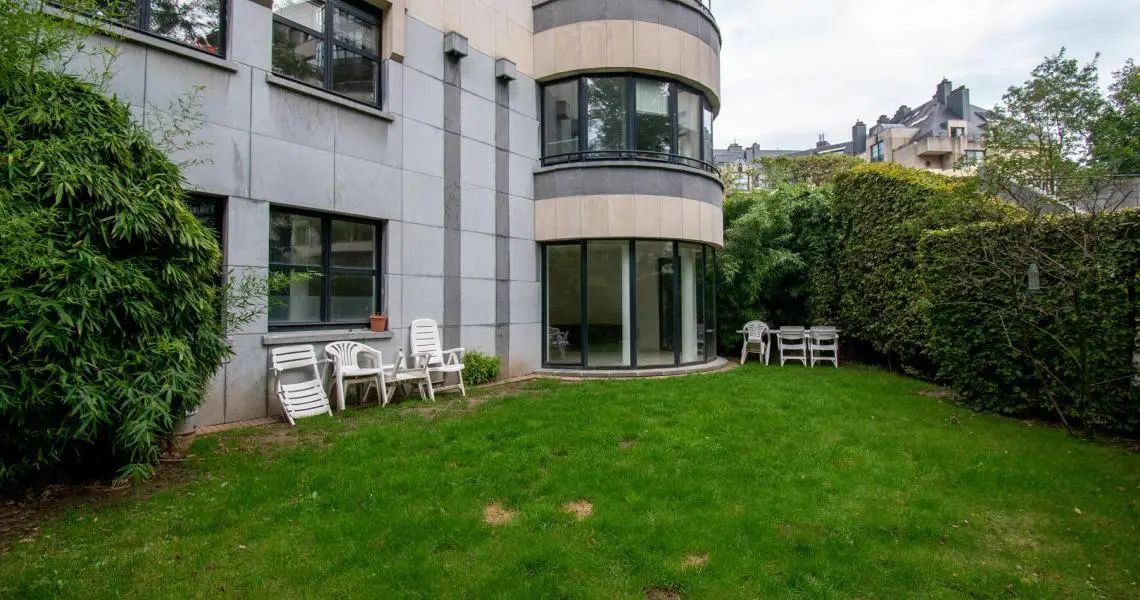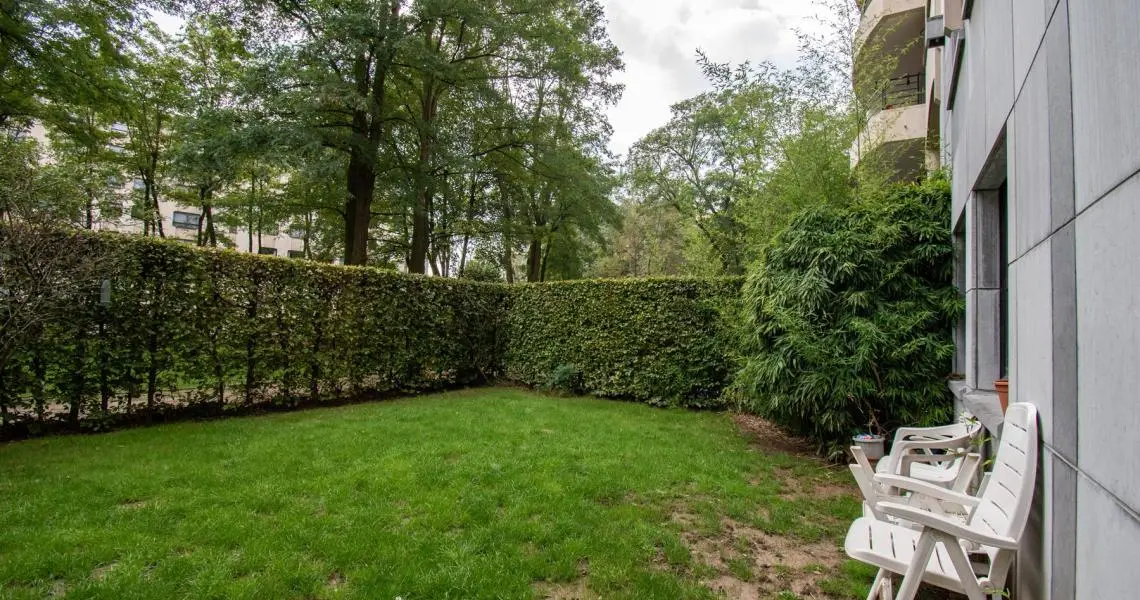 Uccle, dans le Parc Brugmann, à proximité de l'avenue Winston Churchill, de la place Vanderkindere, des commerces et des transports en communs, superbe rez-de-chaussée en bon état, lumineux et offrant : hall d'entrée, toilette séparée, cuisine US super-équipée, vaste séjour de +/-30m2 donnant sur le jardin de +/-90m2 orienté sud, chambres (+/- 13m2 et +/-9m2), salle de bains, buanderie. Buanderie. PEB : F. Charges : 210€/mois (Communs, fond de réserve, conciergerie, eau...).