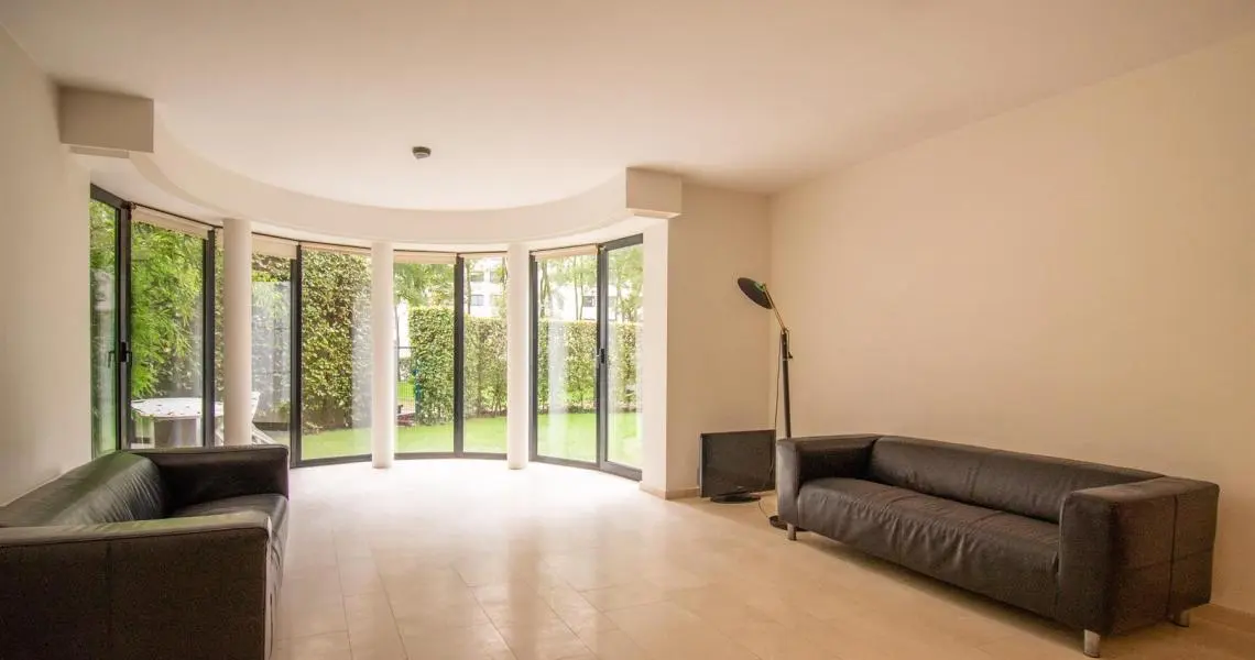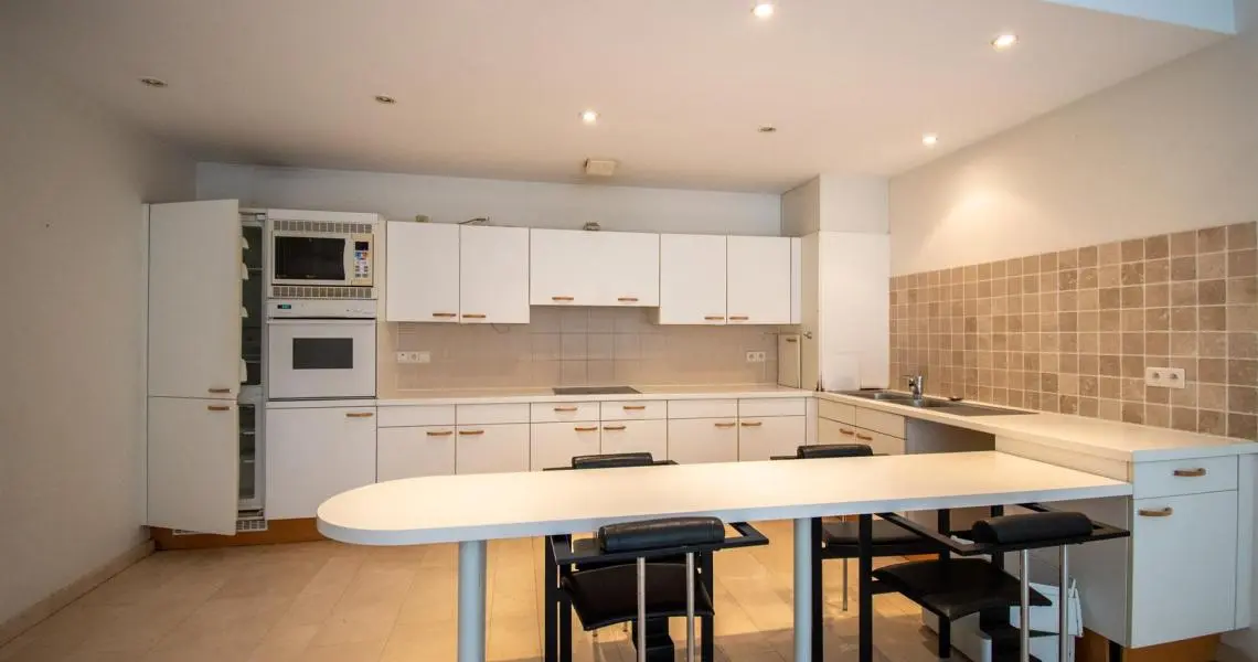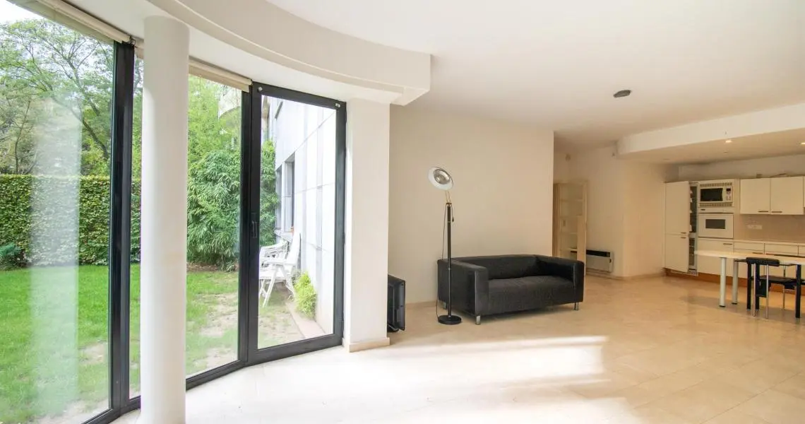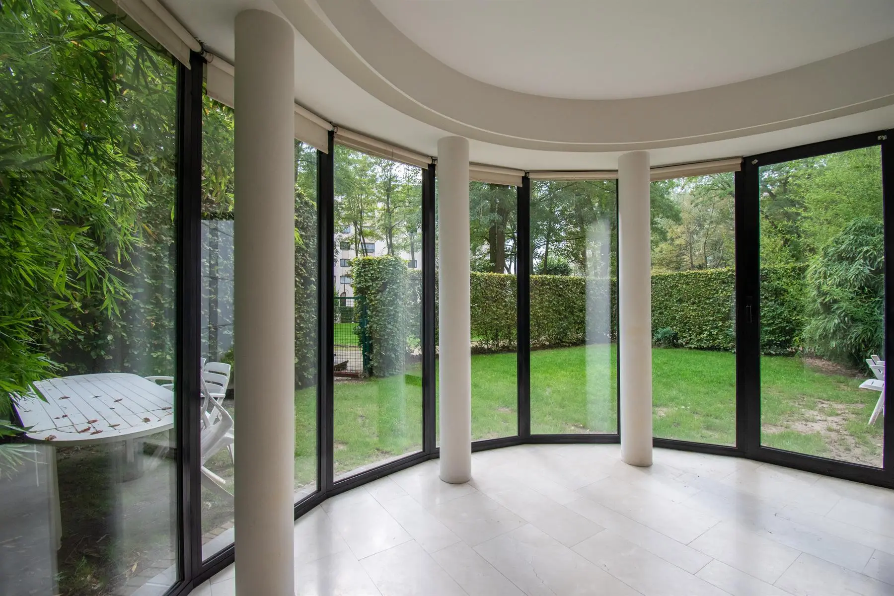 Uccle, dans le Parc Brugmann, à proximité de l'avenue Winston Churchill, de la place Vanderkindere, des commerces et des transports en communs, superbe rez-de-chaussée en bon état, lumineux et offrant : hall d'entrée, toilette séparée, cuisine US super-équipée, vaste séjour de +/-30m2 donnant sur le jardin de +/-90m2 orienté sud, chambres (+/- 13m2 et +/-9m2), salle de bains, buanderie. Buanderie. PEB : F. Charges : 210€/mois (Communs, fond de réserve, conciergerie, eau...).