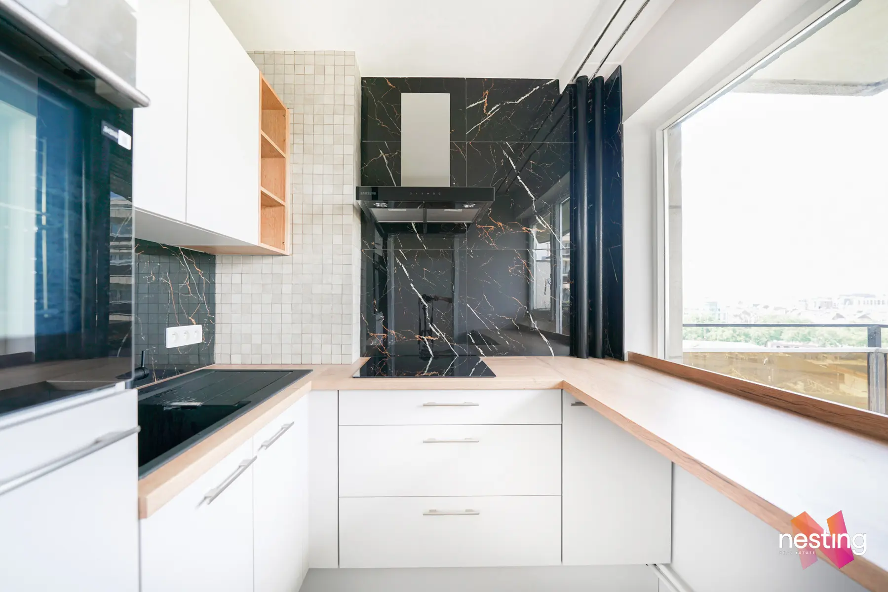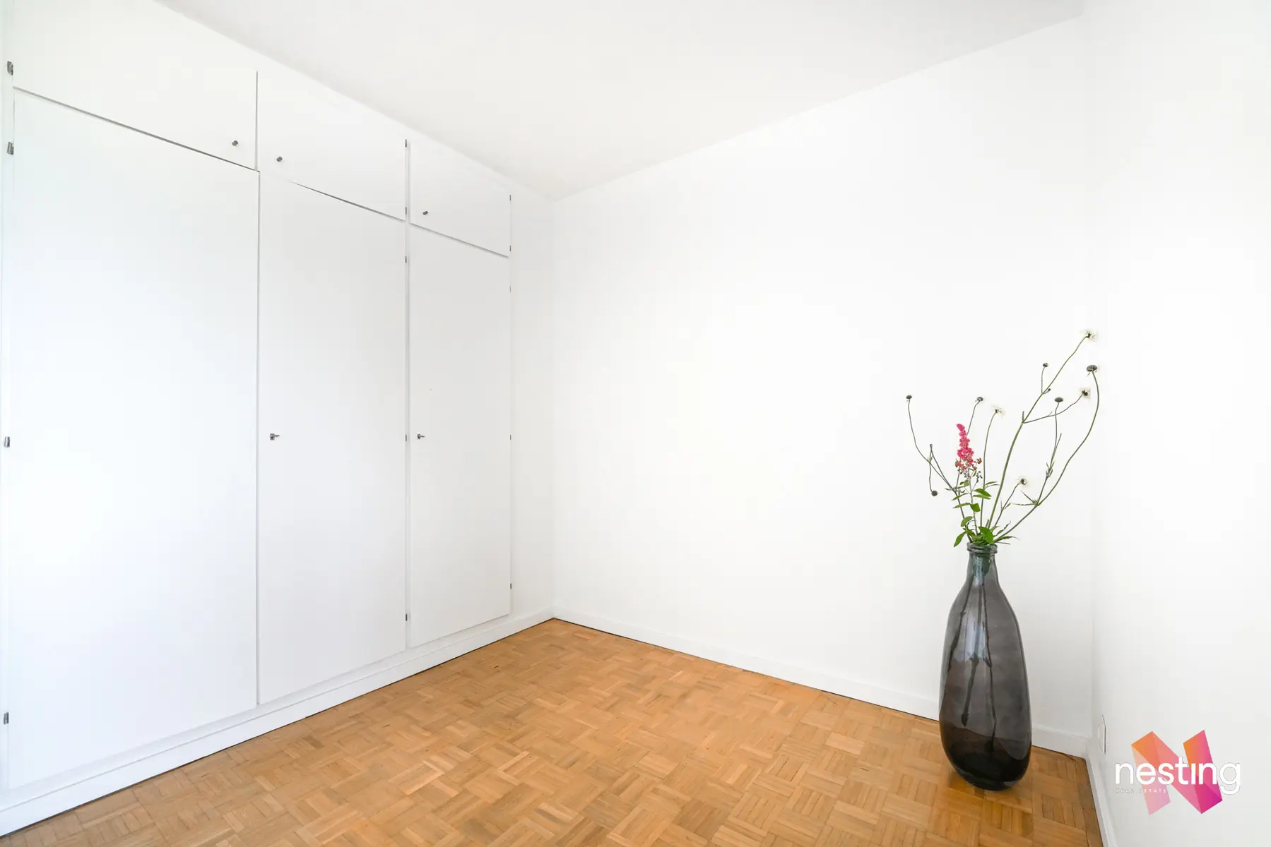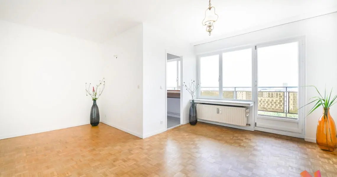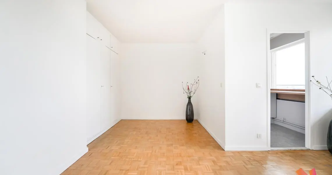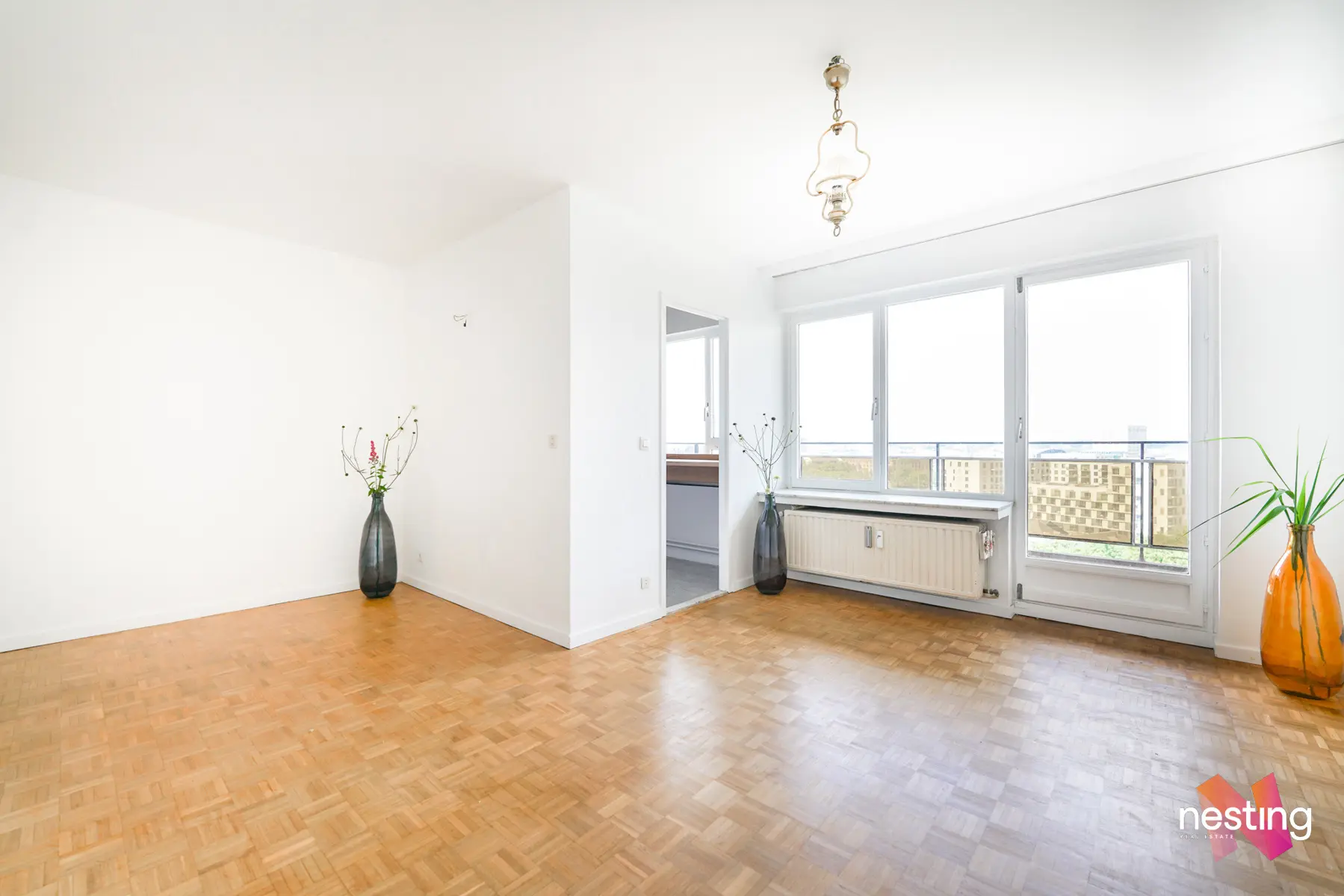 Le séjour de +-20m² avec un espace chambre doté d'un dressing est baigné de lumière naturelle, offrant un cadre agréable pour se détendre ou recevoir des invités. Du séjour, vous pourrez accéder à une terrasse de +- 7m² qui donne une vue sur tout Bruxelles