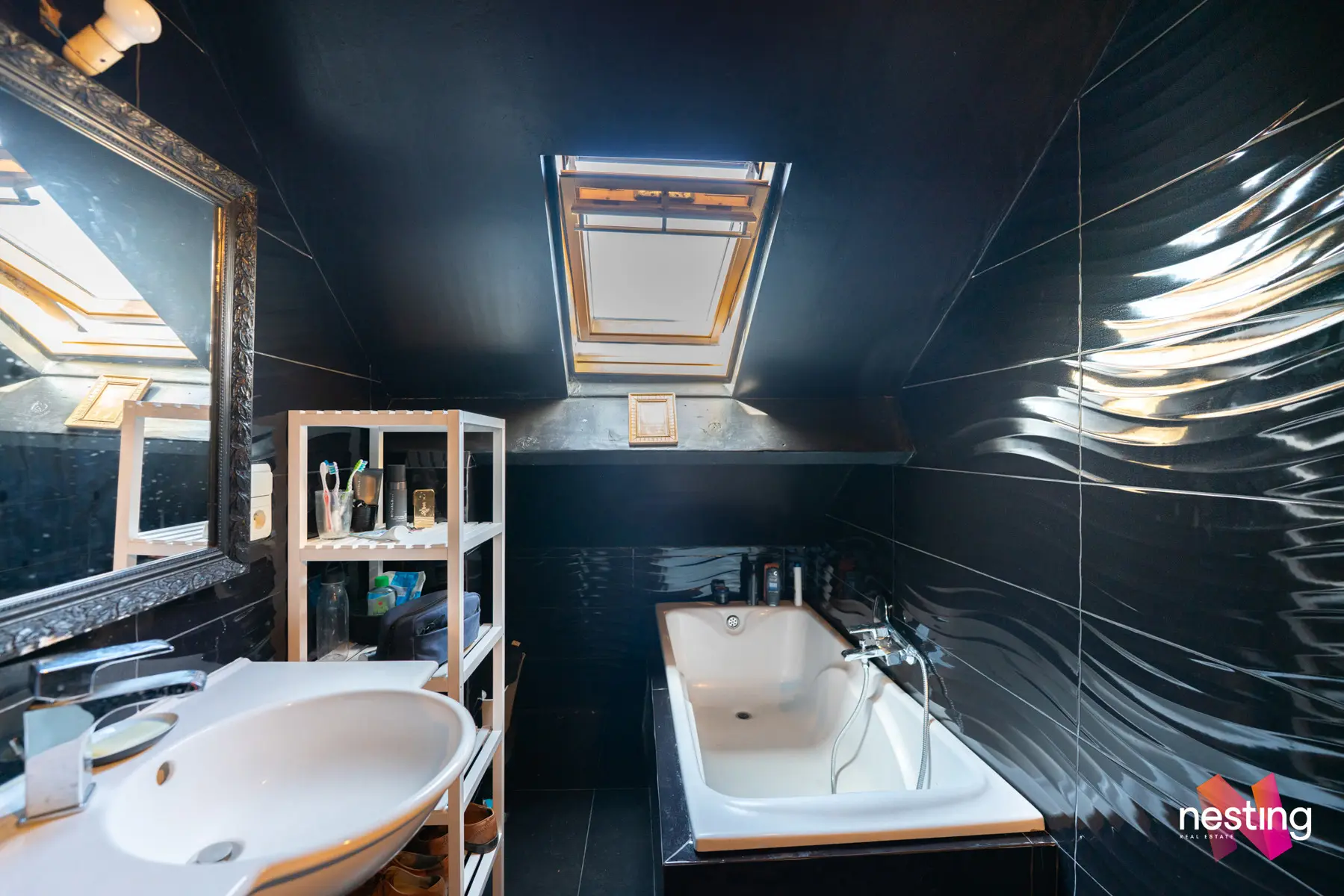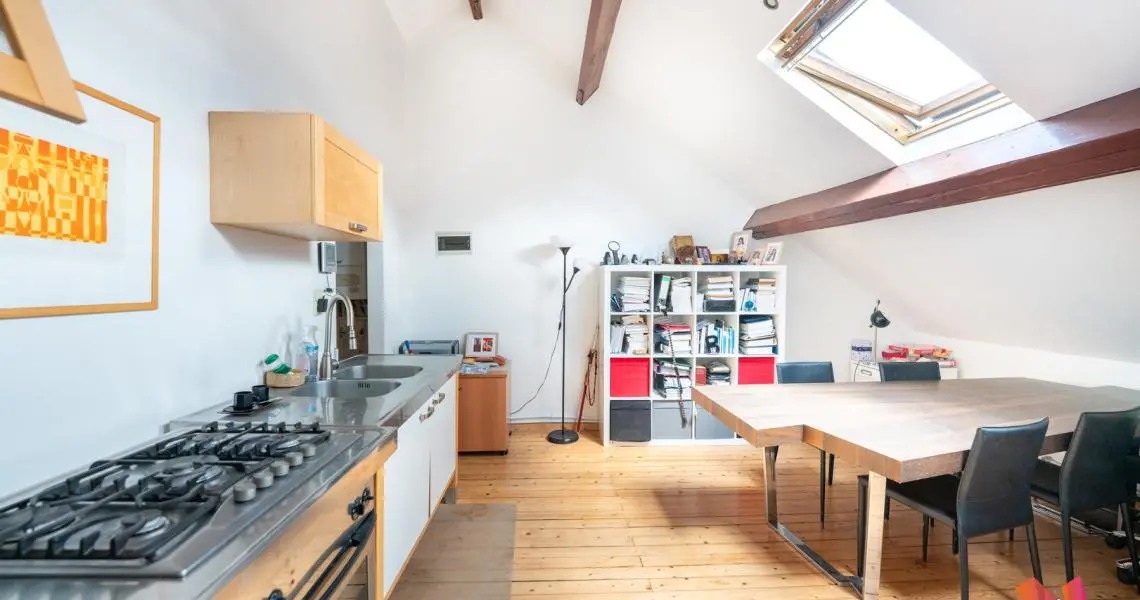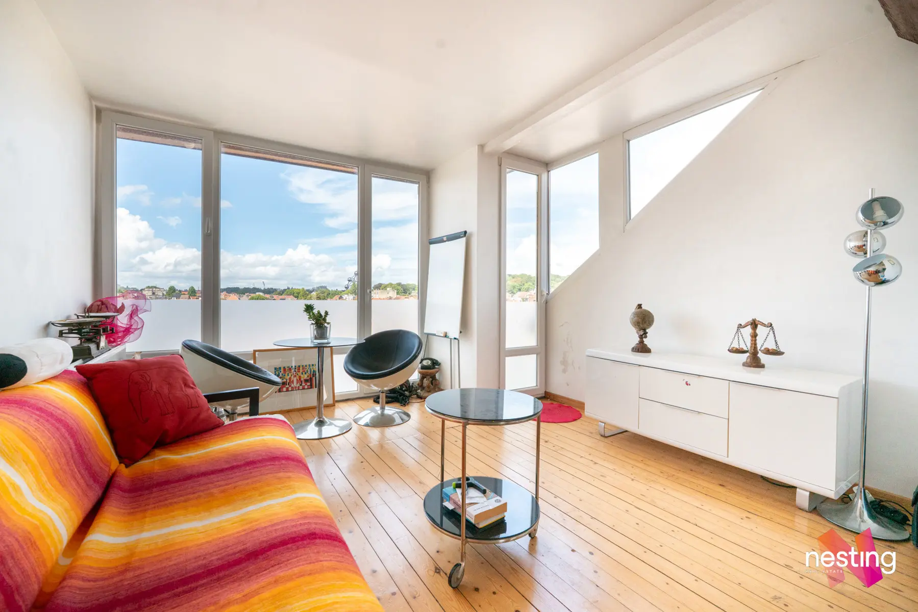 Une salle à manger avec une cuisine ouverte semi-équipée (il n'y a pas de frigo), une grand séjour de +- 29m2 avec un coin chambre, une terrasse exposée nord ouest idéale pour profiter de superbes couchers de soleil et une salle de bain.