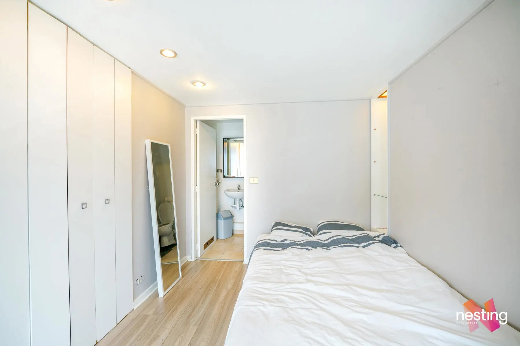 Le séjour spacieux de +-25m2 est baigné de lumière naturelle, offrant un cadre agréable pour se détendre ou recevoir des invités. Un coin chambre de 6m2 avec une salle de douche attenante et un WC séparé complète ce bien.