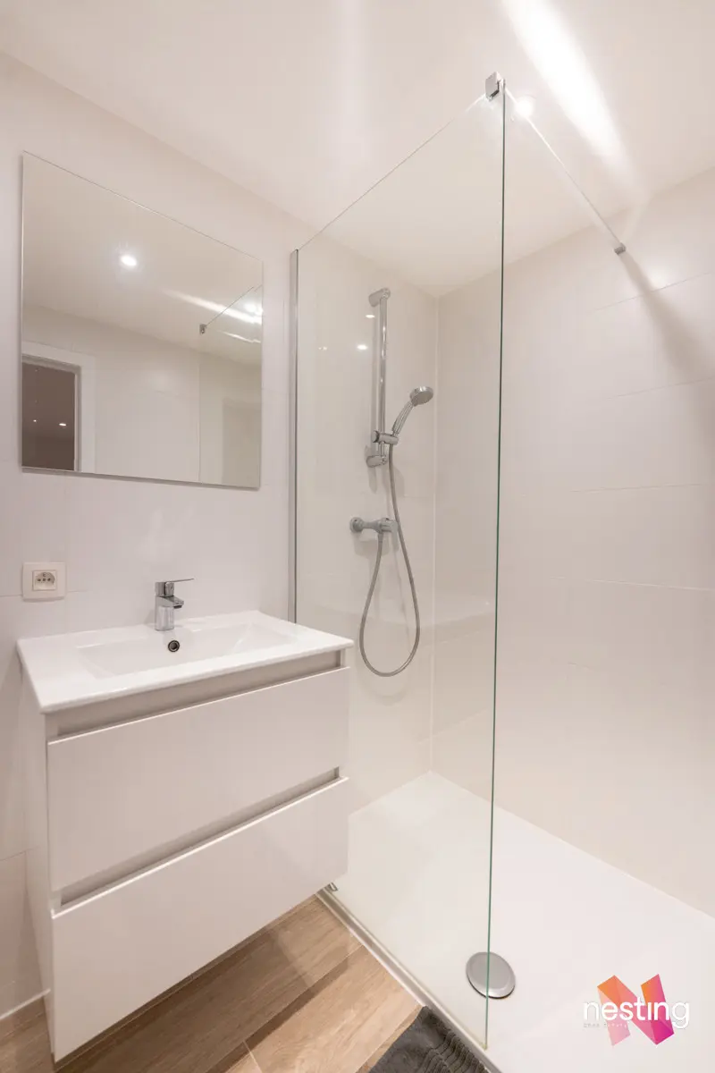 Studio de +- 60m2 avec cuisine équipée, et salle de douche avec wc.
