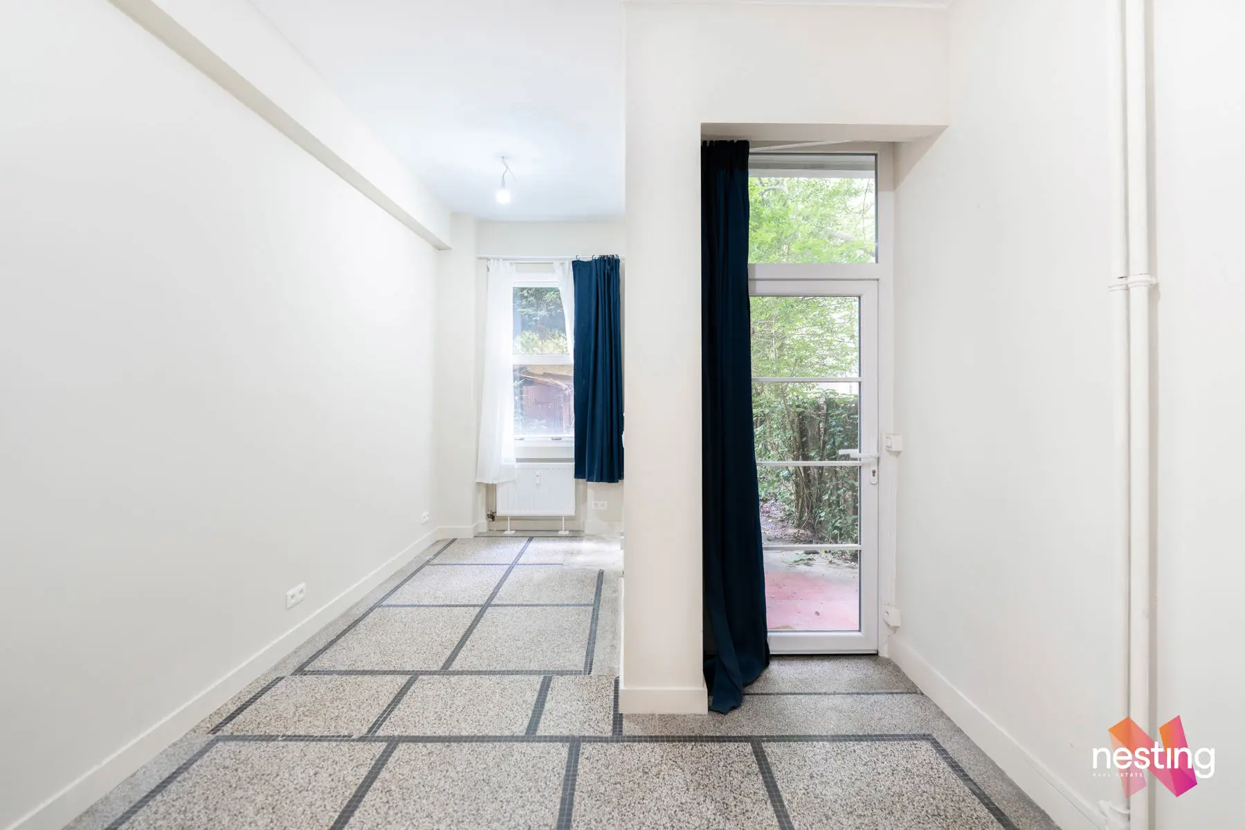 Ixelles, Avenue Emile de Beco, au rez de chaussée d'un bel immeuble, venez découvrir cette ancienne conciergerie réaménagée en studio + mansardes (chambre de bonne rénovée).