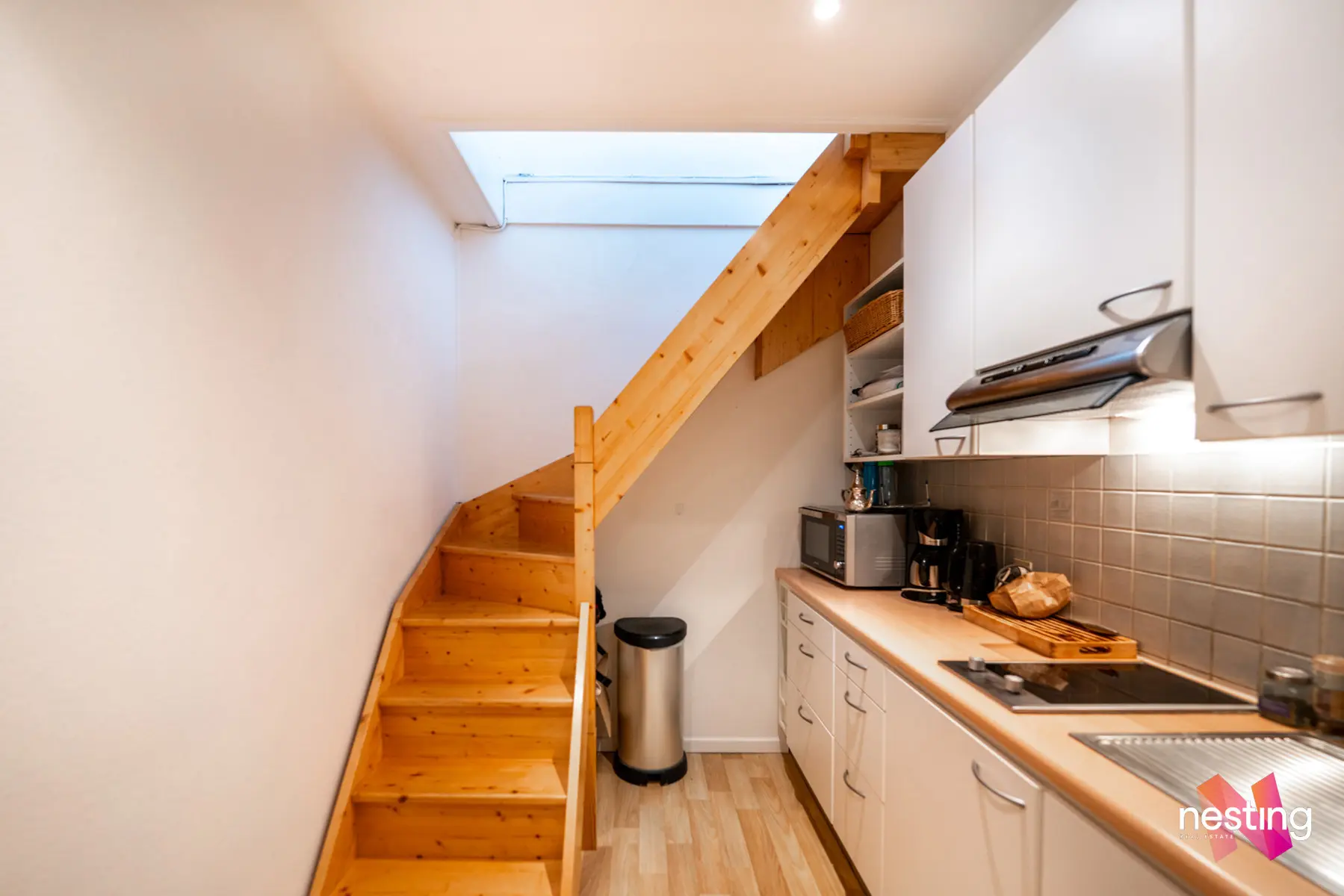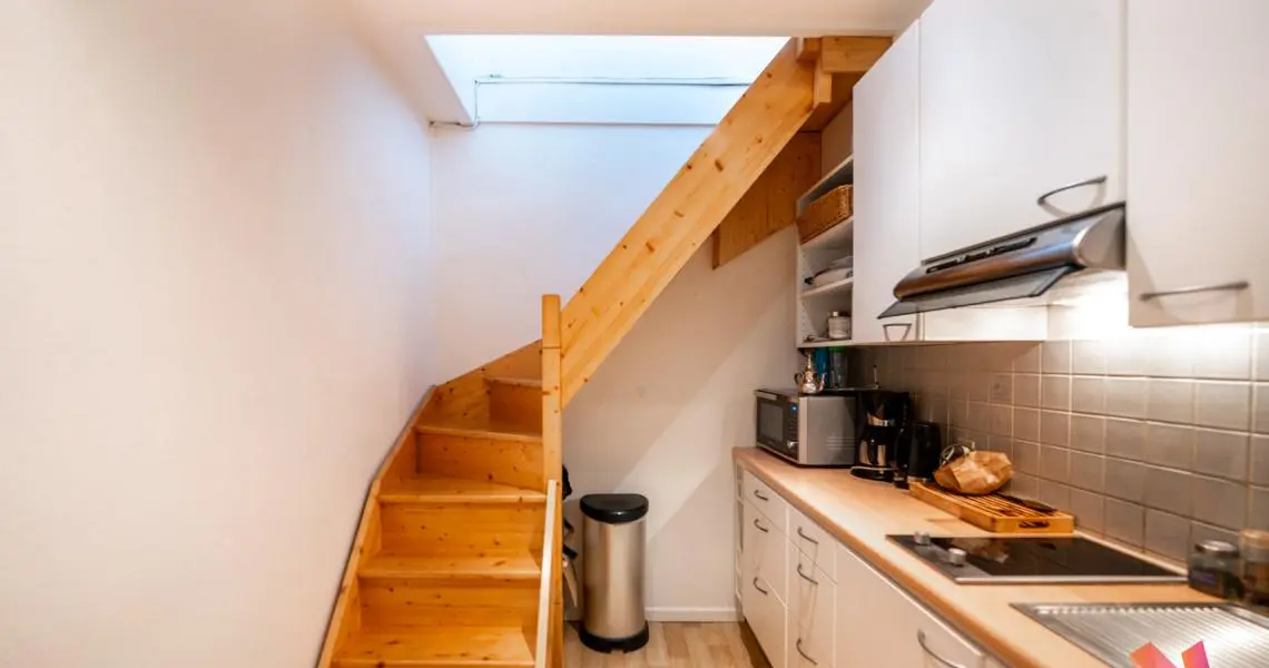 Une cuisine super-équipée, un grand séjour de +- 30m2 avec un coin nuit et une salle de douche.