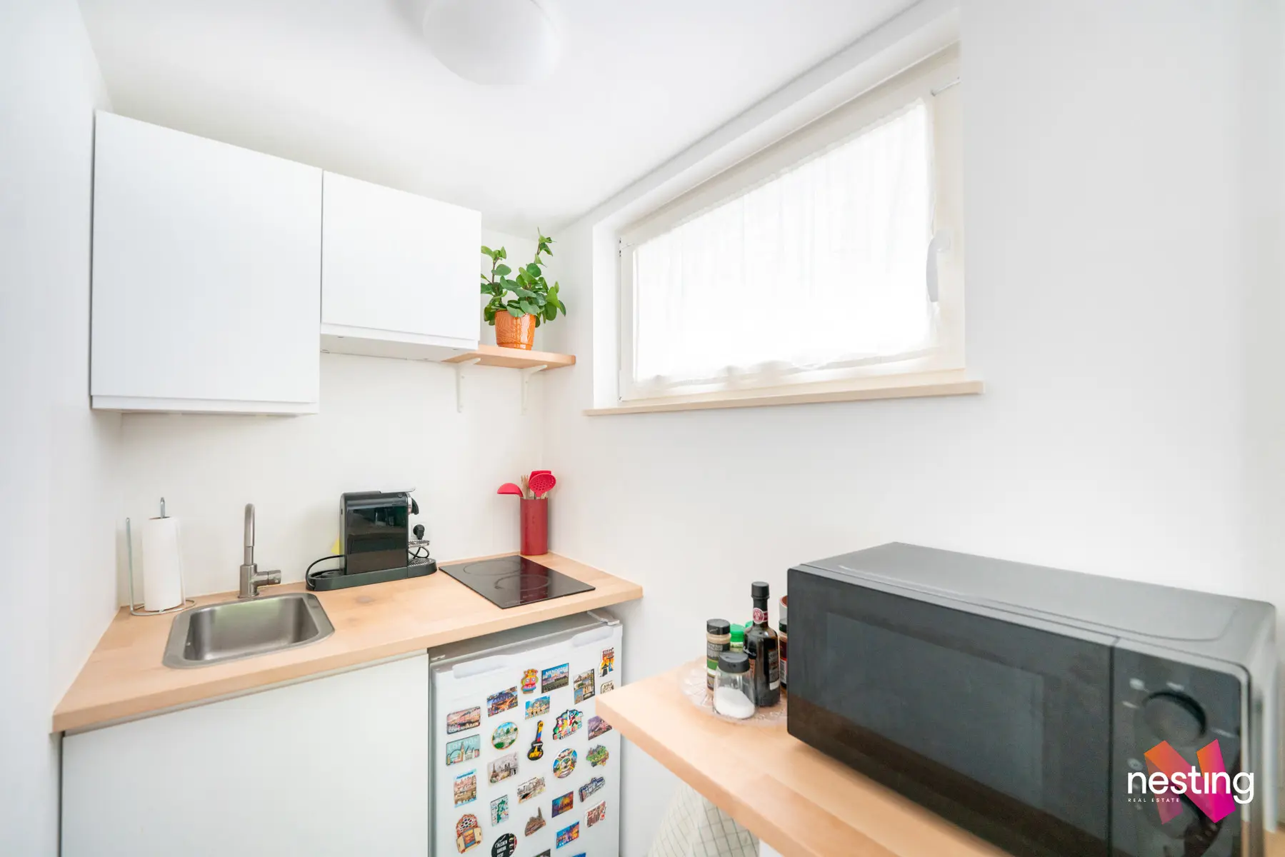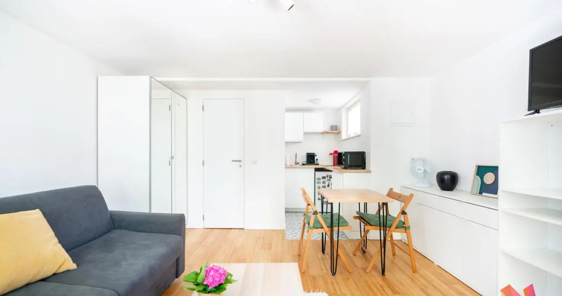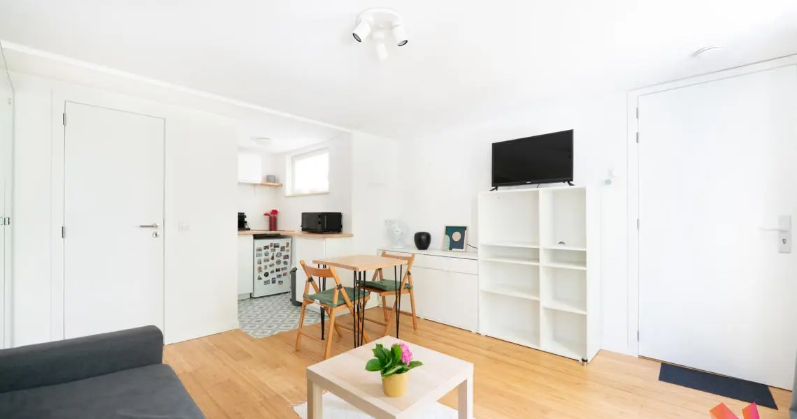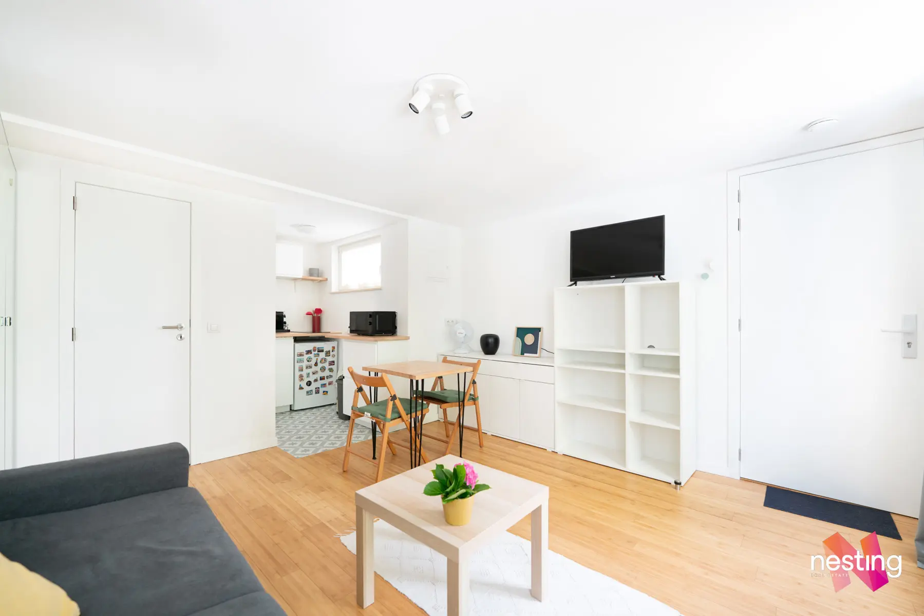 Studio de +-25m2 avec cuisine équipée, et salle de douche avec wc.