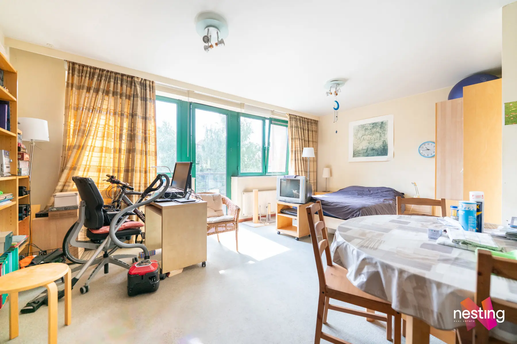 Saint-Gilles, idéalement situé Entre Hôtel des monnaies, la place Stéphanie, Louise, la Barrière de Saint-Gilles à proximité des commerces et des transports en communs, dans un immeuble de 1990, au 3ème étage avec ascenseur, venez découvrir ce studio de +- 45m2 comprenant :