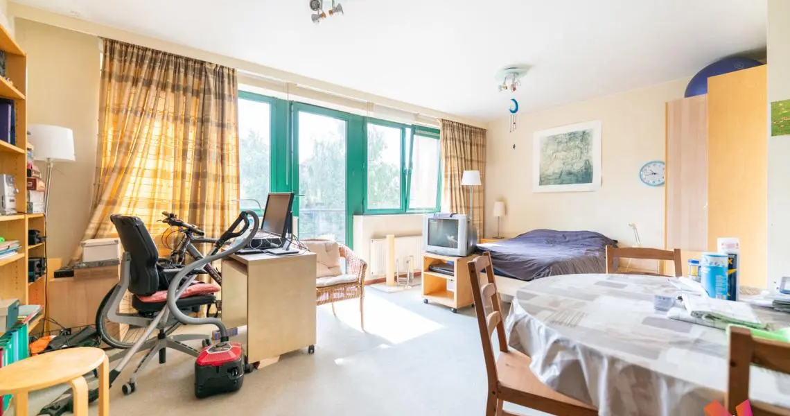 Un hall d'entrée avec placard, wc séparé, beau séjour/chambre de +-25m2 donnant accès à une terrasse de +-3m2,