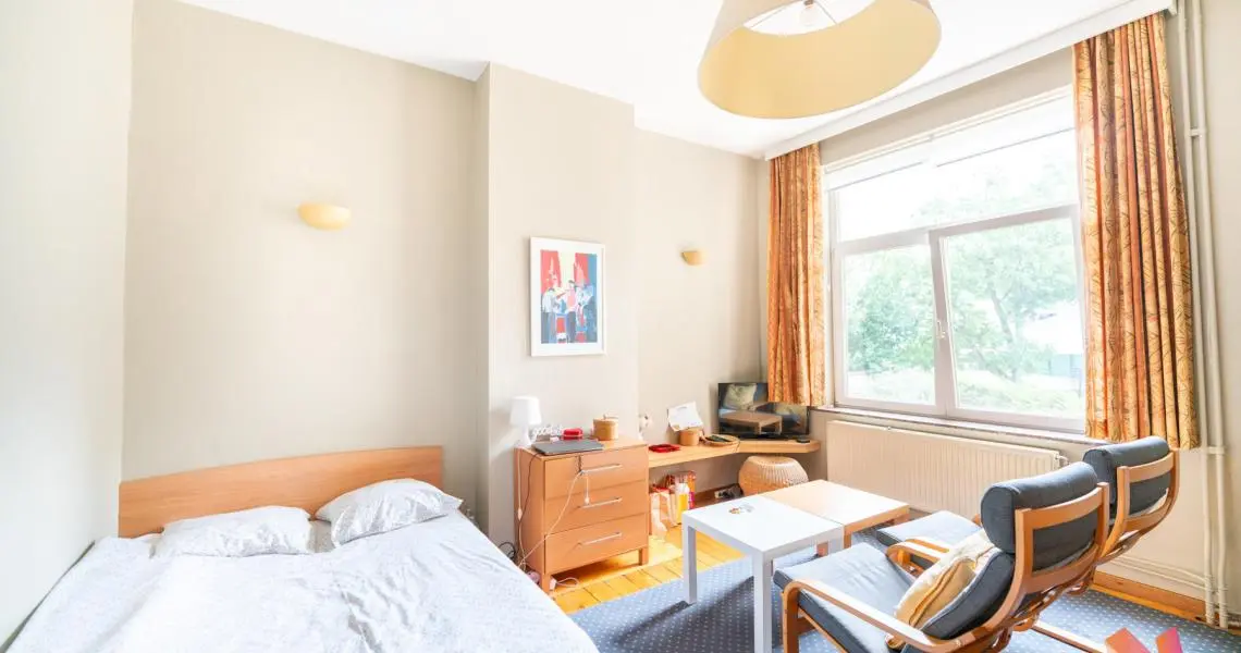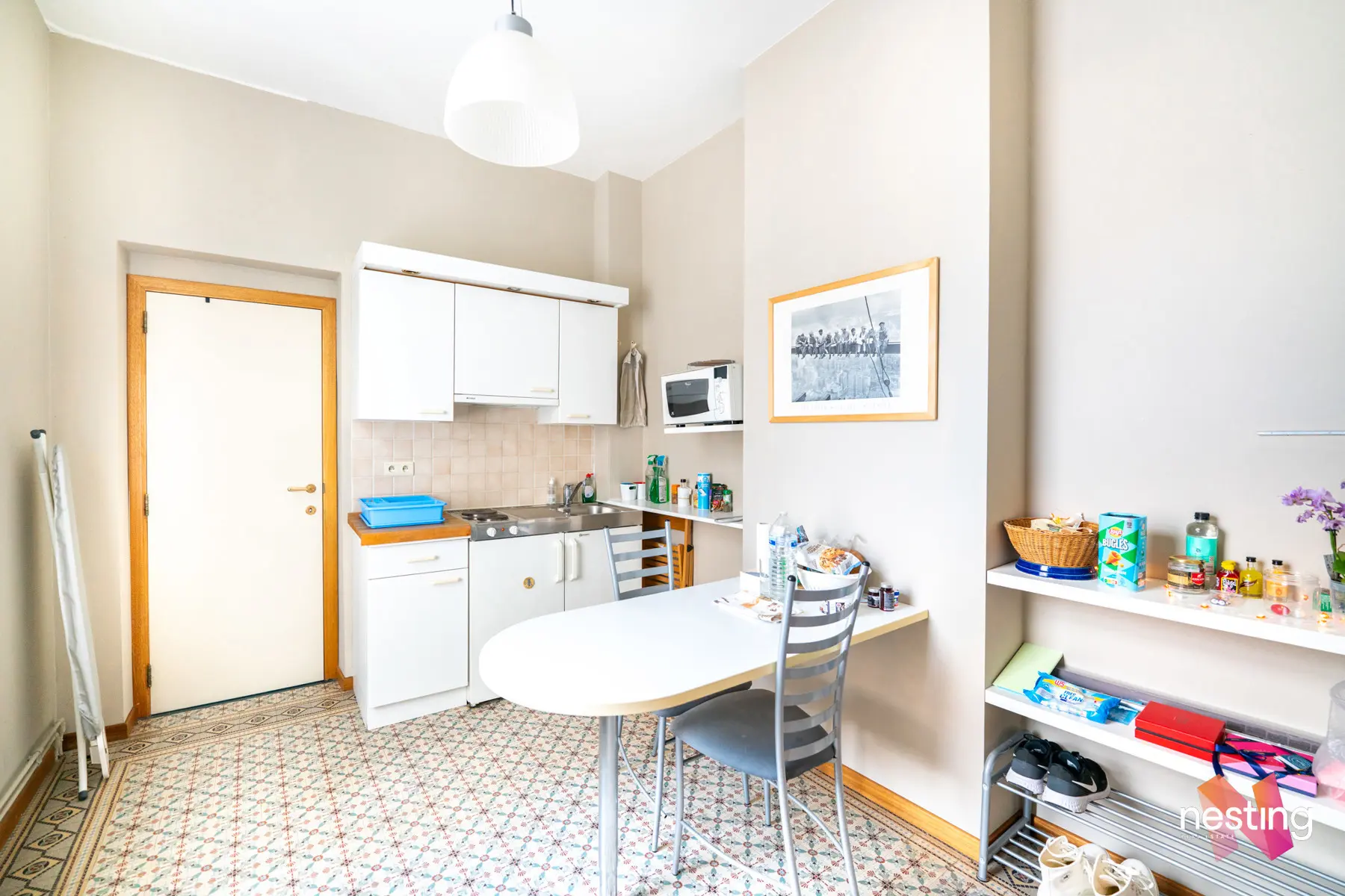 Un séjour avec un espaces lit, une grande cuisine ainsi qu'une salle de douche. L'immeuble dispose également d'une buanderie communes comprise dans les charges.