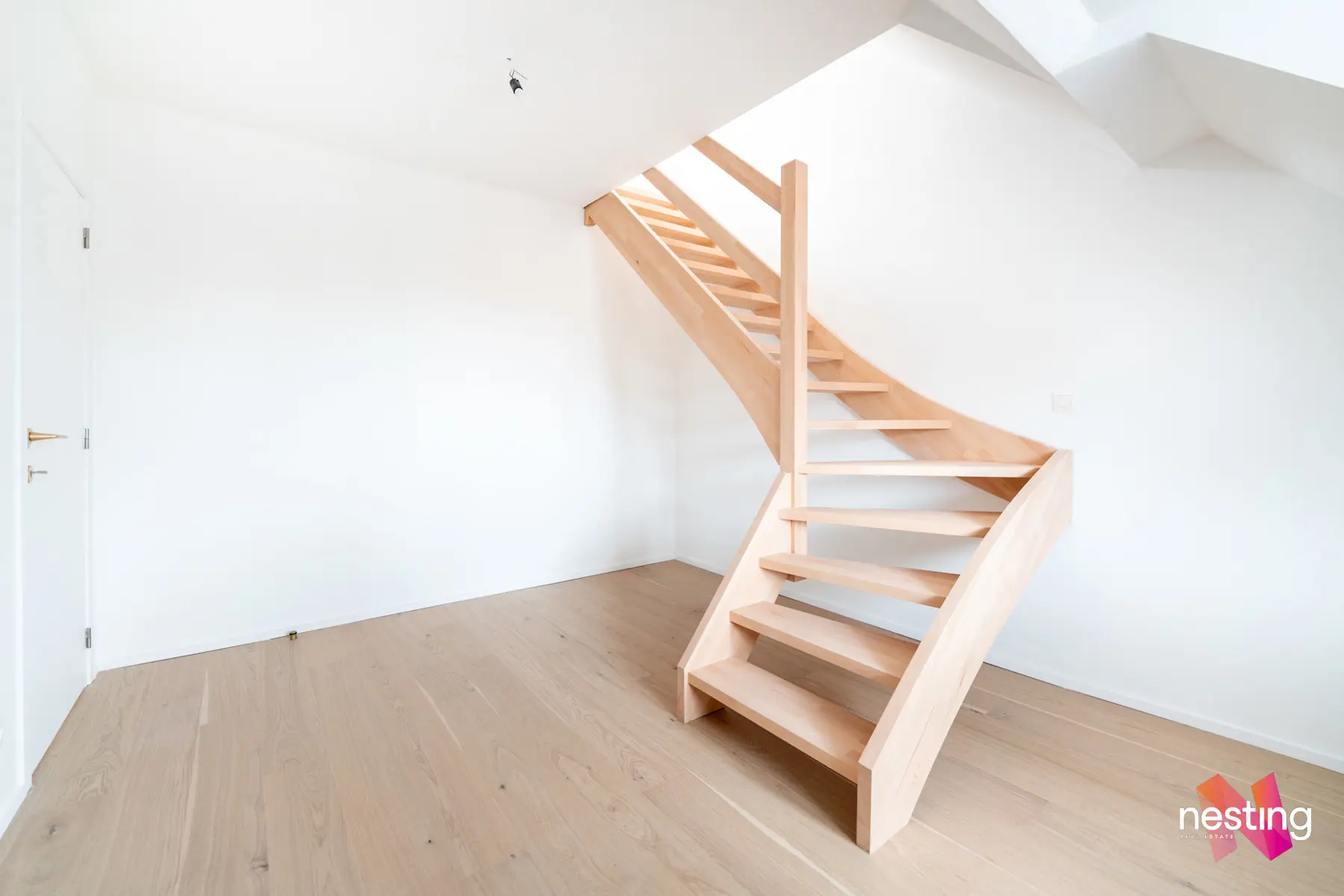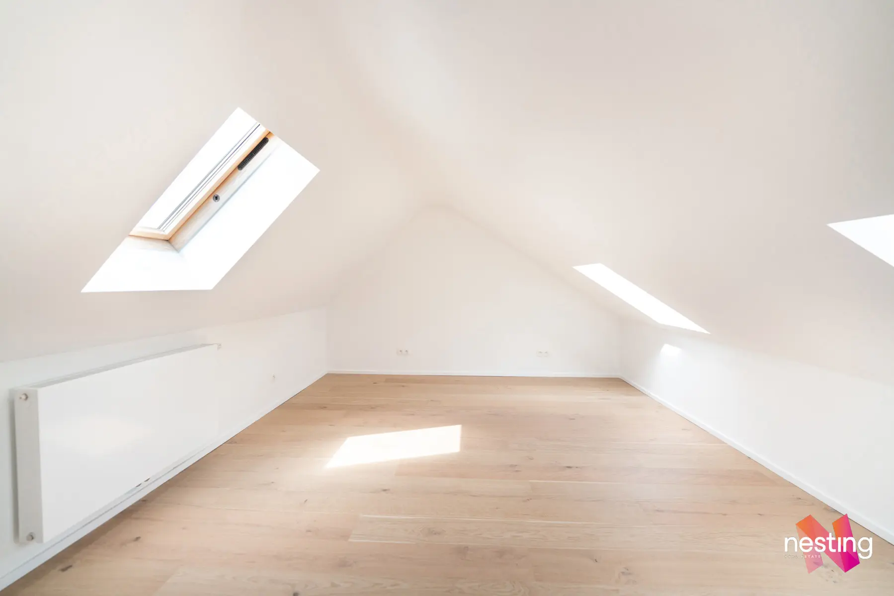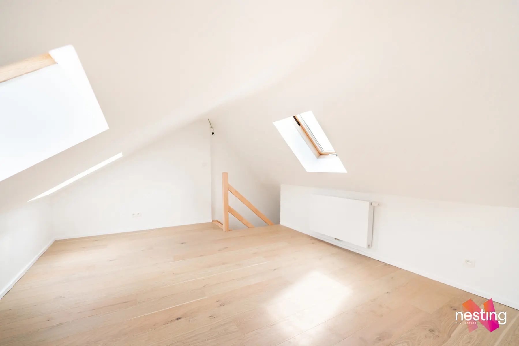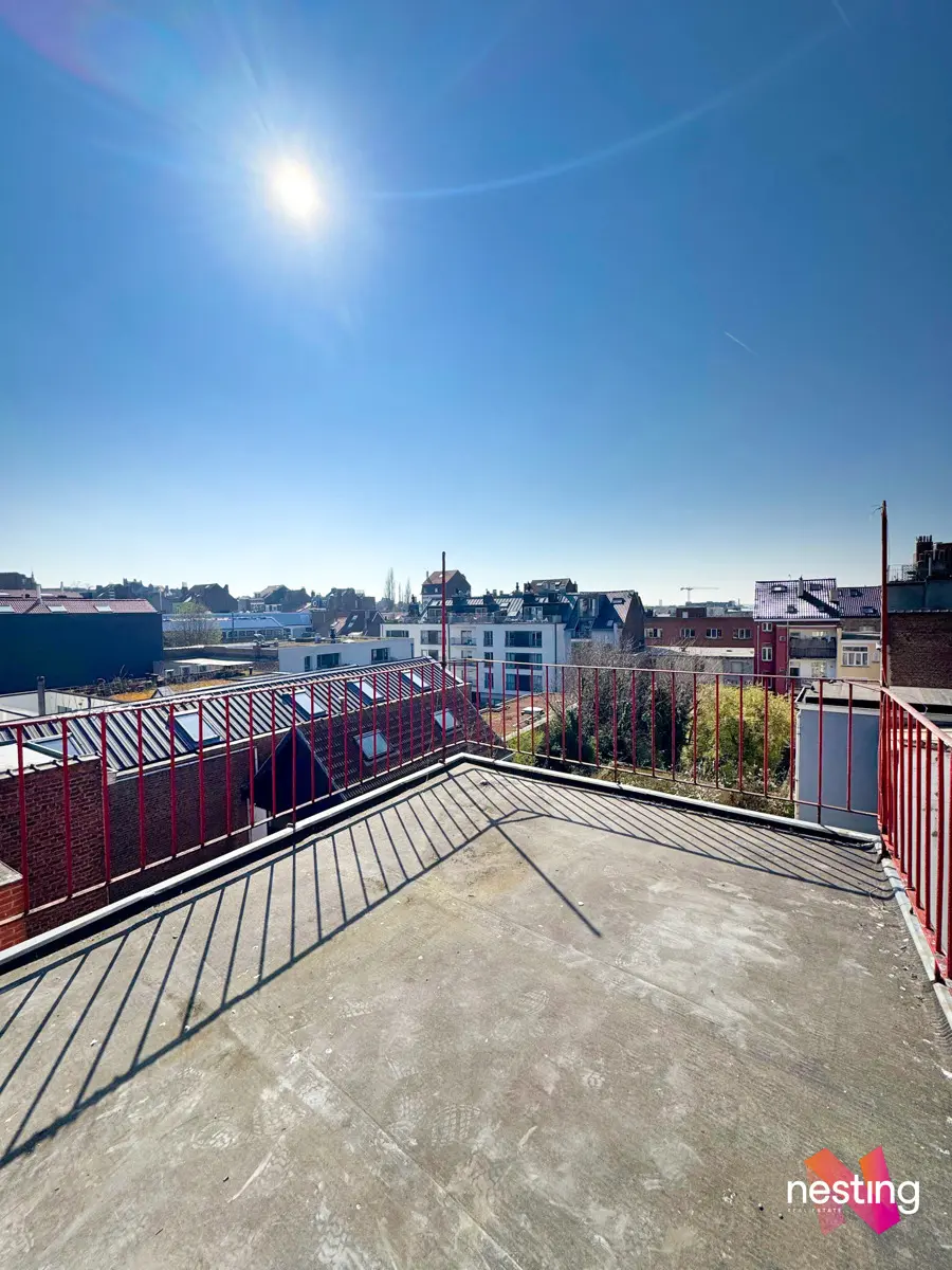 Au 3ème étage : Une salle de douche moderne, une chambre de +- 13m2 et une seconde chambre avec mezzanine de +- 20m2 donnant accès à une superbe terrasse exposée sud-ouest.