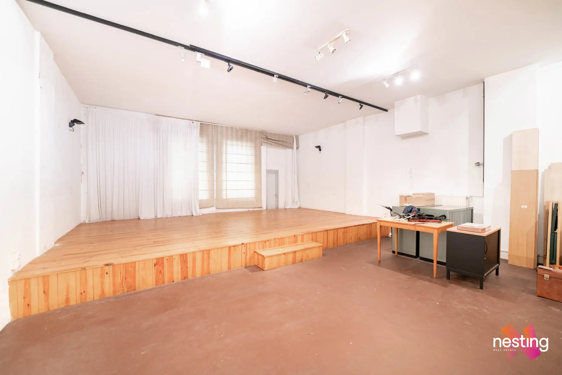 Saint Gilles, Rue Fernand Bernier, à proximité des commerces et des transports en communs, venez découvrir ce lumineux espace culturel (anciennement salle de concert, bureaux et salle de méditation) de +- 300m2.