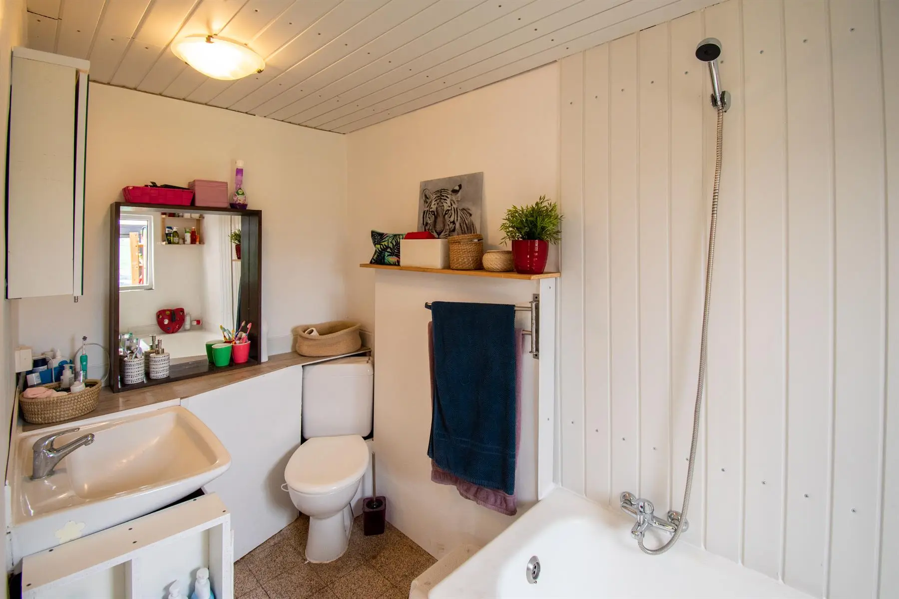 Au rez : deux salles de +- 12m2 chacune, une sdb de +- 9,5m2 et une remise de +/- 10m2.