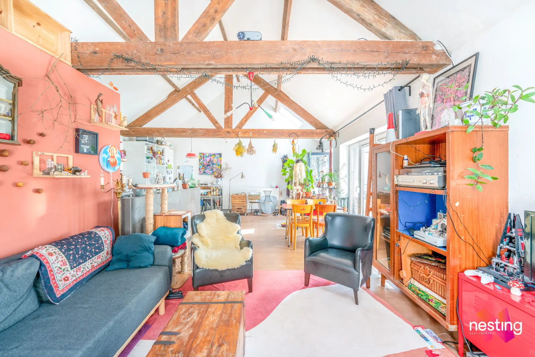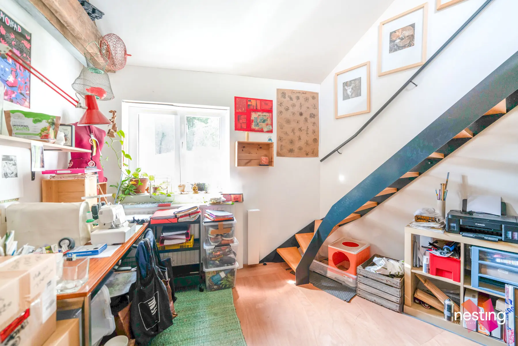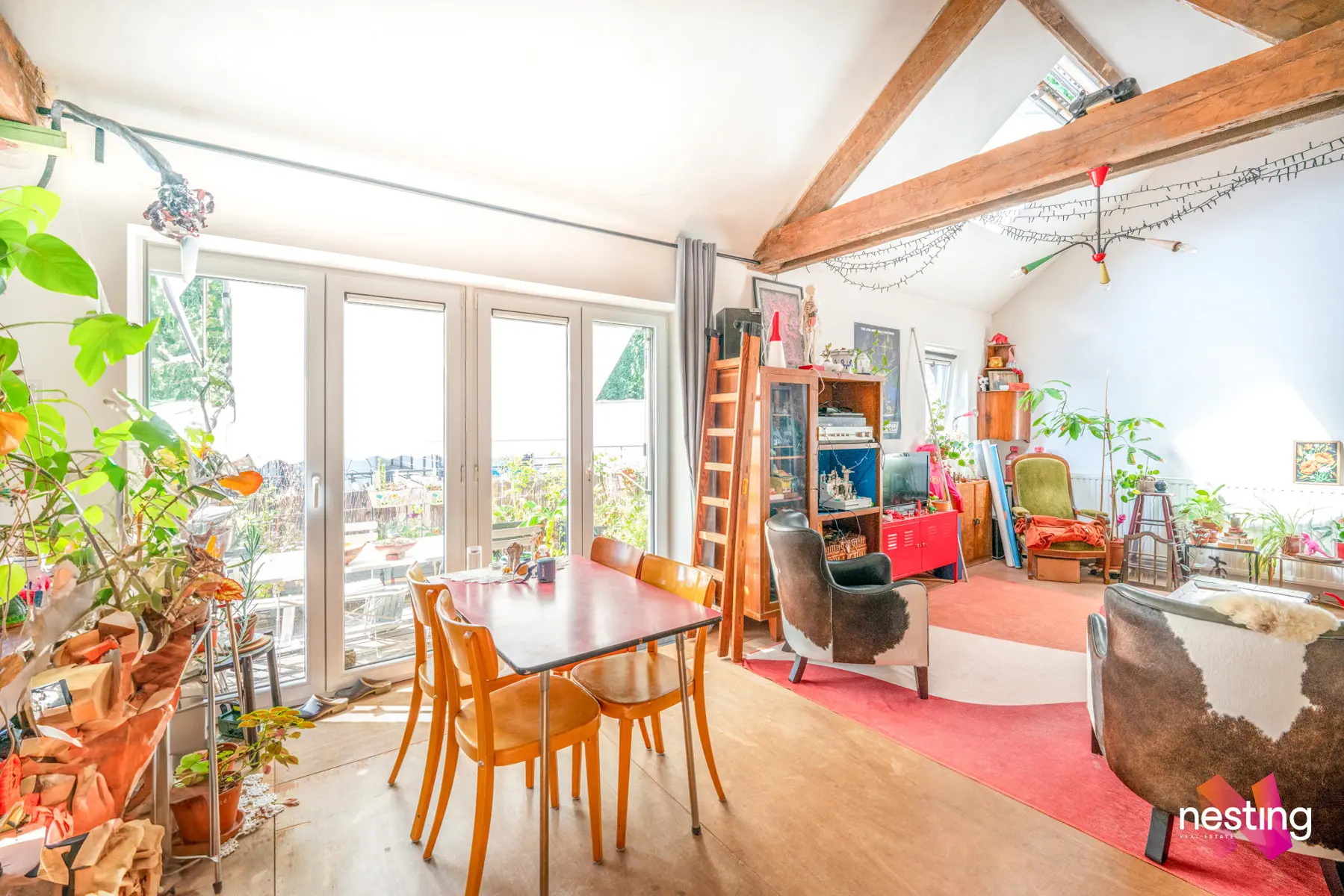 Un grand espace de vie lumineux de +- 50m2 avec une cuisine ouverte super équipée, un salon et une salle à manger s’ouvrant sur une terrasse orientée sud ouest, parfaite pour profiter de la lumière naturelle, d'un hall de nuit avec buanderie, d'un wc séparé, d'une salle de bain et d'une chambre avec une mezzanine pouvant être également un bureau.