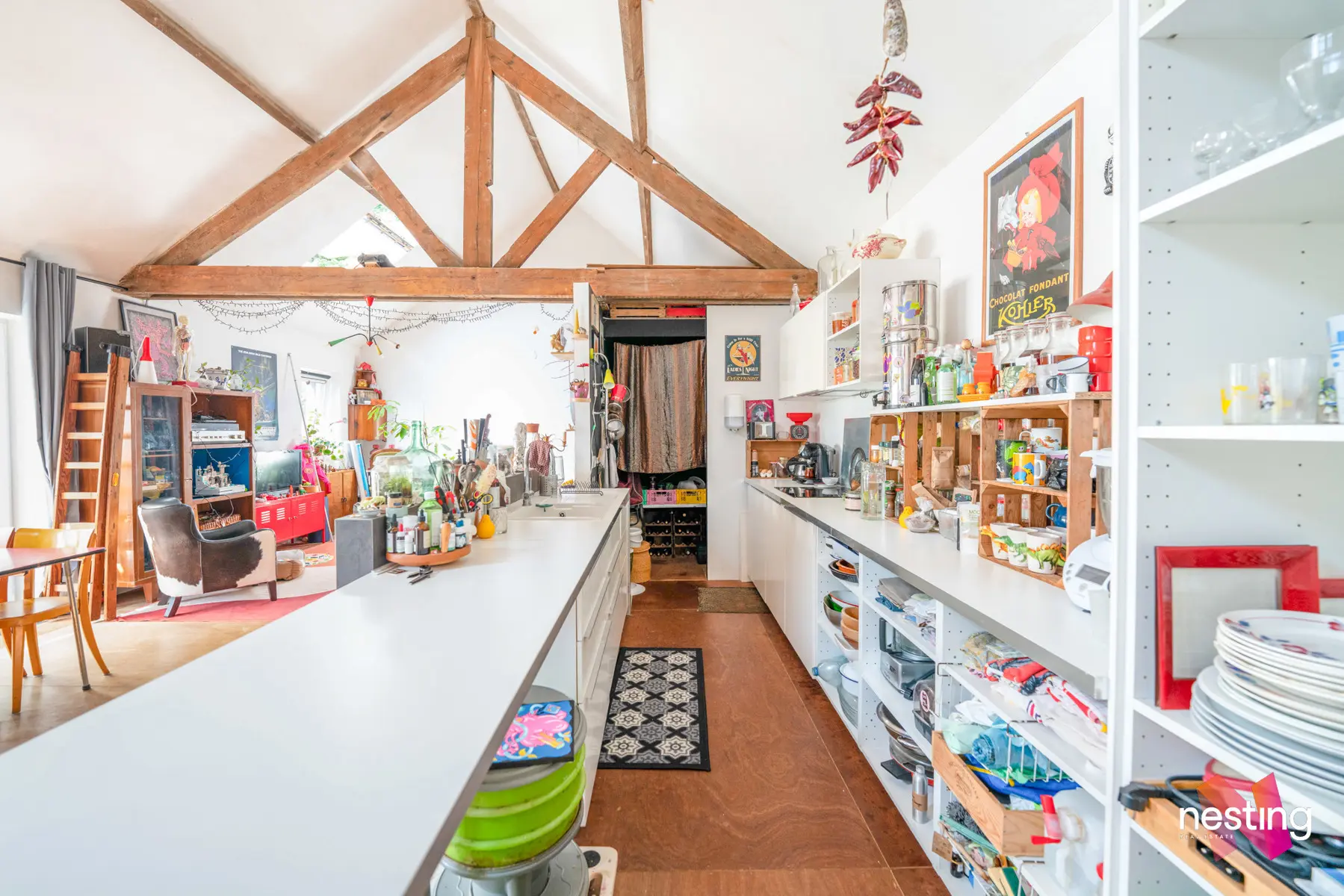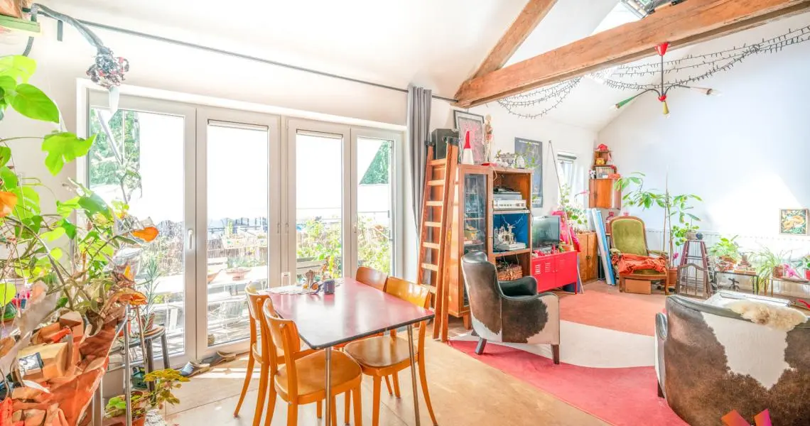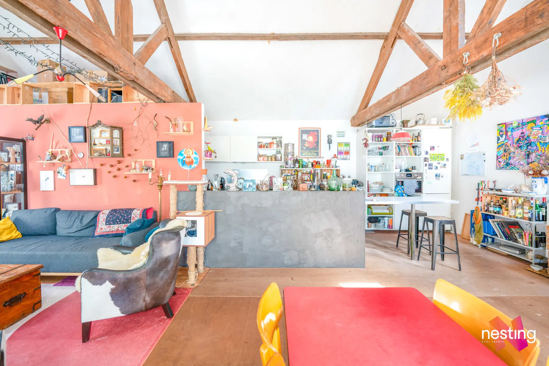 Un grand espace de vie lumineux de +- 50m2 avec une cuisine ouverte super équipée, un salon et une salle à manger s’ouvrant sur une terrasse orientée sud ouest, parfaite pour profiter de la lumière naturelle, d'un hall de nuit avec buanderie, d'un wc séparé, d'une salle de bain et d'une chambre avec une mezzanine pouvant être également un bureau.