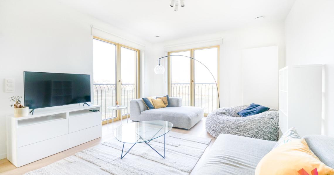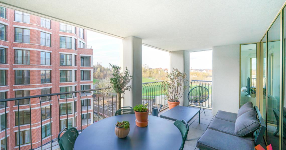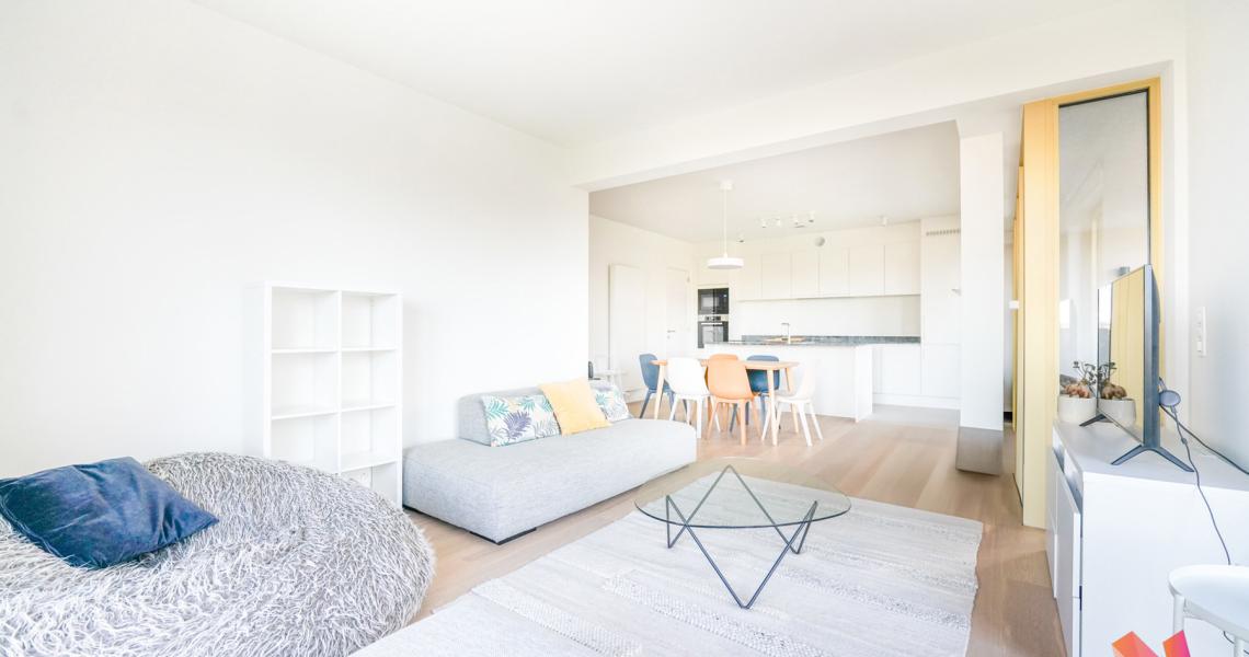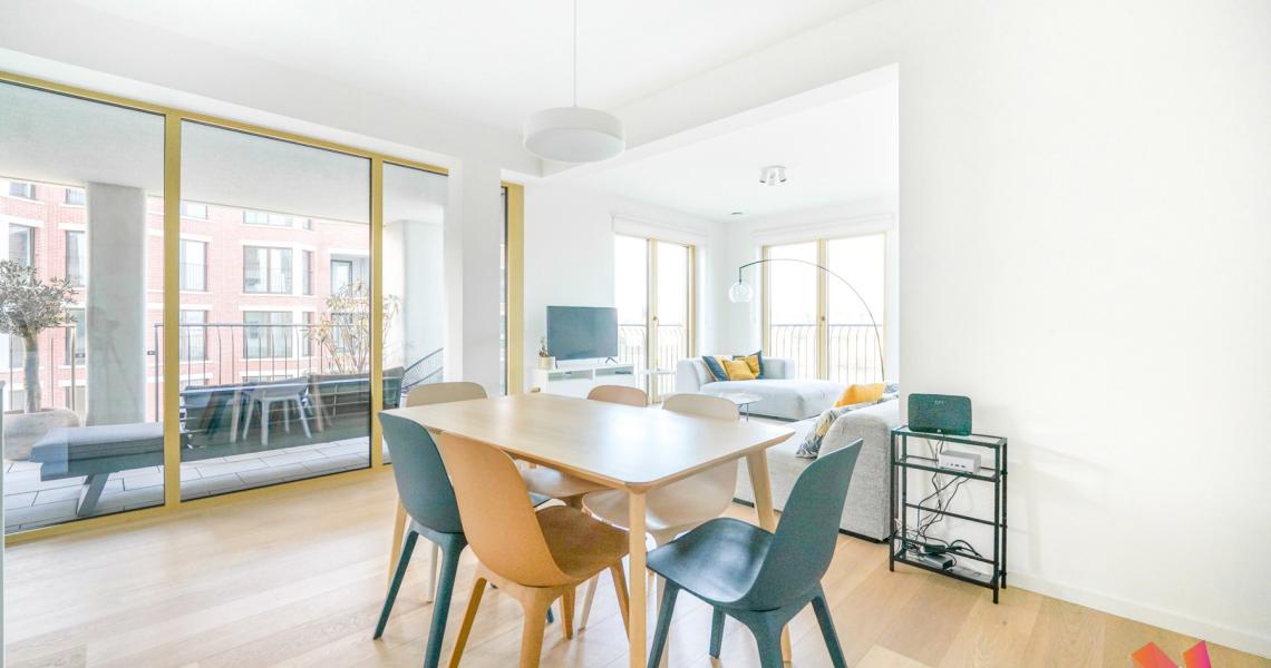 Tour & Taxi, Drève du Parc, à proximité des commerces et des transports en communs, venez découvrir ce bel appartement meublé de +- 115m2 comprenant :