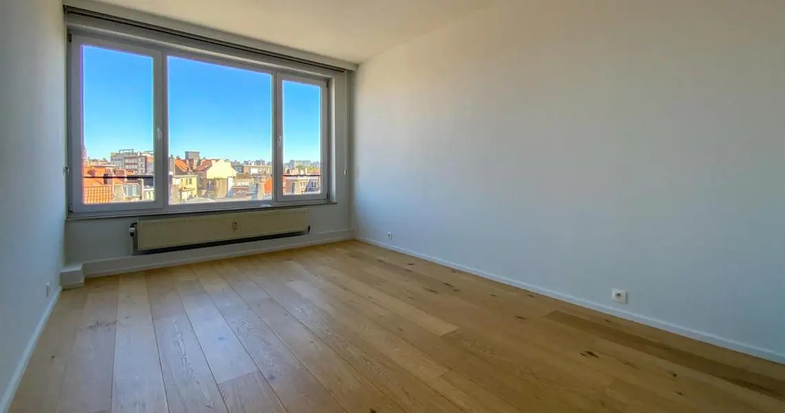 LOUE - Avenue de la Chasse 94, à proximité de Mérode, de la Chasse, des commerces et des transports en communs, Au 6ème étage, superbe appartement 2ch rénové en 2015. Calme, lumineux, parquet partout et offrant : hall d'entrée avec wc séparé, un superbe living très spacieux (+/- 45m2), une cuisine US hyper-équipée, deux chambres (+/- 15 - 11m2), une salle de bains, une buanderie (avec machines à laver/sécher). Cave. PEB (E). Double vitrage. Charges : 150eur/mois (chauffage, eau, communs, conciergerie). Libre immédiatement.