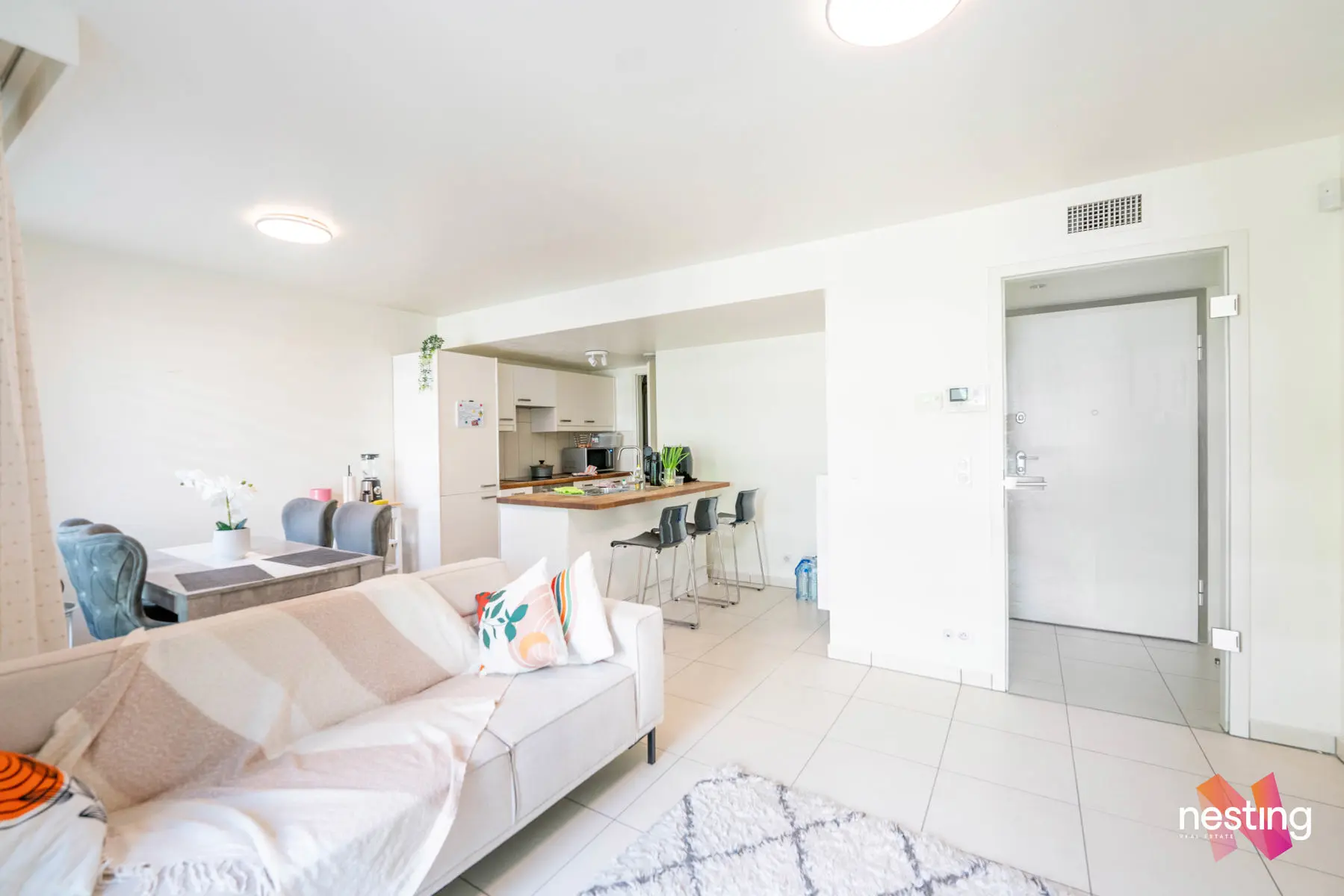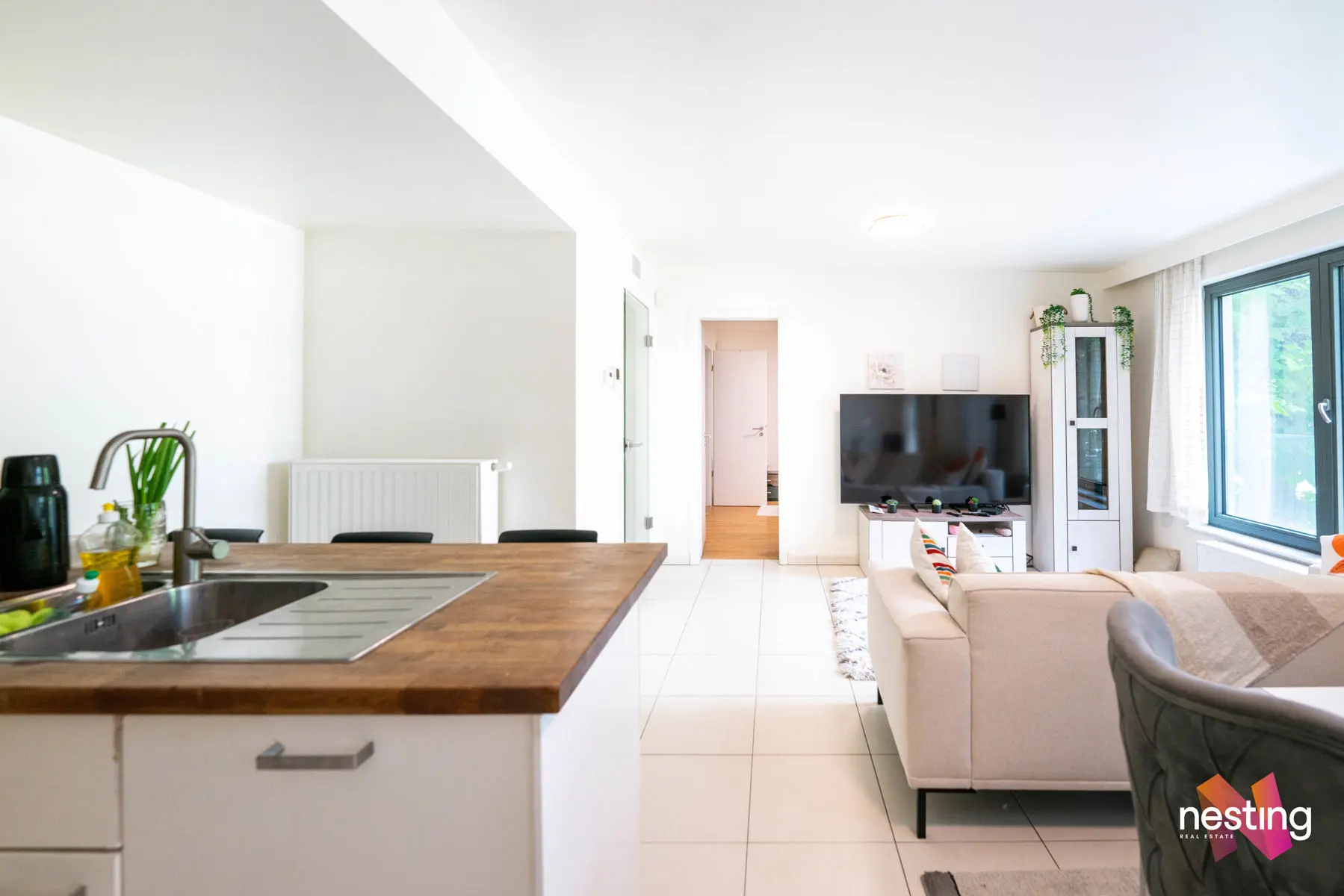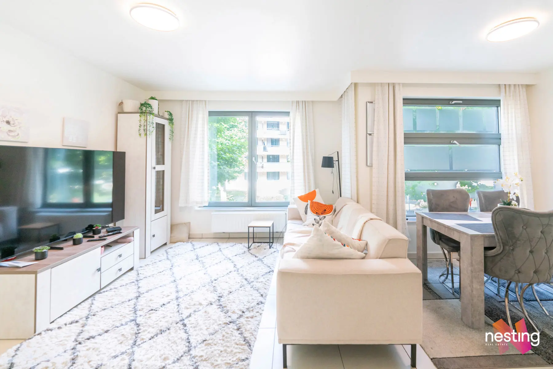 Forest, limite Uccle, à proximité du parc Duden, des commerces et transports en communs, superbe appartement dans un immeuble de 2015, calme, lumineux et offrant : hall d'entrée avec wc séparé, séjour de +/-30m2, cuisine américaine super équipée, chambre de +:- 15m2, salle de douche, buanderie.