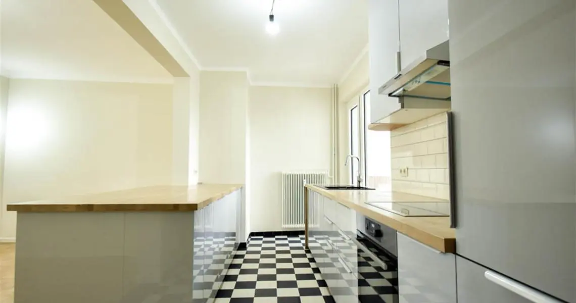 Altitude 100 - sur la prestigieuse Avenue Molière, à proximité de la place Vanderkindere, des commerces et des transports en communs, au 4e étage d'un immeuble calme, Superbe appartement entièrement rénové de +/- 150m², superbe vue dégagée, parquet partout et offrant :