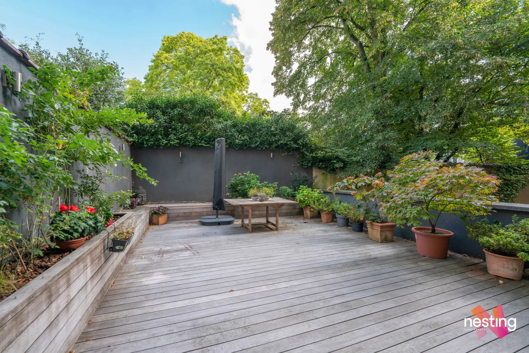 Ce bien lumineux et calme, avec du parquet partout, se compose d’un hall d’entrée avec WC séparé et vestiaire, d’un spacieux séjour de +-46m² avec superbe cheminée, une cuisine séparée donnant sur une terrasse de +-60m², une grande chambre avec placards (17m2) , avec sa salle de douche, un bureau.