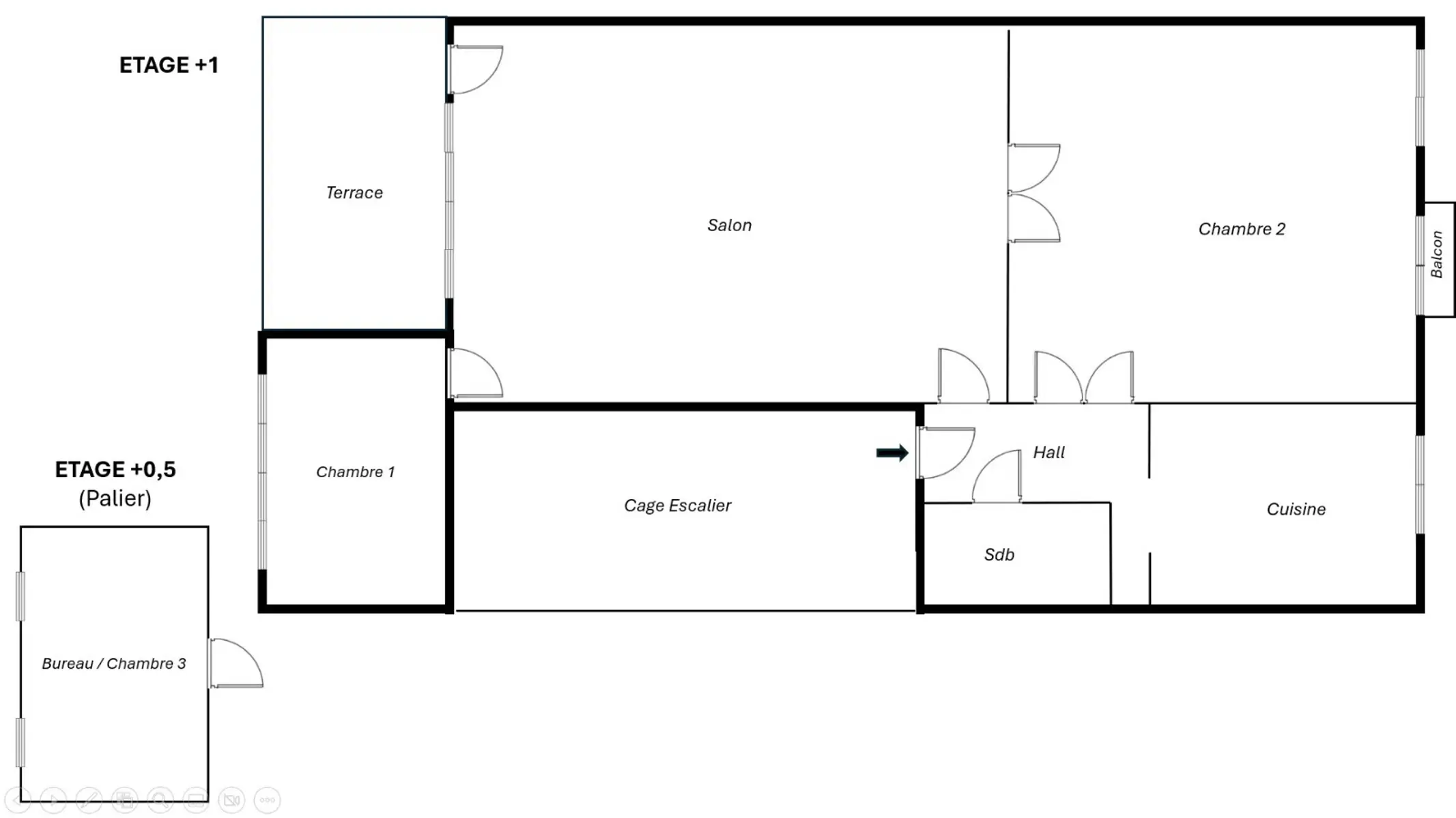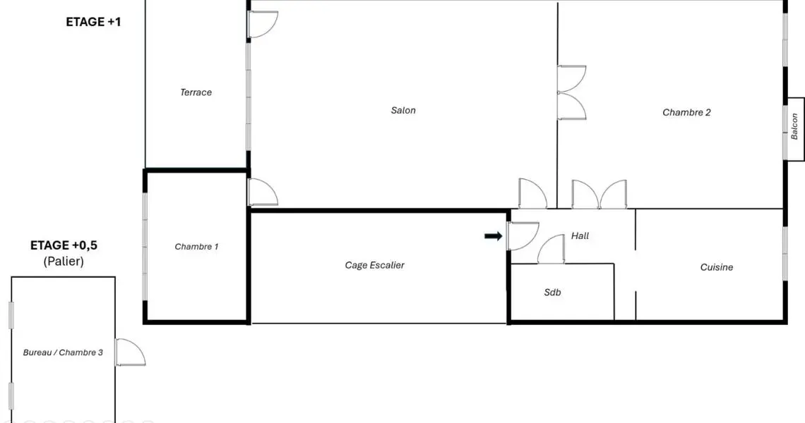 - Surface de terrasse 1 : 14.5 m²