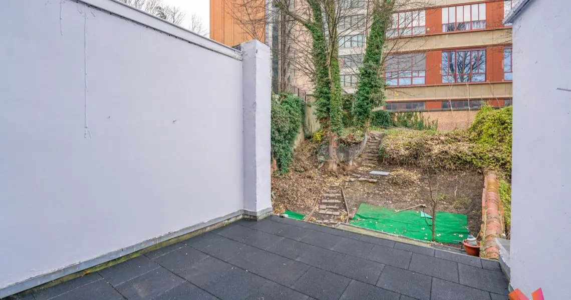 Un vaste séjour de +- 30m2 avec une belle terrasse de +-14,5m2, deux chambres de +-30m2 et +-11,5m2 dont une donnant accès à un balcon, une cuisine séparé équipée, une salle de douche et un bureau.