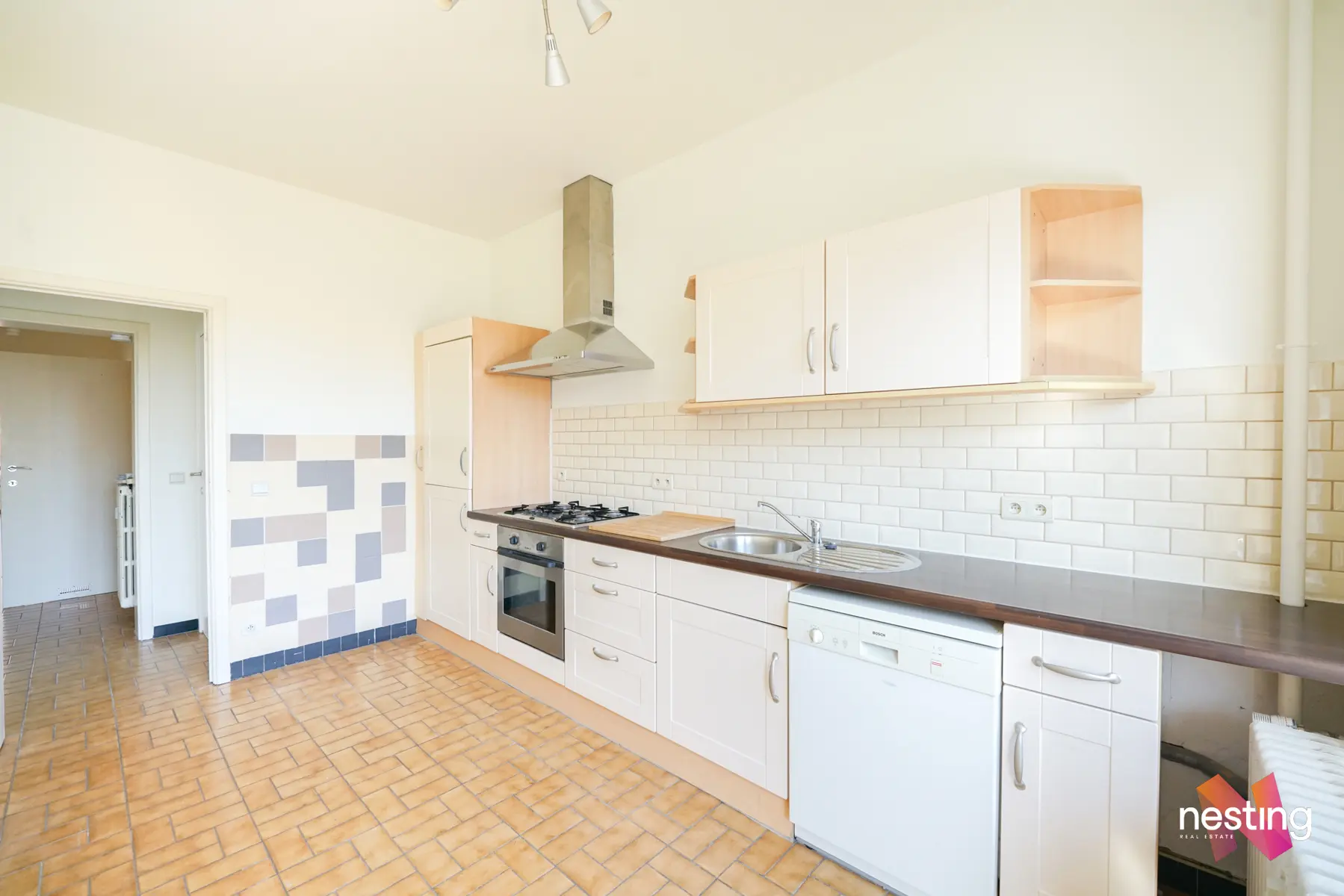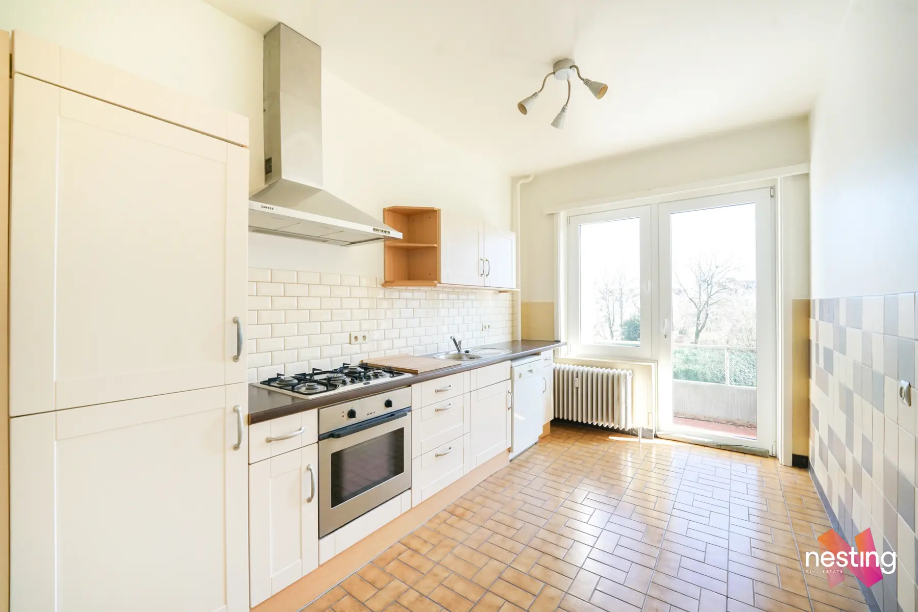 Bel appartement de +/-80m², au 3ème et dernier étage d'une petite copropriété, très lumineux et offrant : Hall d'entrée, grand séjour avec parquet de +/-35m², cuisine super-équipée, chambre de +/-18m² avec accès terrasse, salle de bains.