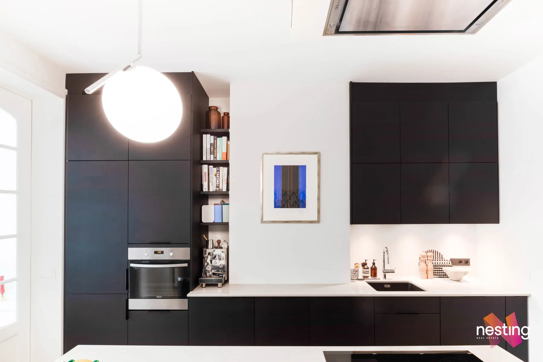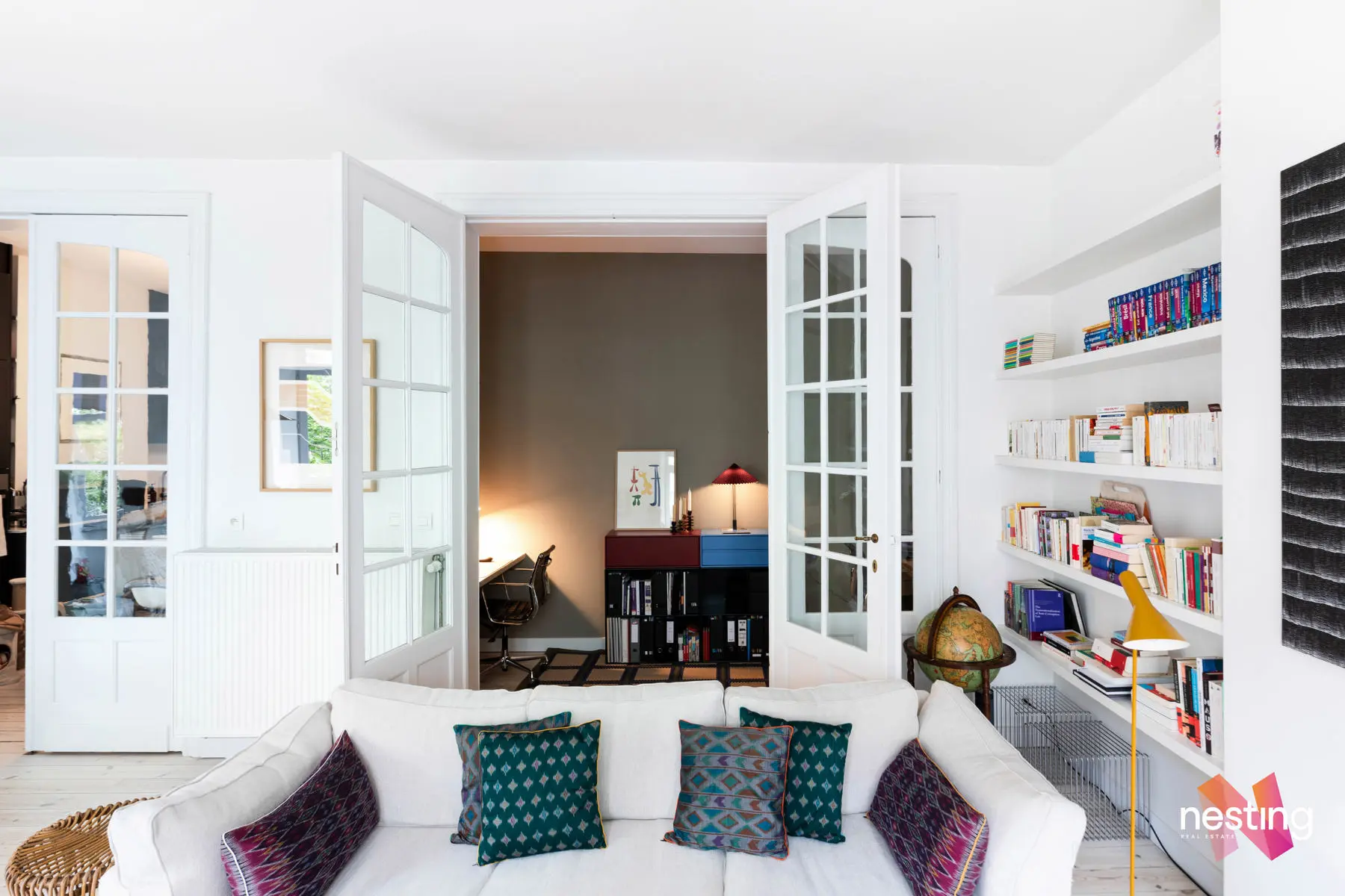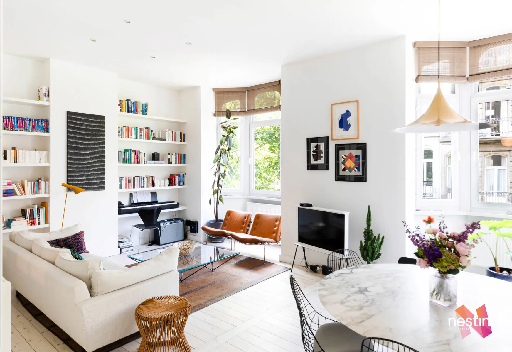 Nombreux rangements sur mesure, cachet et éléments d’époque conservés (portes, terrazzo), hauts plafonds