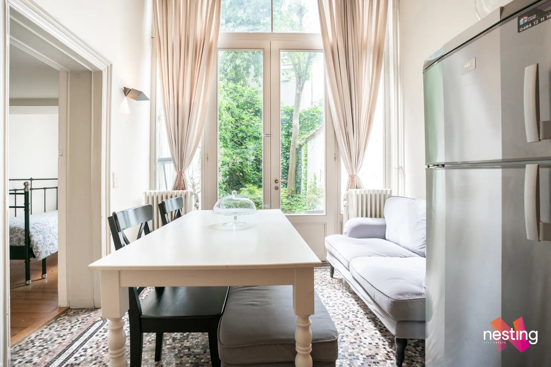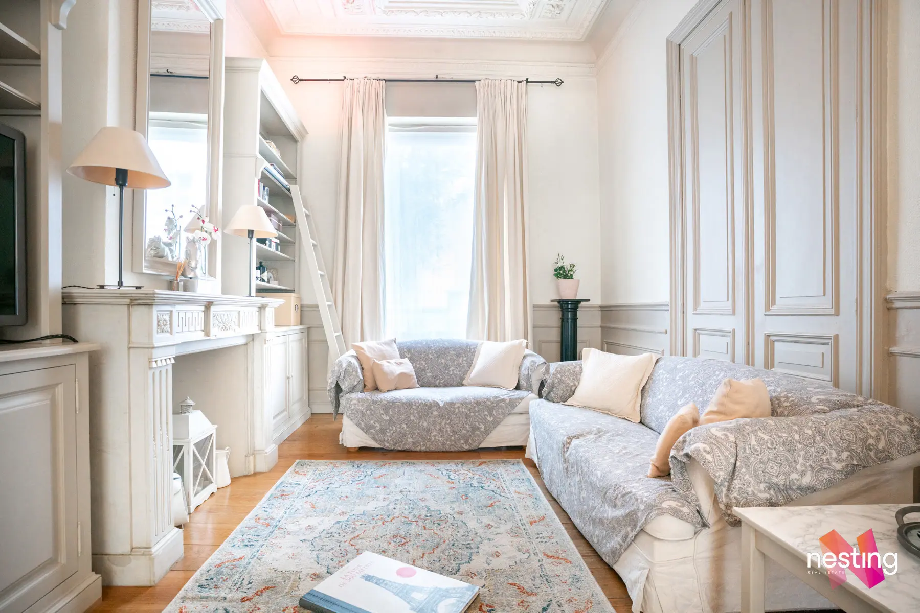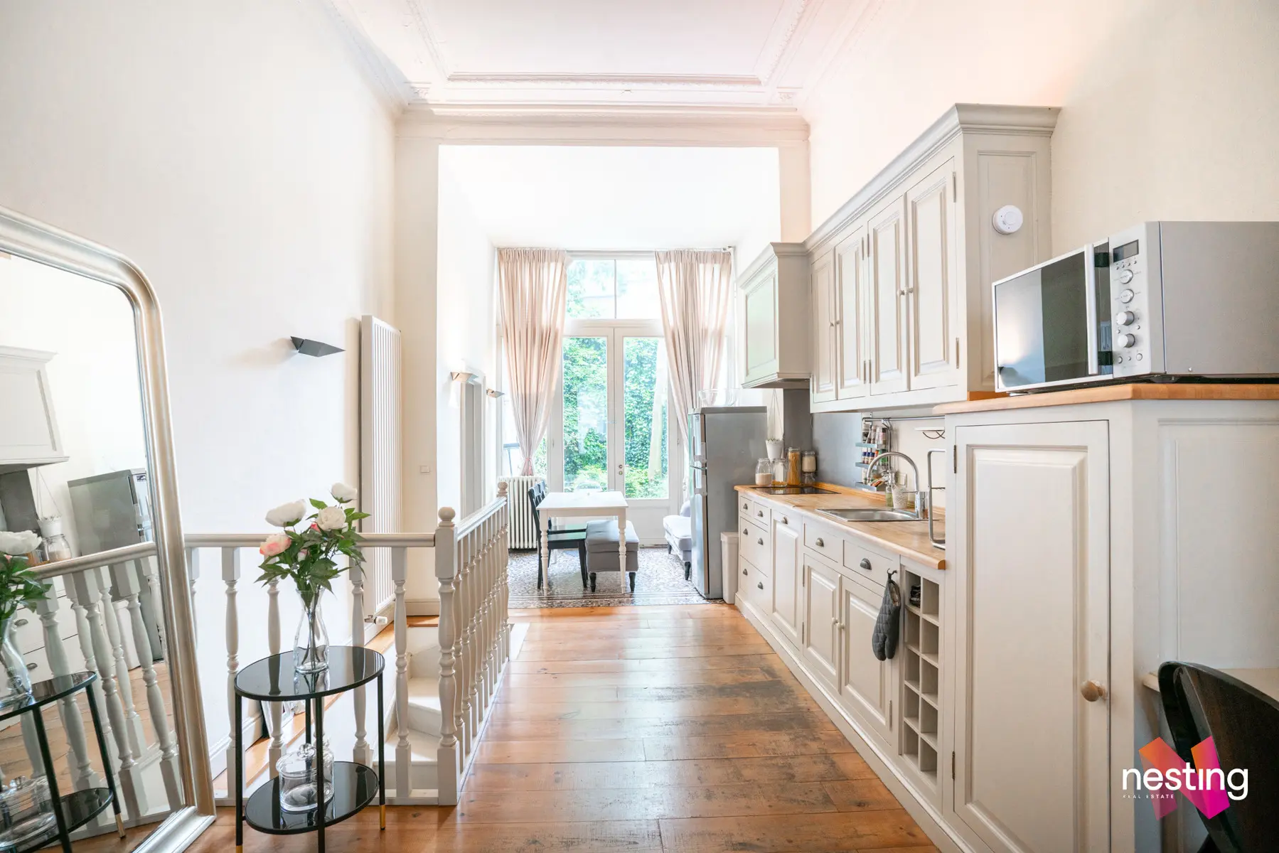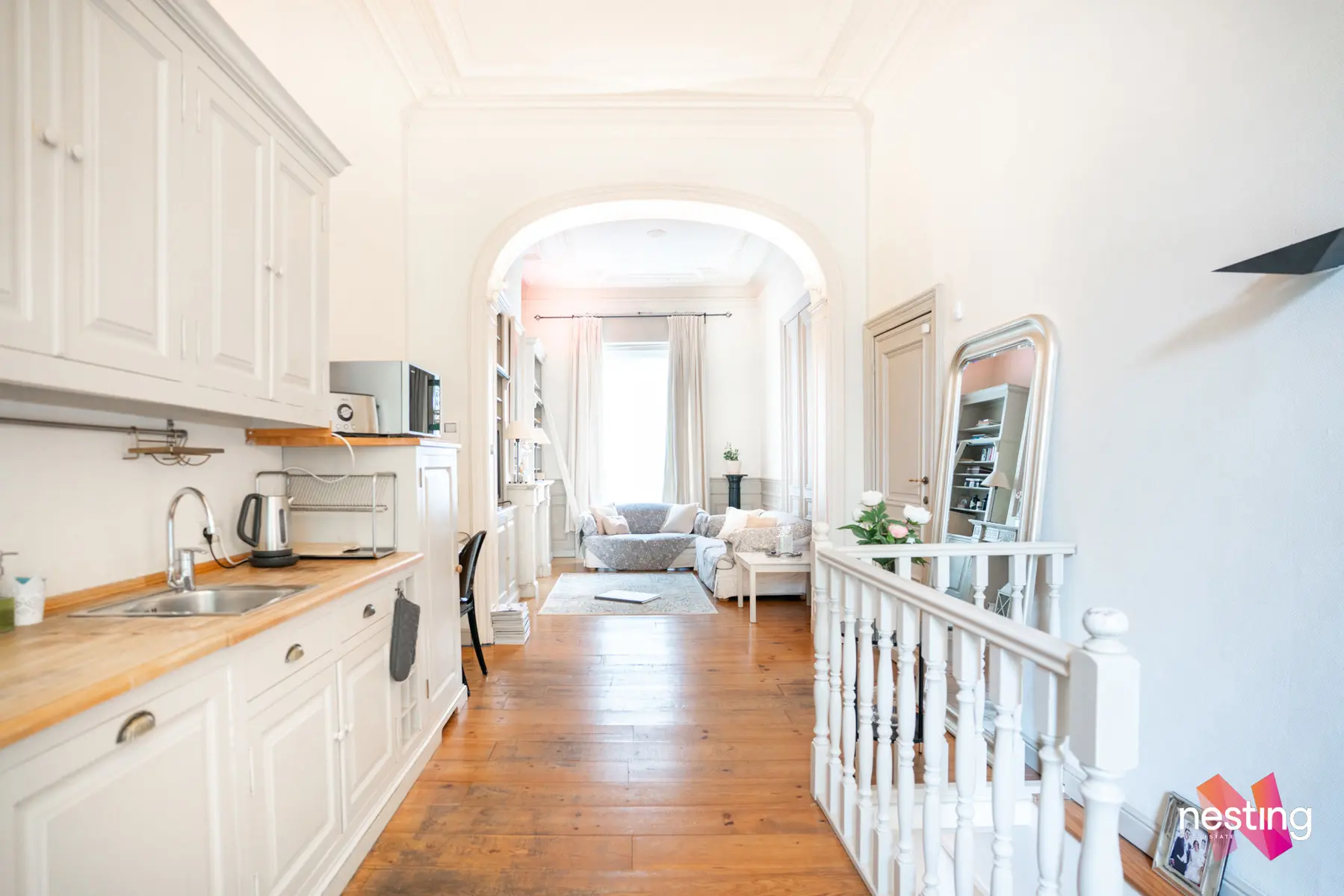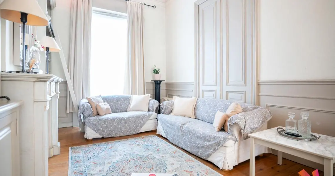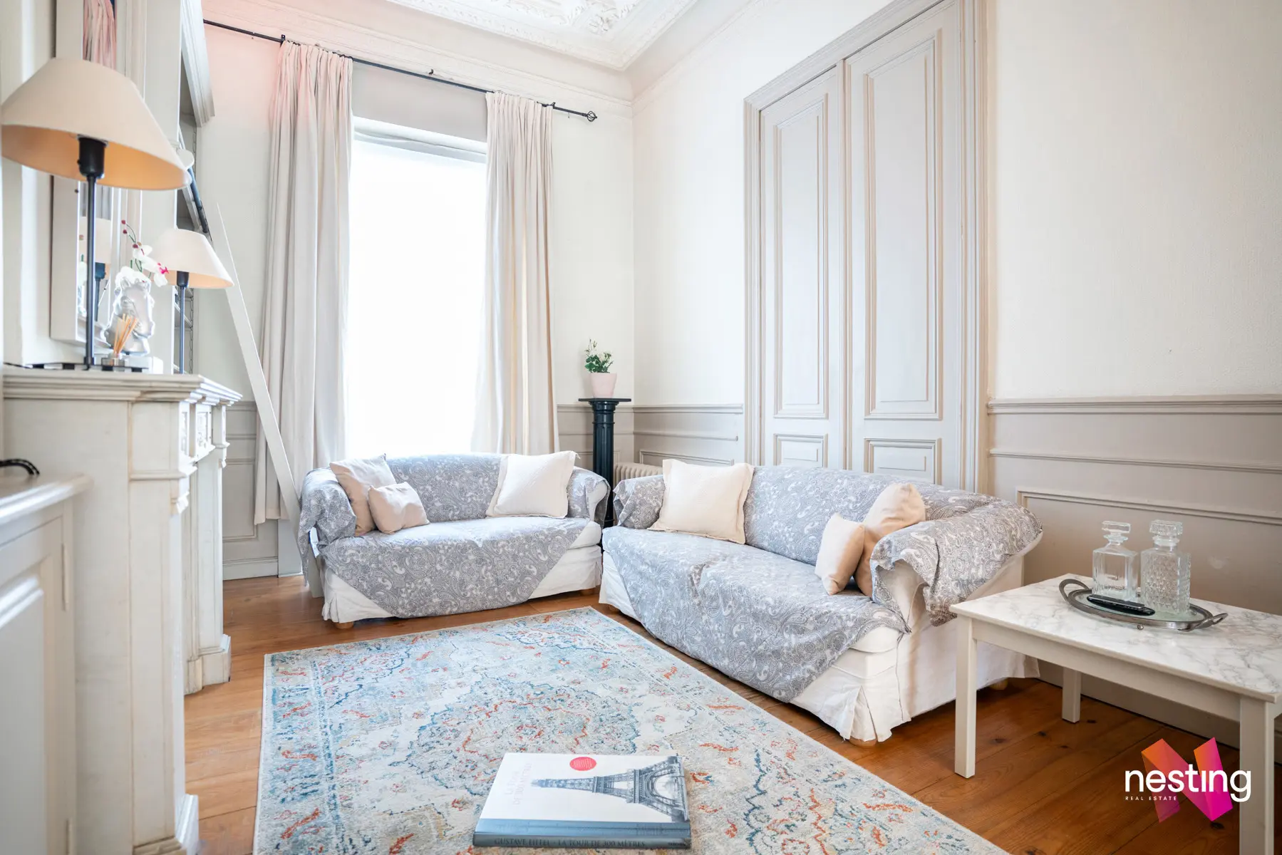 Saint-Gilles, rue de la Source, ce superbe appartement meublé d’environ 100 m² vous séduira par le charme de l’ancien, avec ses magnifiques moulures et sa belle hauteur sous plafond.