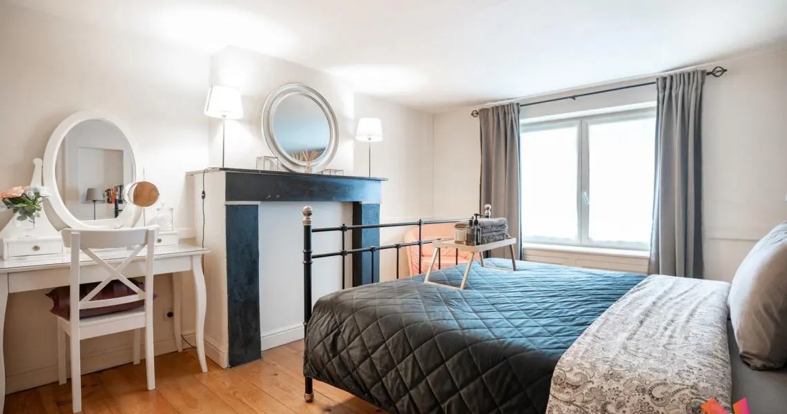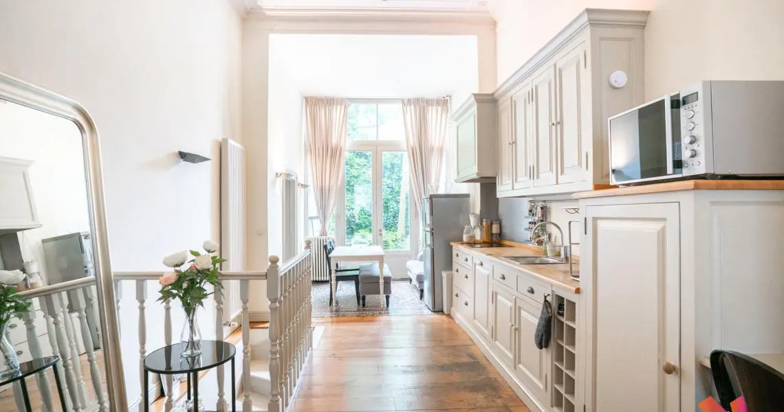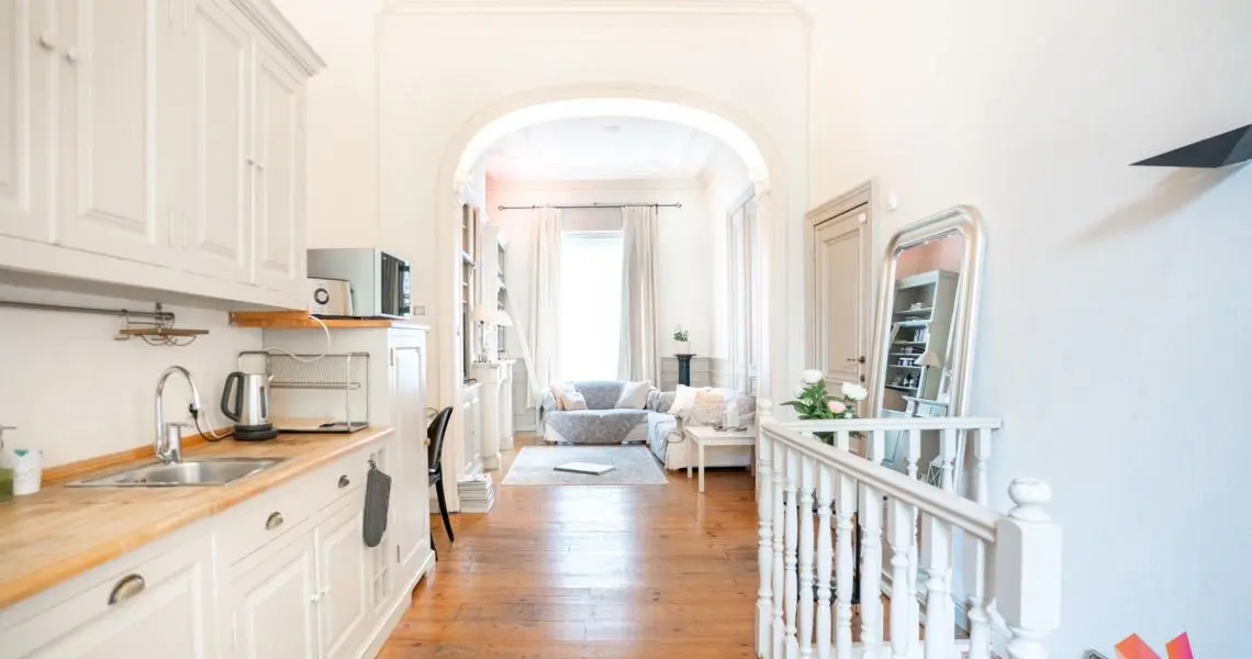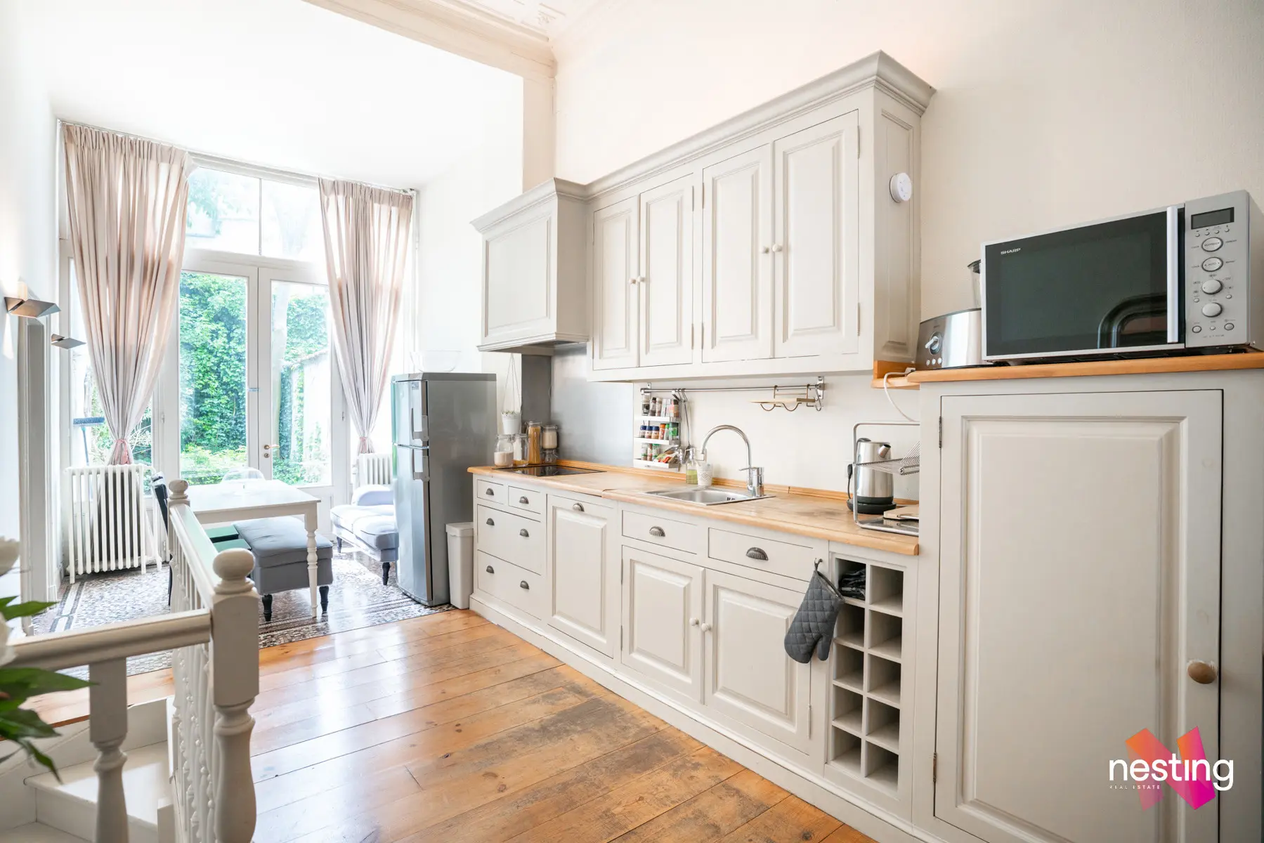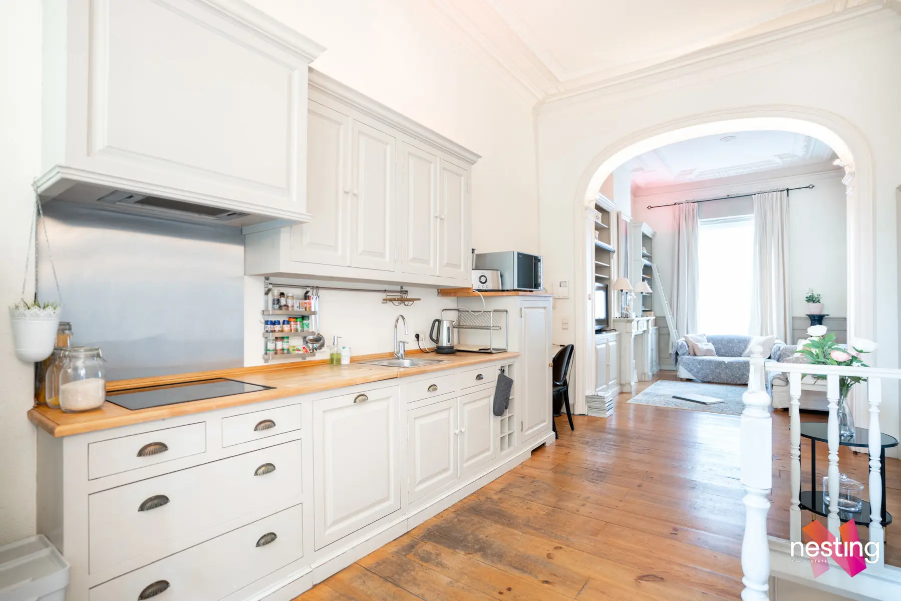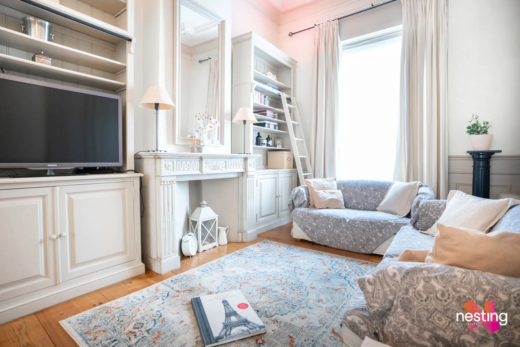 Saint-Gilles, rue de la Source, ce superbe appartement meublé d’environ 100 m² vous séduira par le charme de l’ancien, avec ses magnifiques moulures et sa belle hauteur sous plafond.