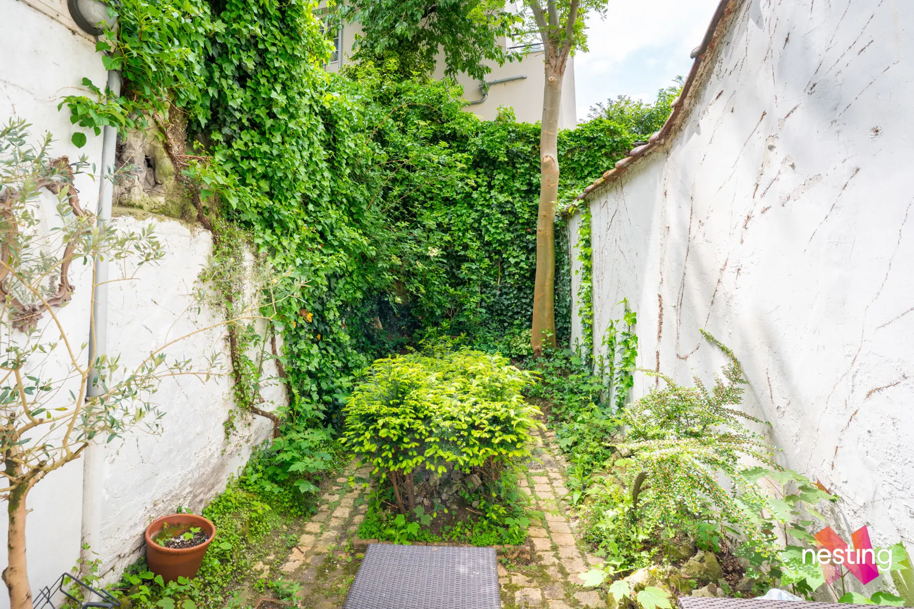 Il comprend : Une beau séjour de +- 16,5m2, une cuisine ouverte super-équipée, une salle à manger donnant sur un jardin exposé sud-ouest, 1 chambre de +- 15m2, un bureau de +-8m2, une salle de bains, une buanderie et un wc.