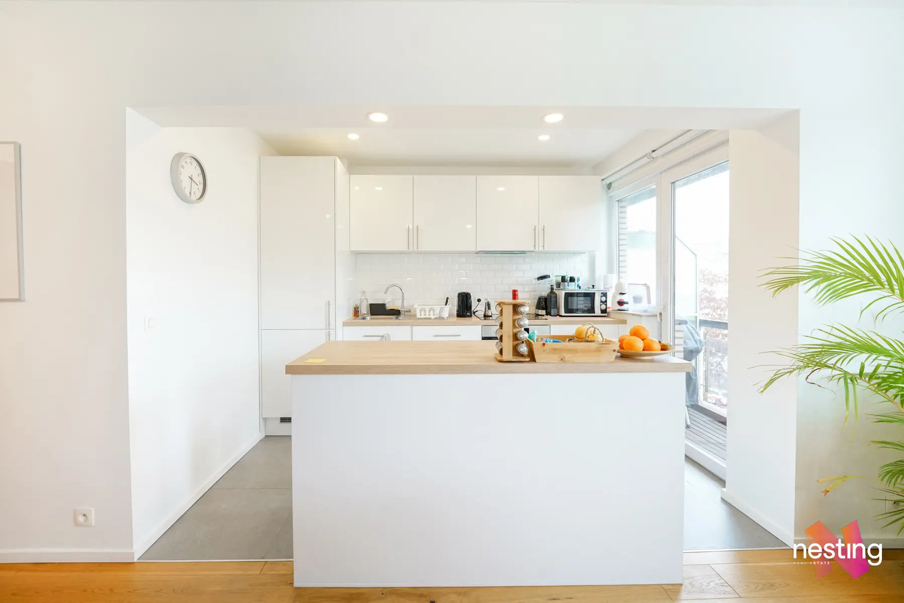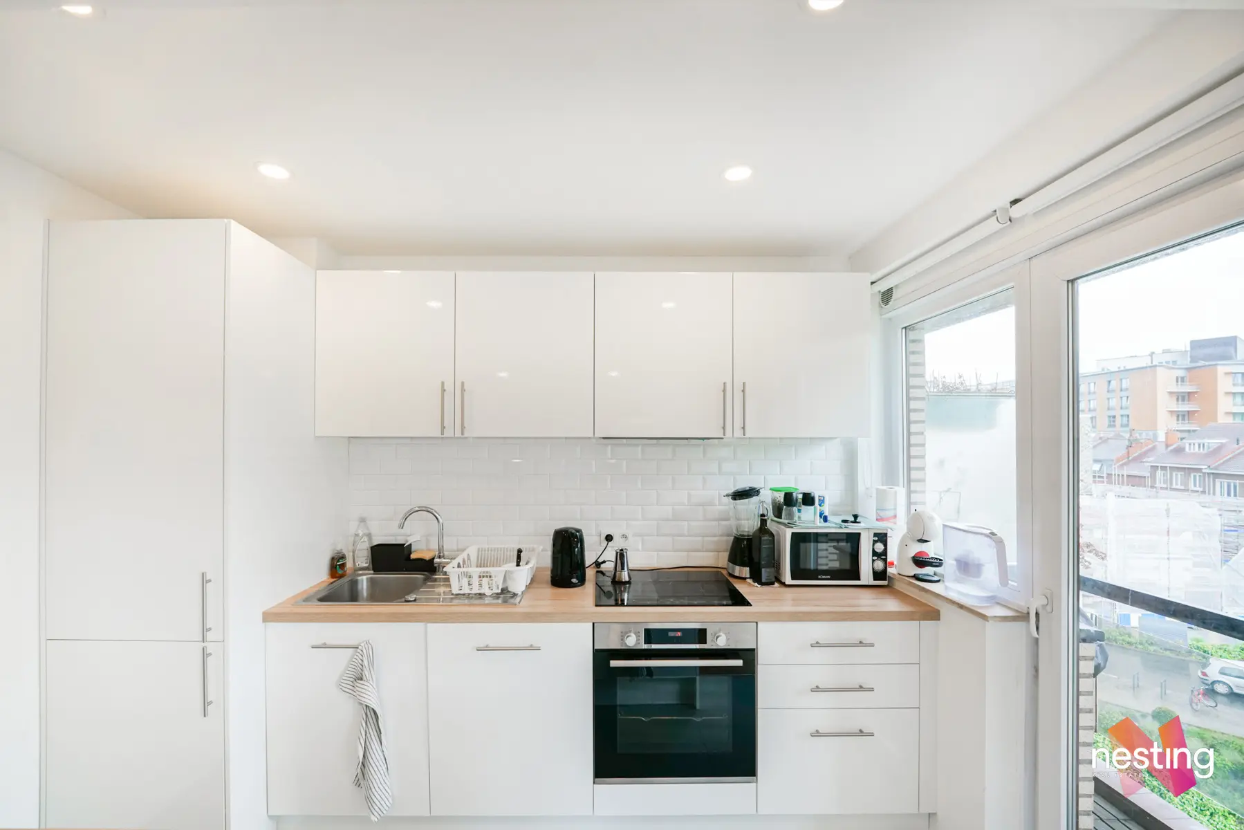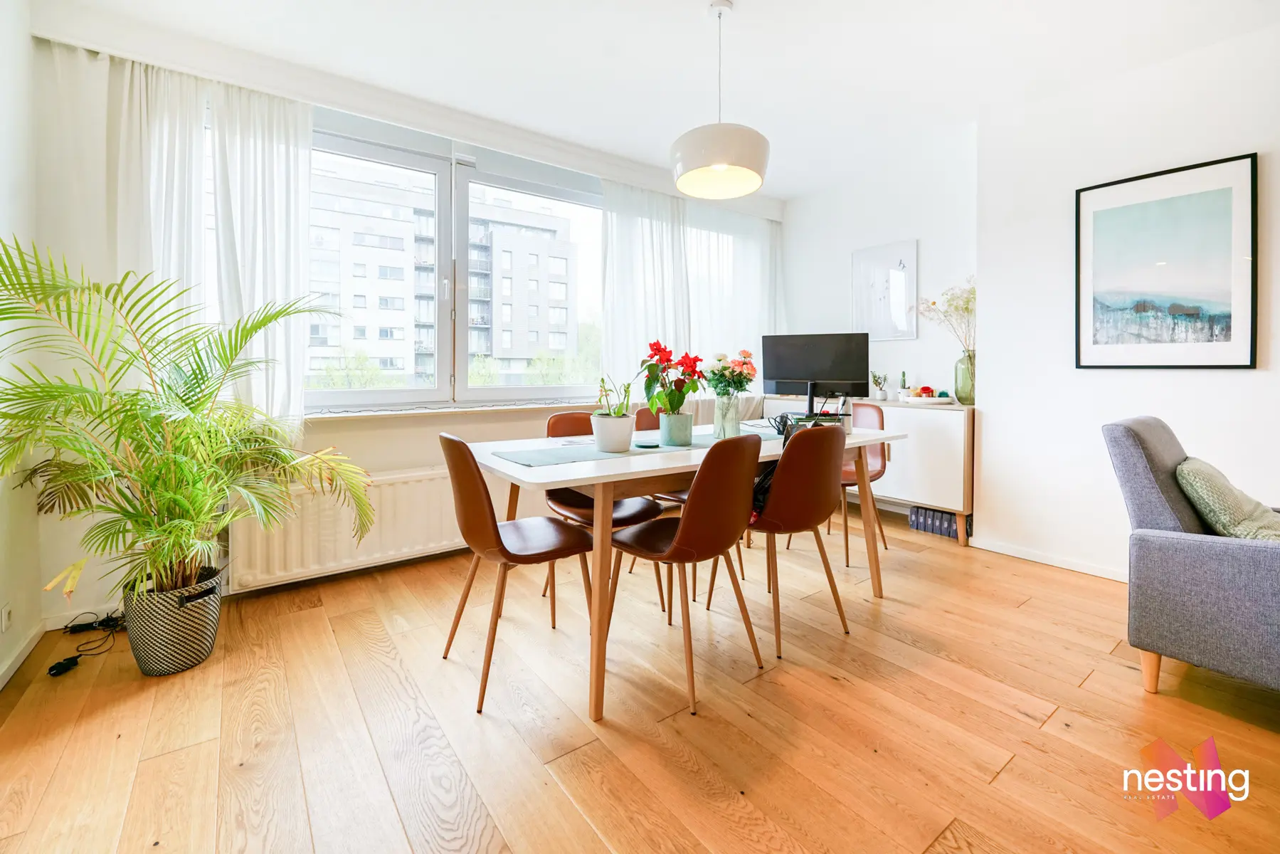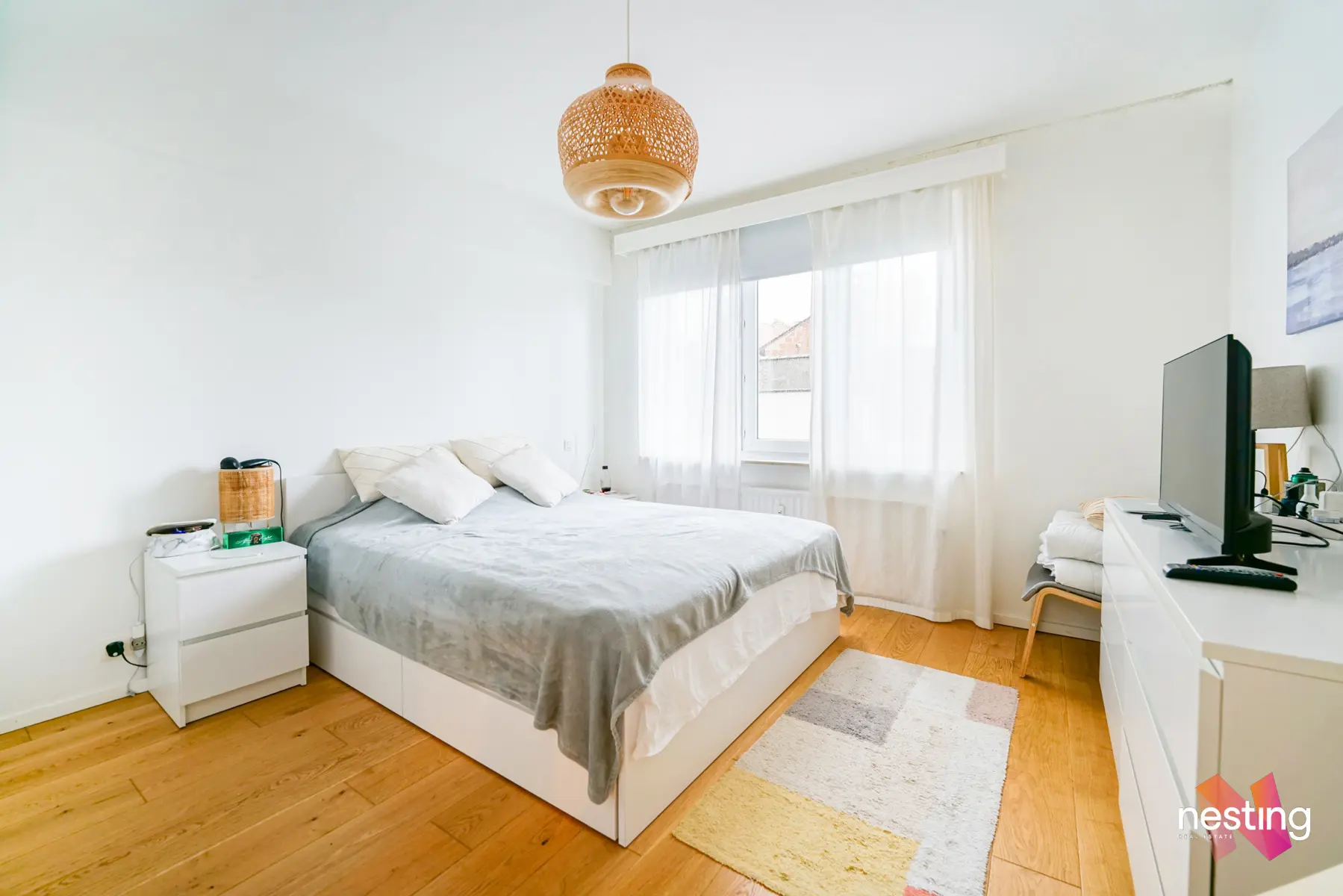 Appartement spacieux de +/- 90m2 au 5e étage très lumineux, complètement meublé (électroménager & TV compris), dans un environnement calme offrant :