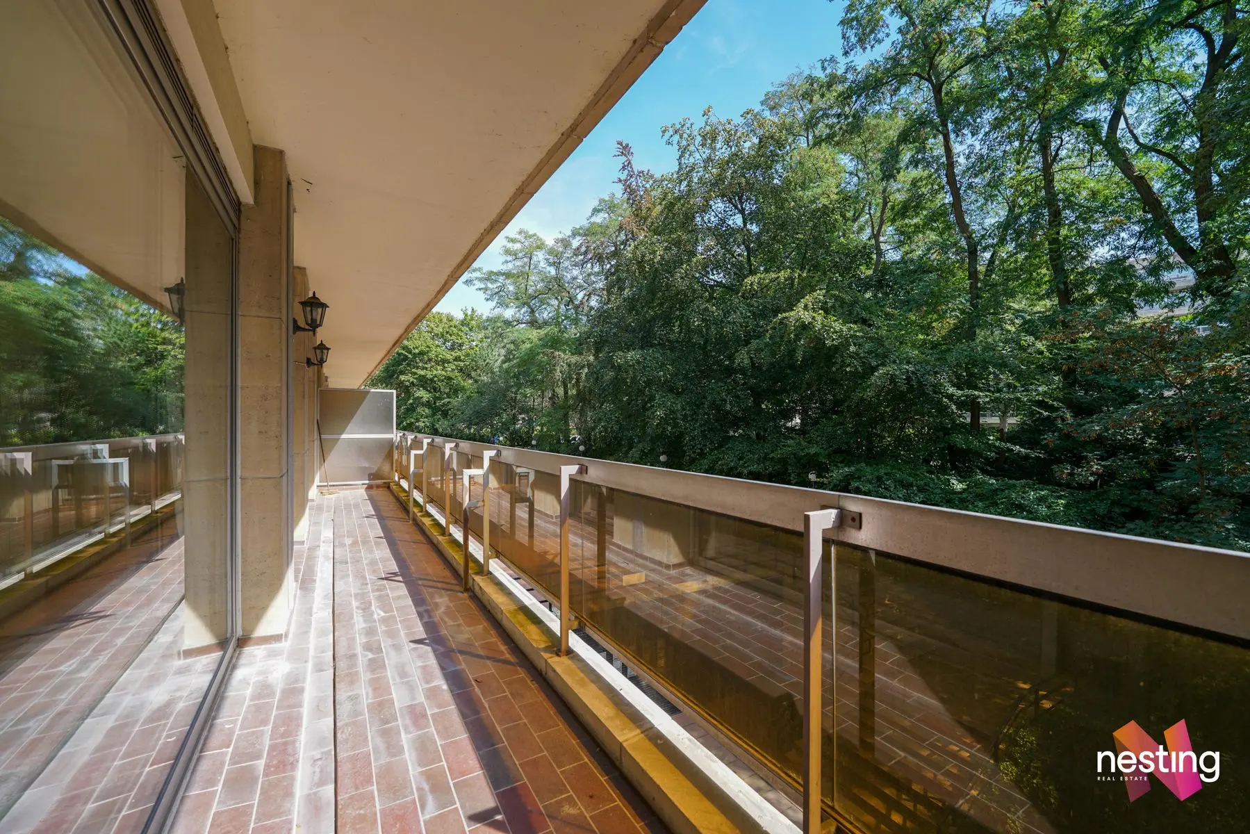 Uccle, sis Avenue de la Ferme Rose 9B, idéalement situé à proximité du Parc Brugmann de Vanderkindere, du square des Héros, de Winston Churchill, des transports et commerces, au 1er étage d'un immeuble calme, superbe appartement de +-75m2, en bon état, très lumineux et offrant :