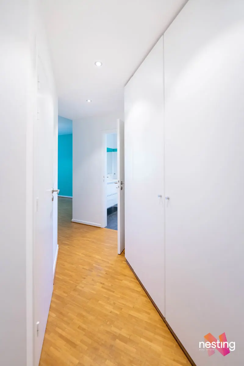 L'appartement se compose comme suit : un grand hall d'entrée avec vestiaire et wc séparé, un magnifique séjour de +- 48m2 donnant sur deux terrasses (+-10m2 et +- 8m2), une cuisine spacieuse (électroménagers de qualités : Miele, Novy, Liebherr), Masterbedroom avec placards, salle de douche, wc séparé, hall de nuit donnant sur 2 chambres (+-13m2 et +-13m2), salle de bains.
