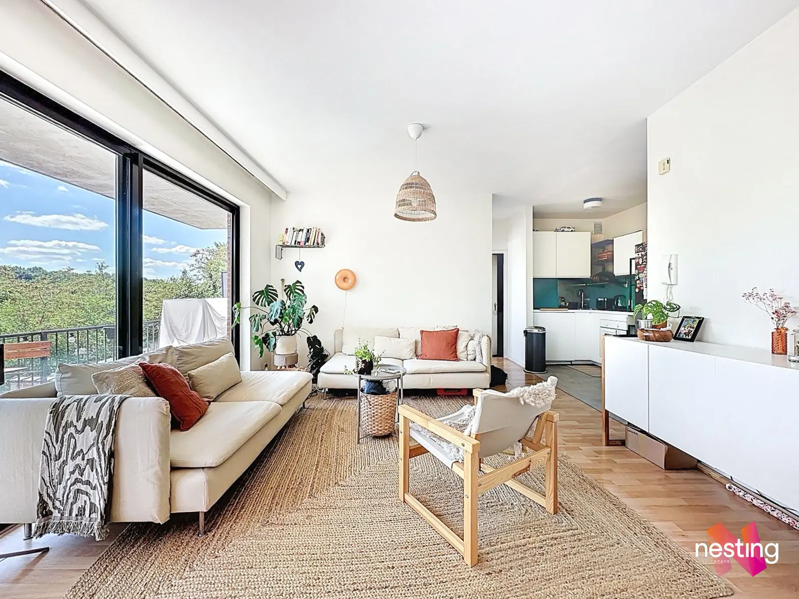 Un vaste séjour de +- 25m², une cuisine équipée, une chambre de +-9 m², une salle de bain et une belle terrasse exposée plein sud offrant une magnifique vue.