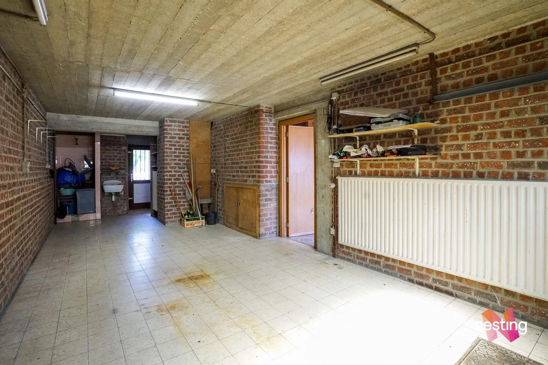 au Rez : hall d'entrée avec vestiaire et wc séparé, espace pour profession libérale/bureau, vaste garage intérieur ainsi qu'un emplacement extérieur, terrasse et jardin de +/-190m2 orienté sud-ouest.
