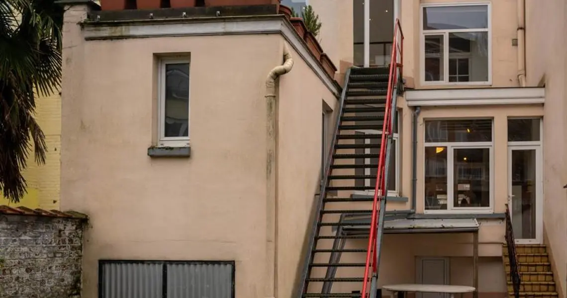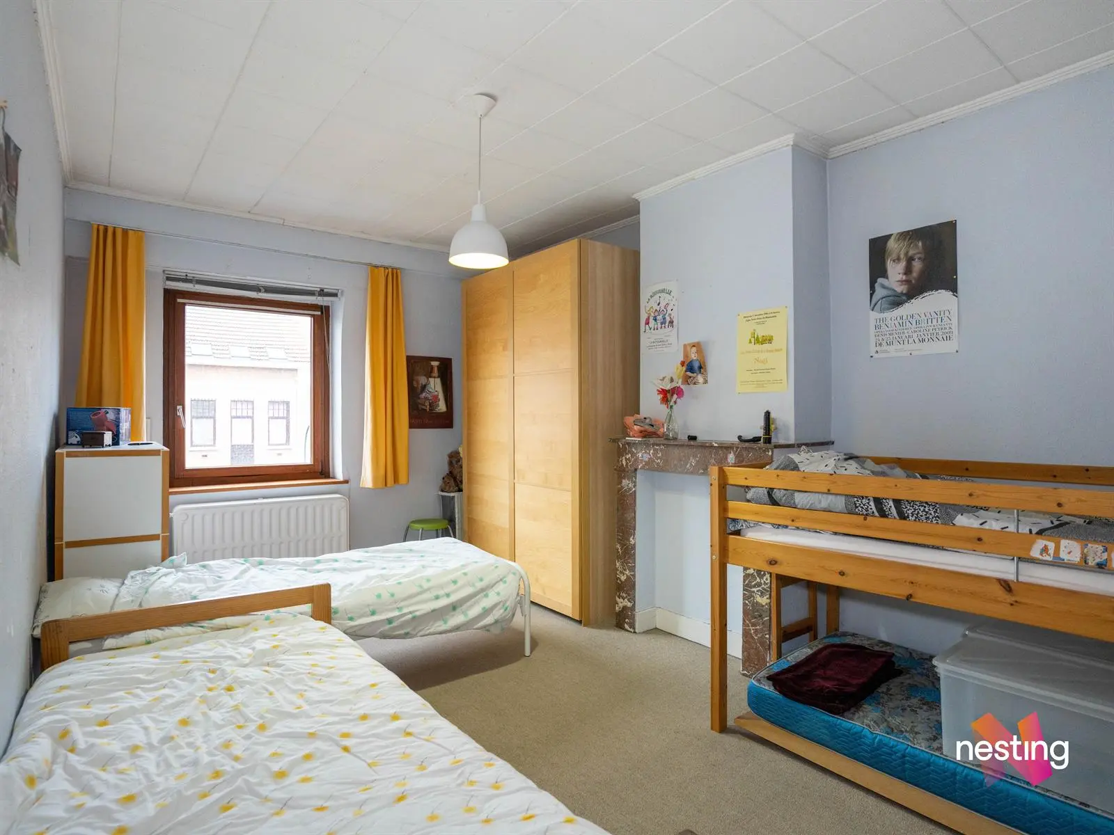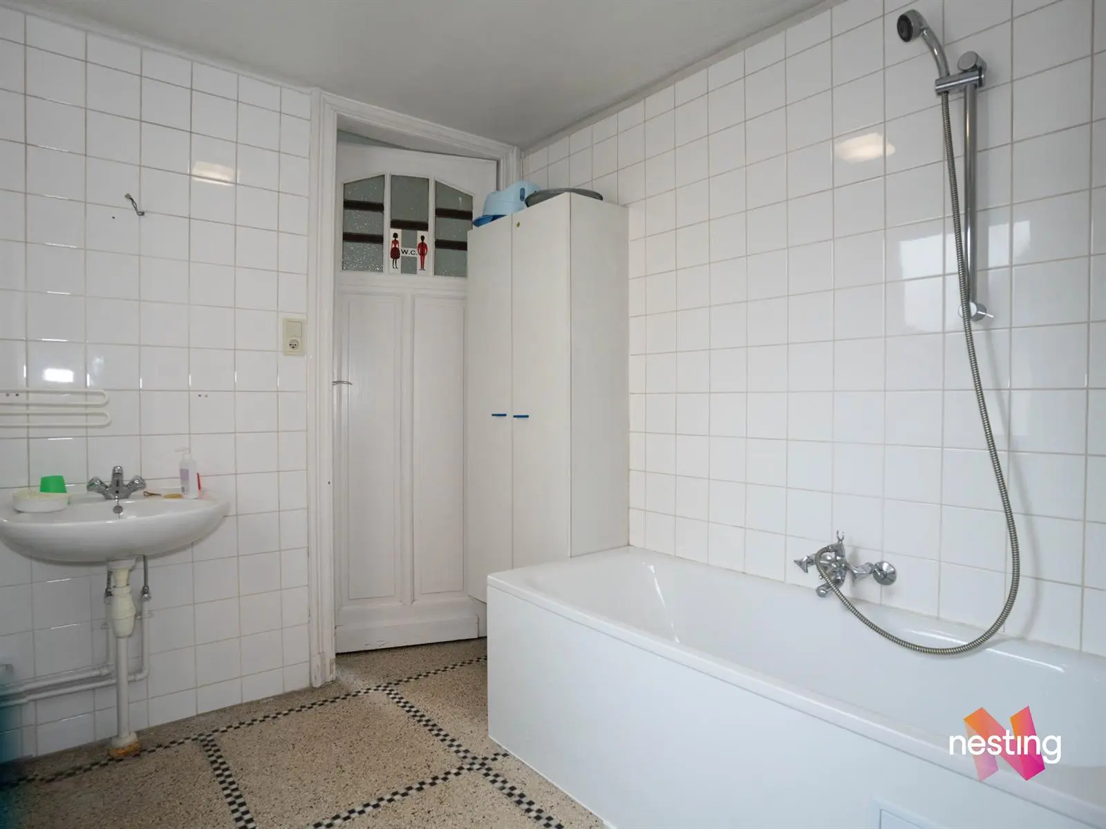 au 1er étage : une salle de bains, une grande pièce à vivre de +- 40m2 lumineux avec balcon, un wc séparé et une cuisine super équipée (+- 10 ans).