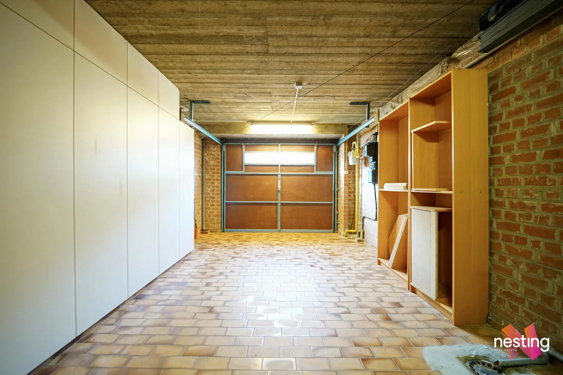 Hall d'entrée avec placards, WC, buanderie donnant sur une terrasse et le jardin, cave/bureau et garage (+ emplacement extérieur).