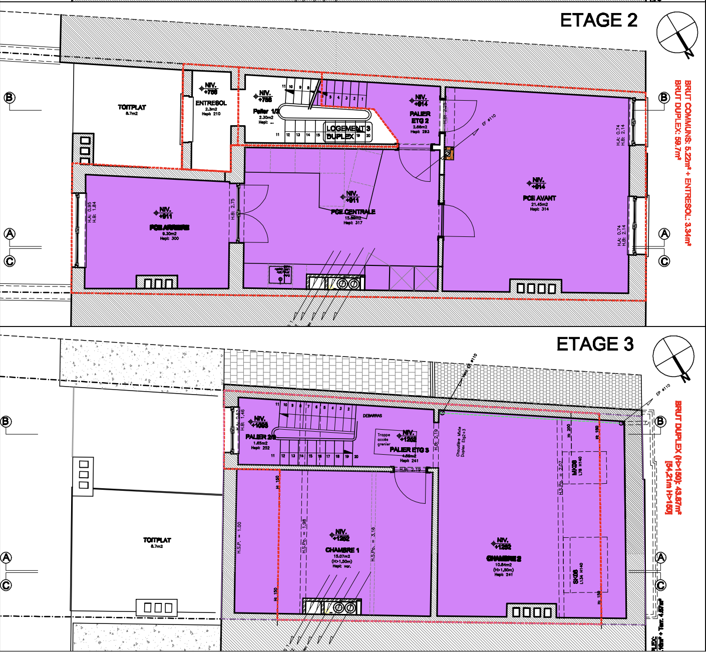 Une gaine technique centralisée dessert chaque lot et comprend notamment une conduite de cheminée CLV en inox pour chaudières ventouses, les raccordements VMC, une décharge d’égouttage, ainsi que les arrivées individuelles en gaz, électricité et eau.