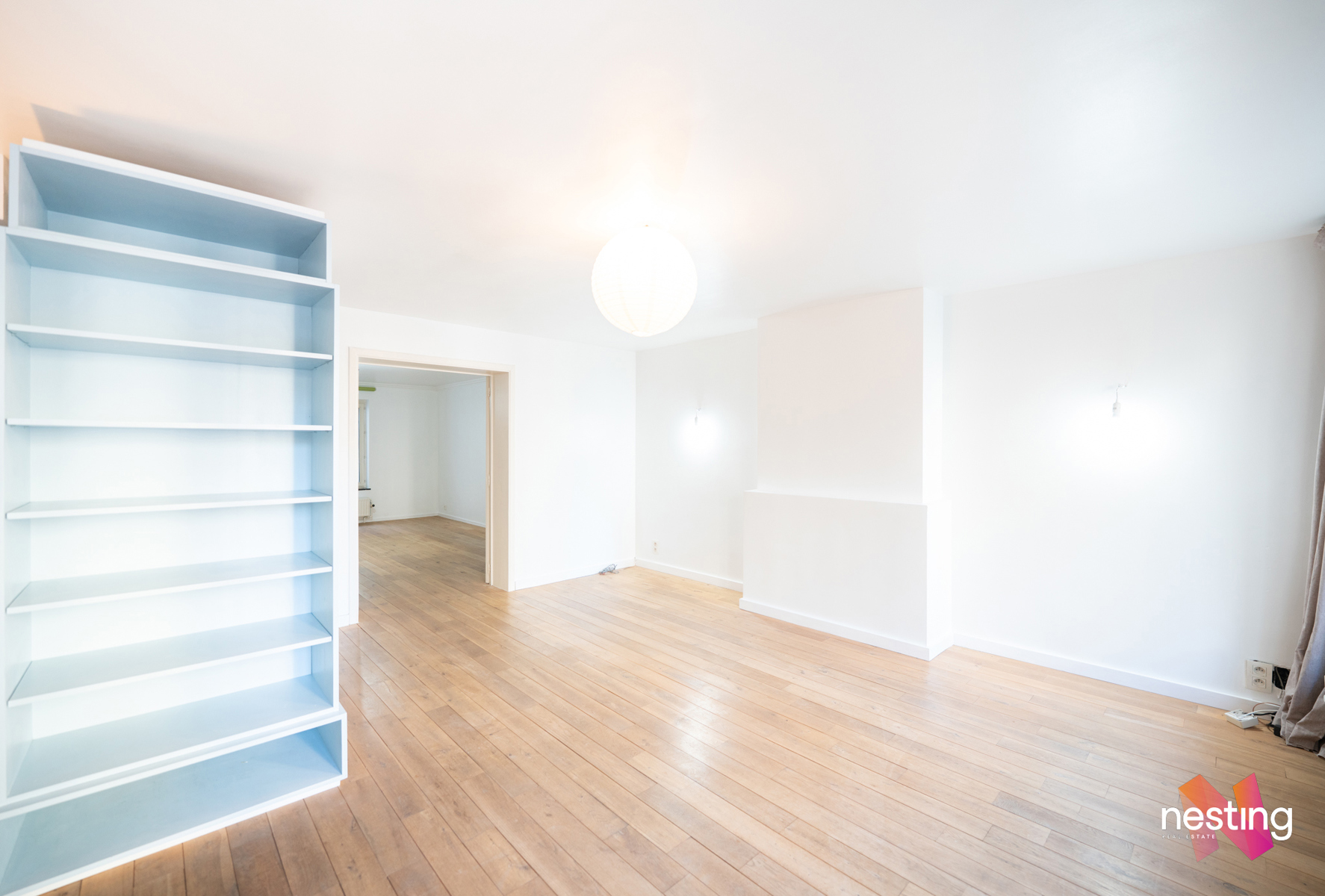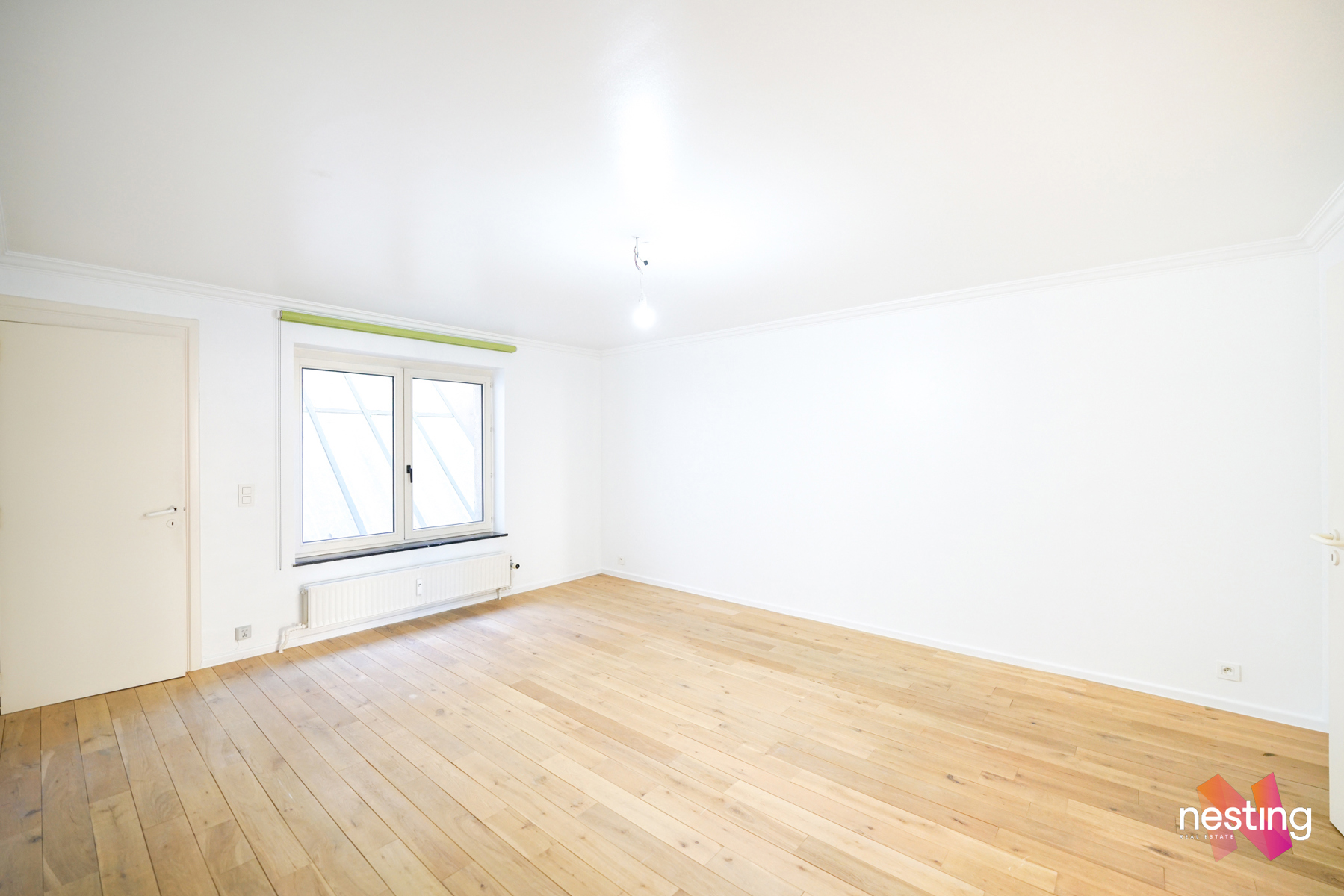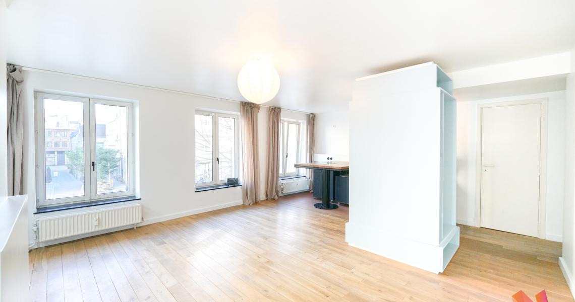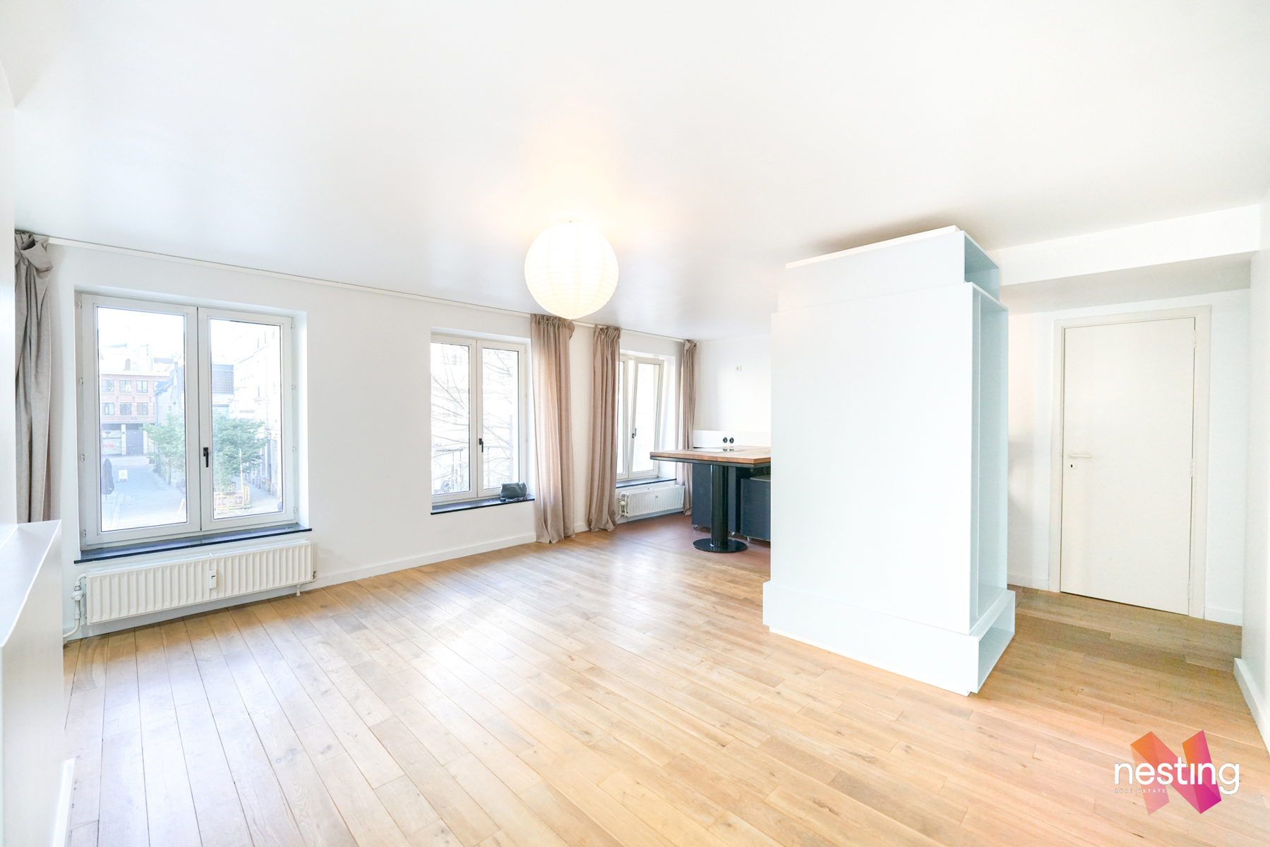Ce duplex vous offre un séjour de +/- 30 m², une cuisine américaine super équipée (+ machine à laver), une grande chambre de +/- 21 m², un bureau, une salle de bain et des WC séparés.