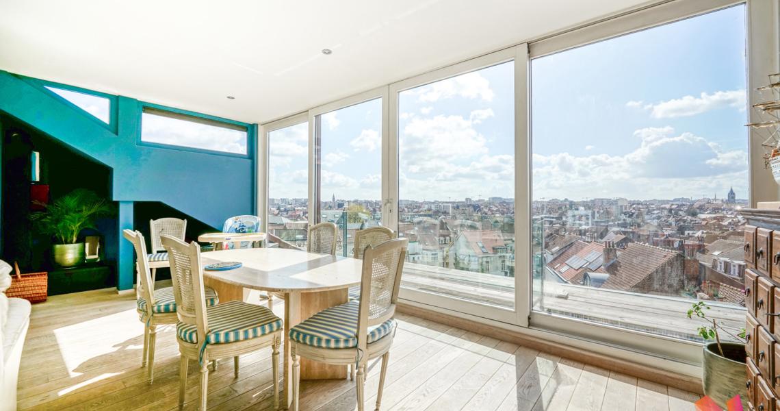 Etterbeek, rue du Cornet, à deux pas du Cinquantenaire, des transports en communs et des commerces, venez découvrir ce magnifique Penthouse de 200m2 (brut) comprenant :