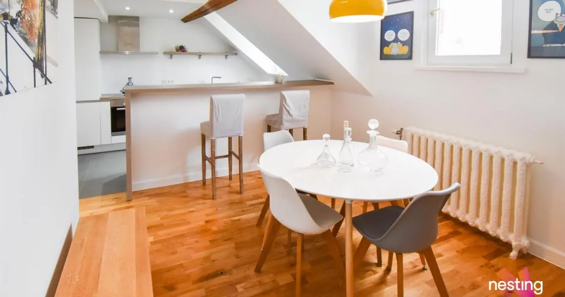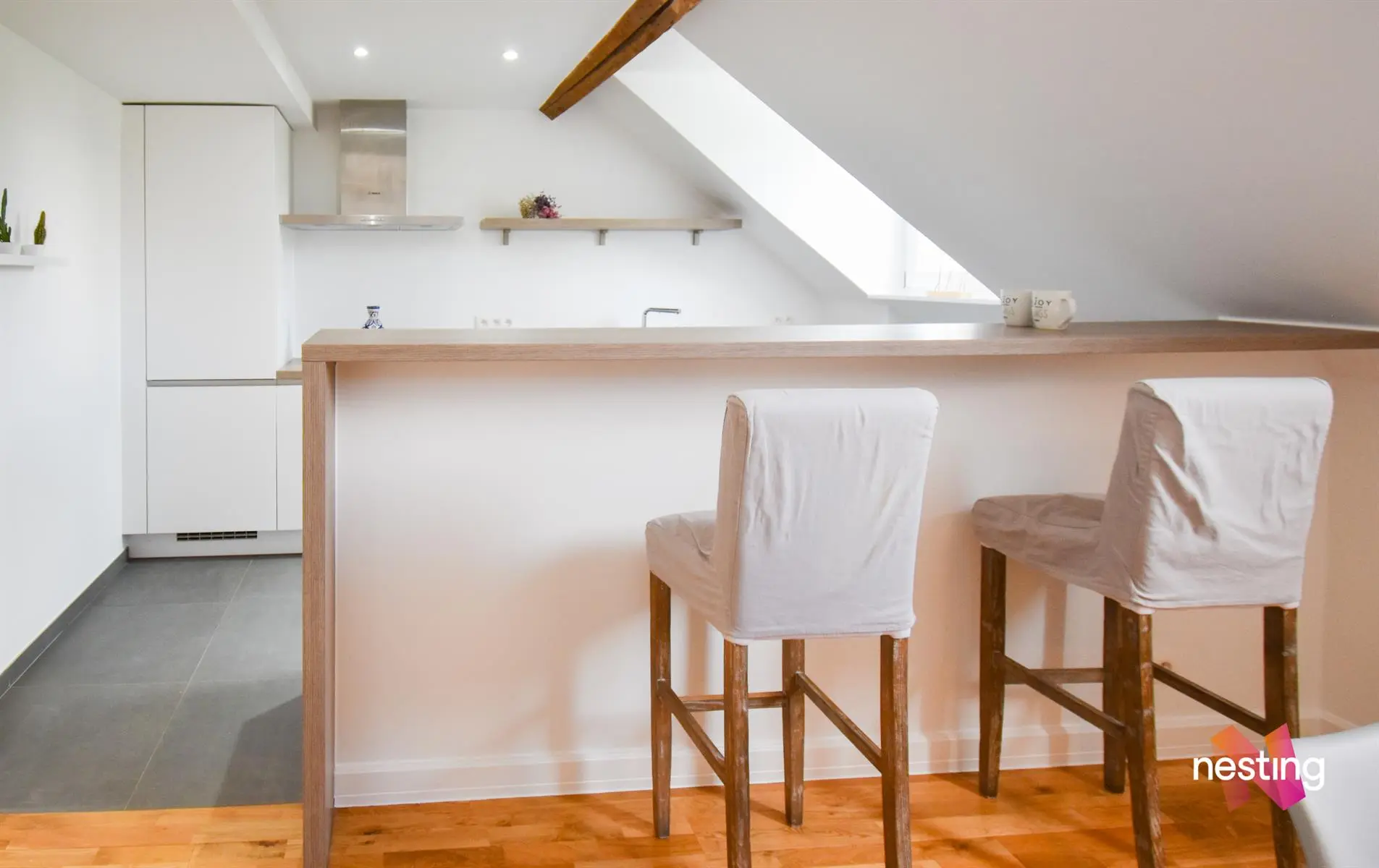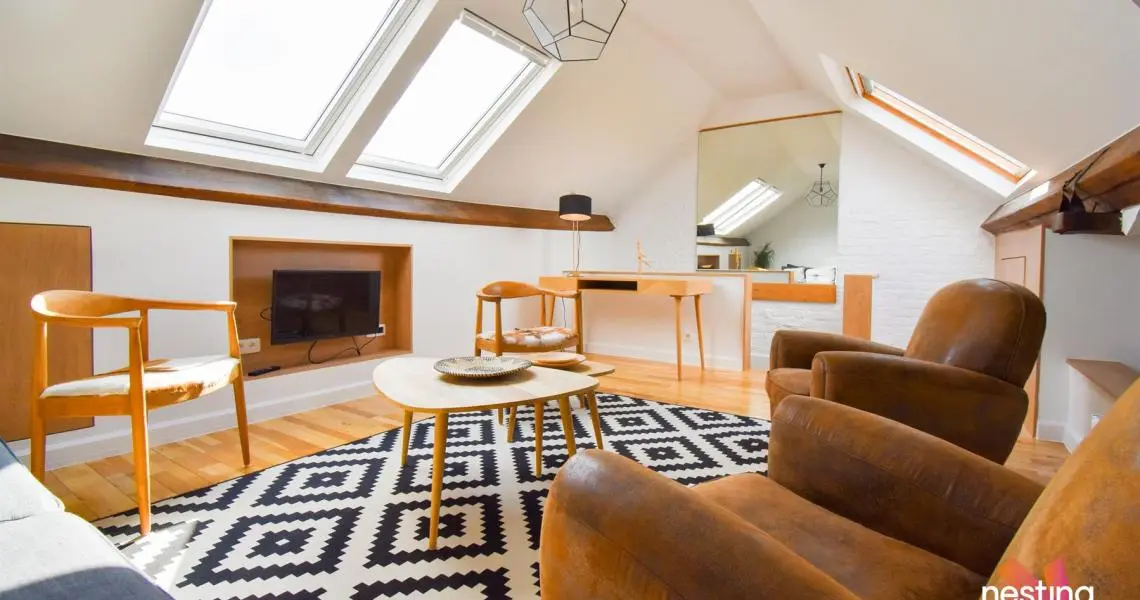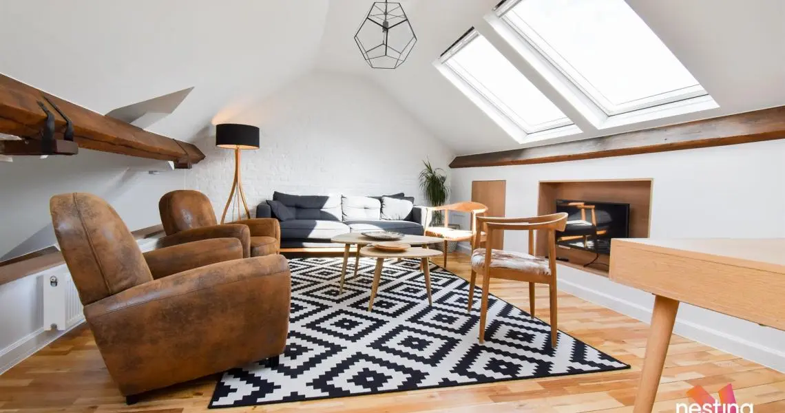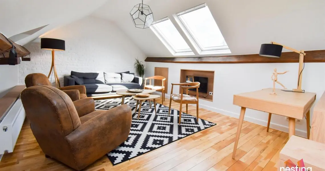 Superbe duplex complètement MEUBLE de +- 90 m² entièrement neuf, 2e occupation après rénovations de haut standing.