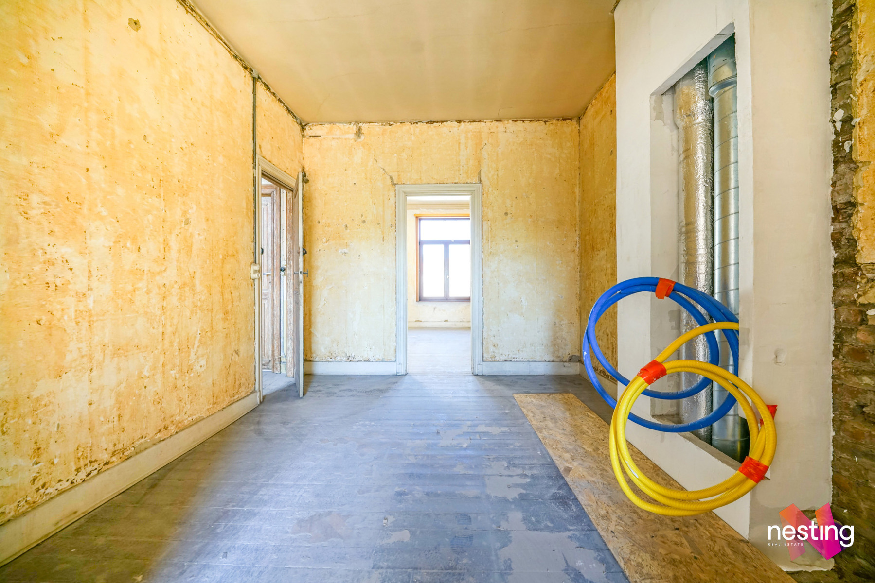 Possibilité d'aménagement : 2 chambres ( 12,5m² et 10,5m²), un séjour de ±20 m², une séjour, une cuisine et une salle de bains