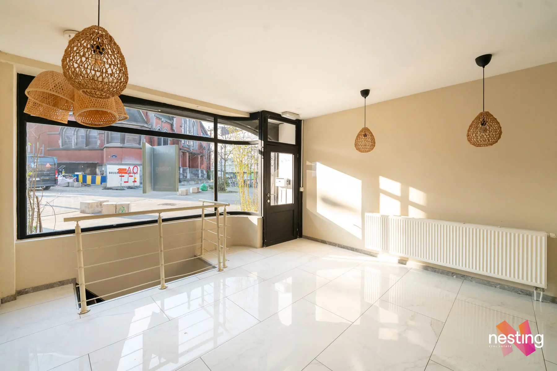 Superbe rez-de-chaussée commercial avec affectation horeca à remettre au gout du jour de +-65m2 réparti sur 3 pièces en enfilades + 55m2 de caves en sous-sol.