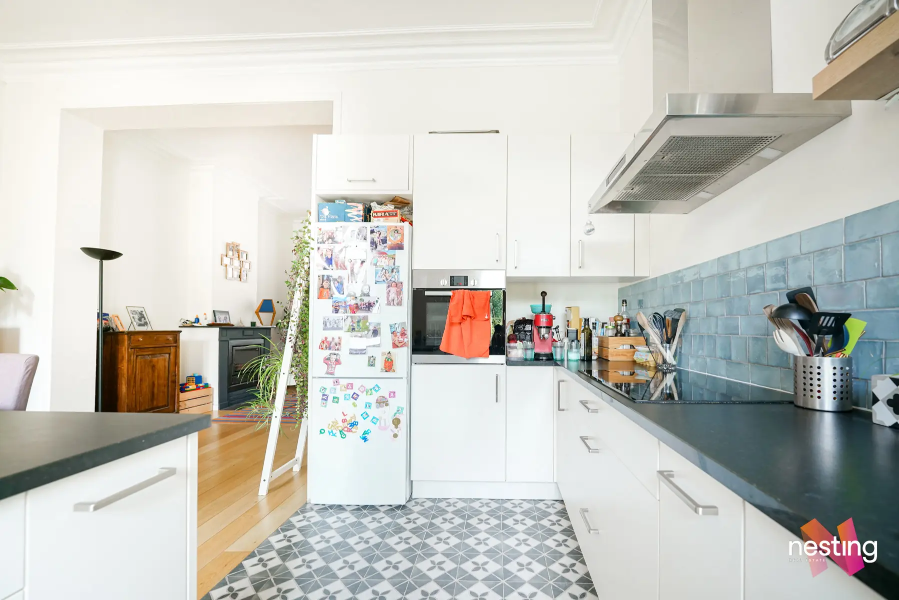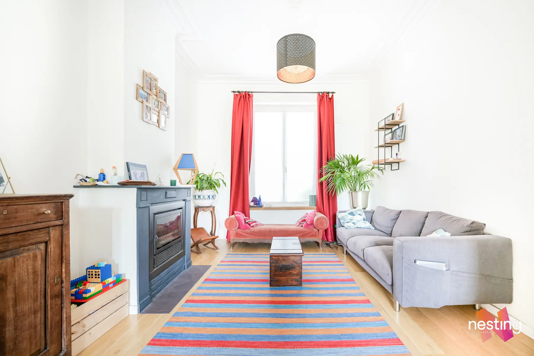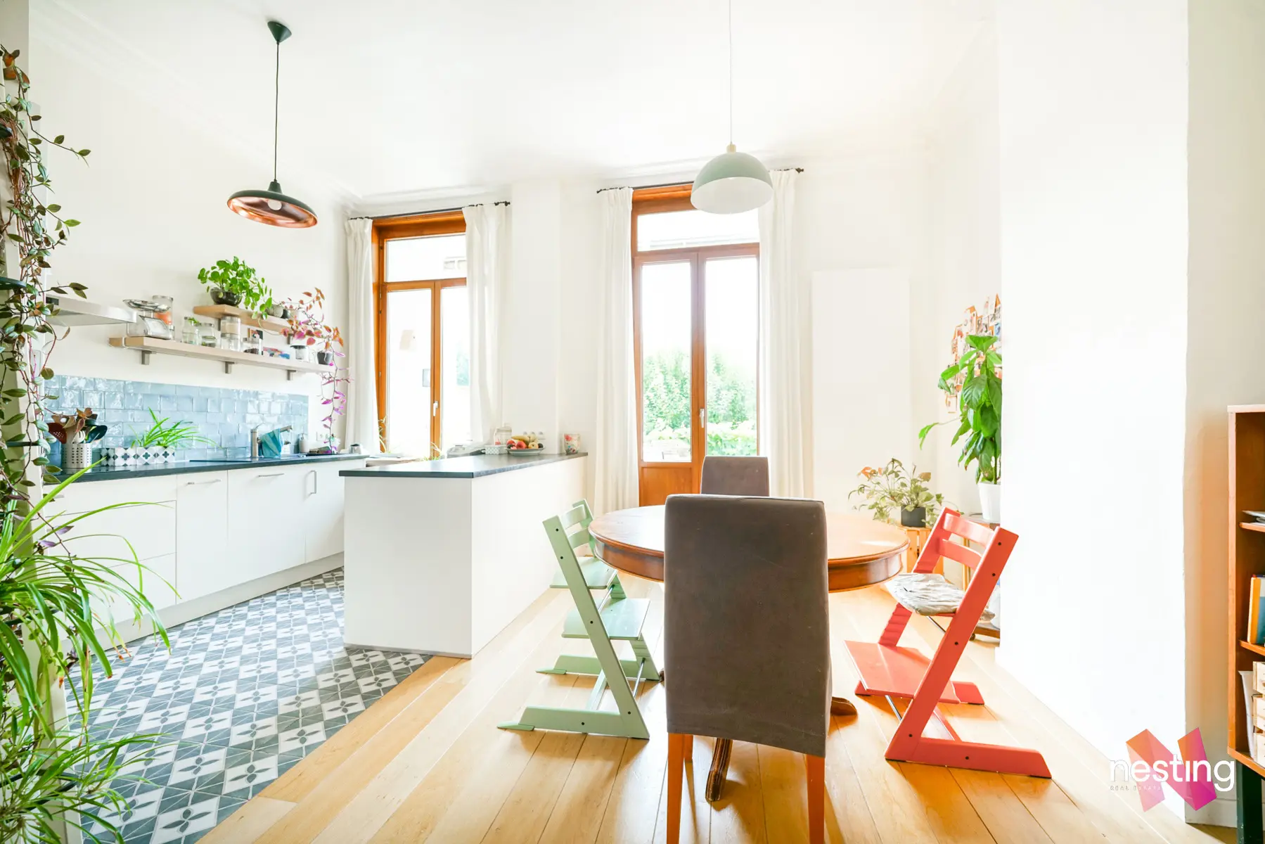 Berchem Sainte Agathe, Rue Hubert Blauwet, dans une rue calme à sens unique, à proximité du Basilix et de la Place Schweitzer, des transports en commun et des commerces, venez découvrir cette belle maison lumineuse de +- 230m² (brutes) rénovée en 2019 et composée comme suit :
