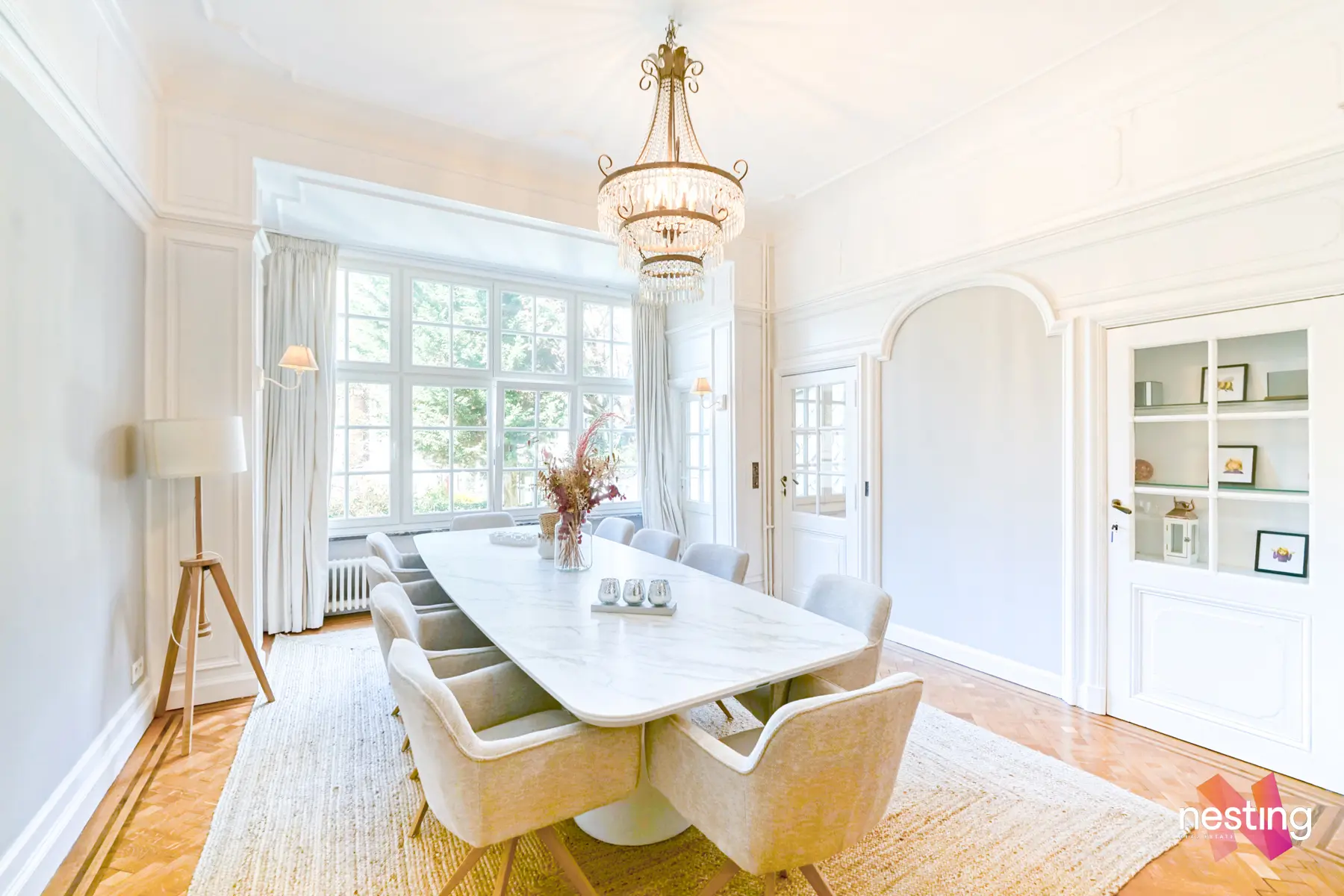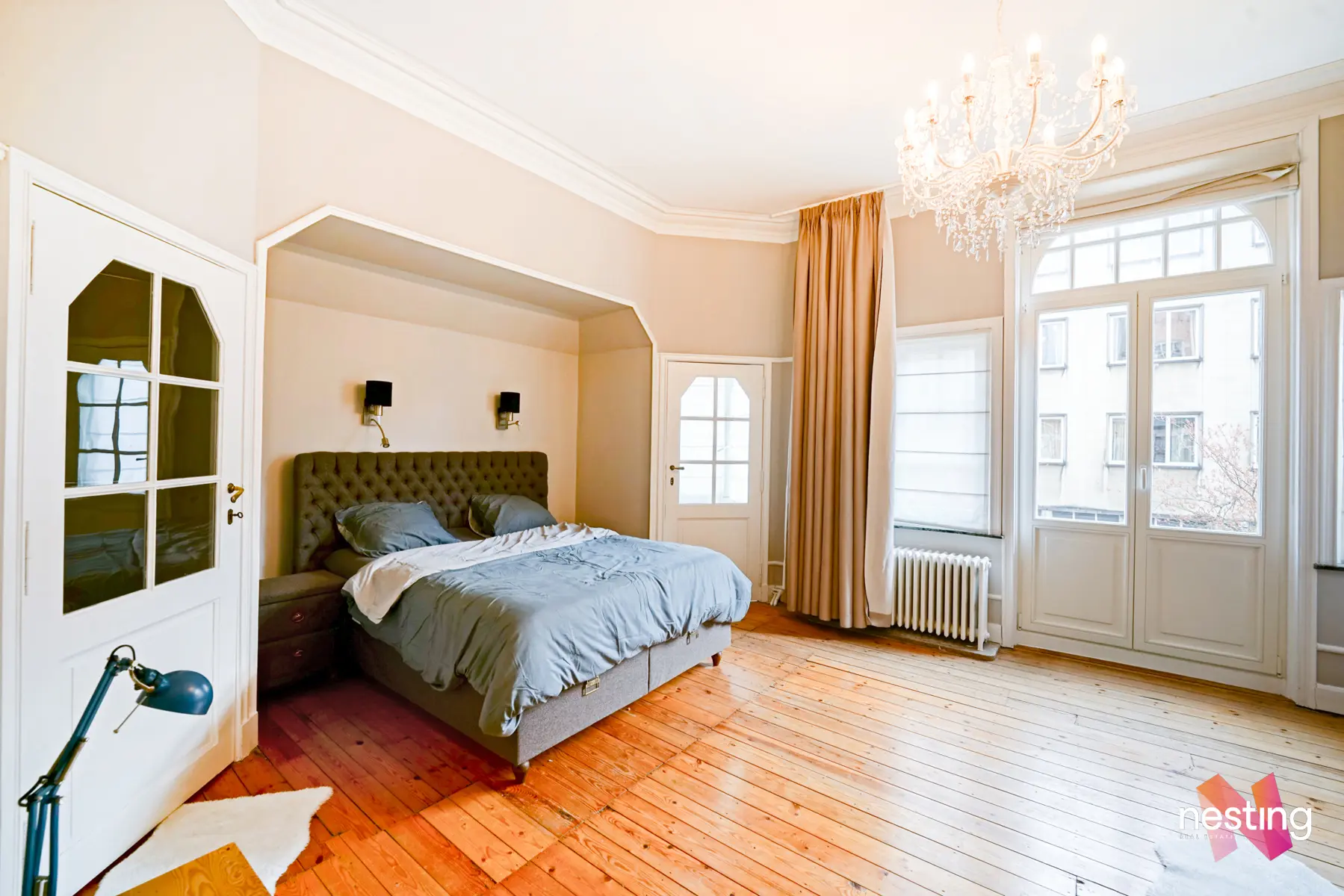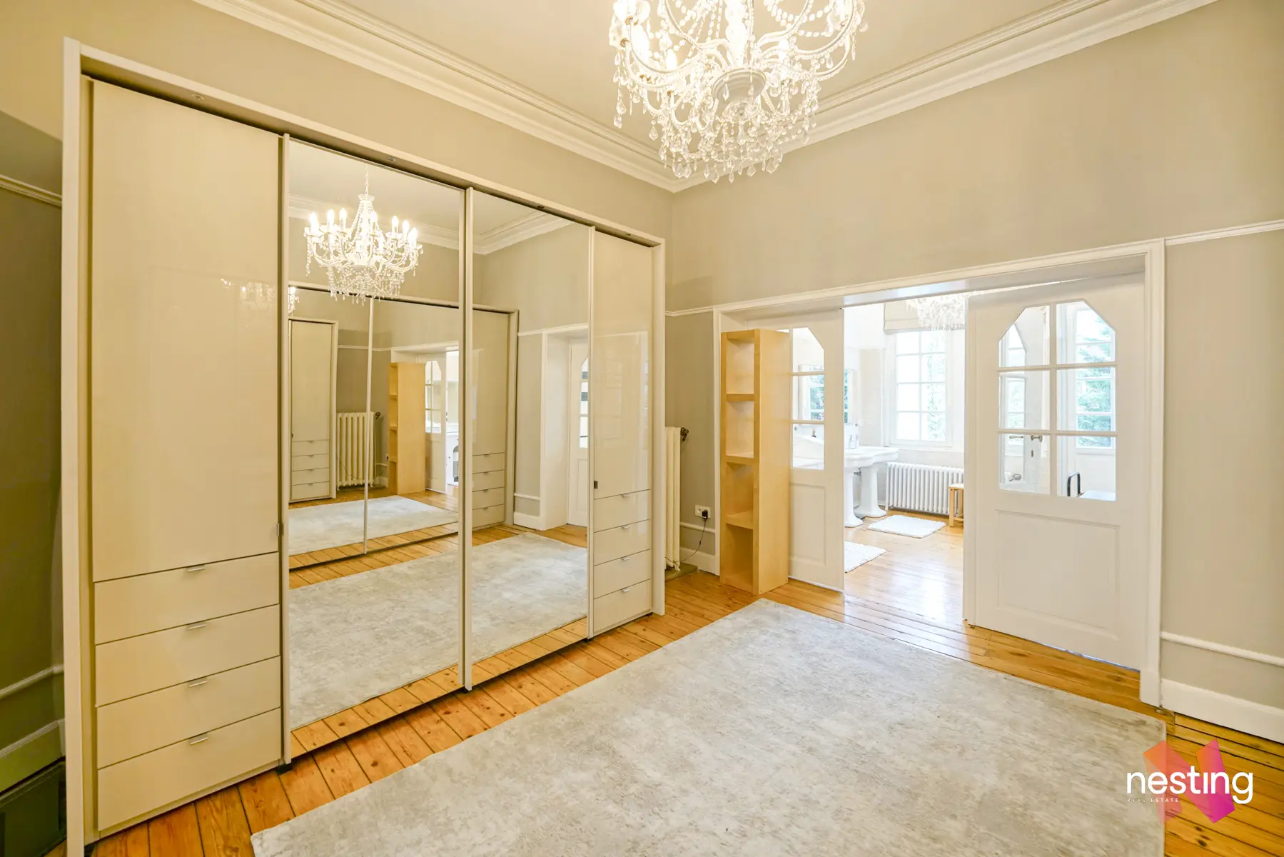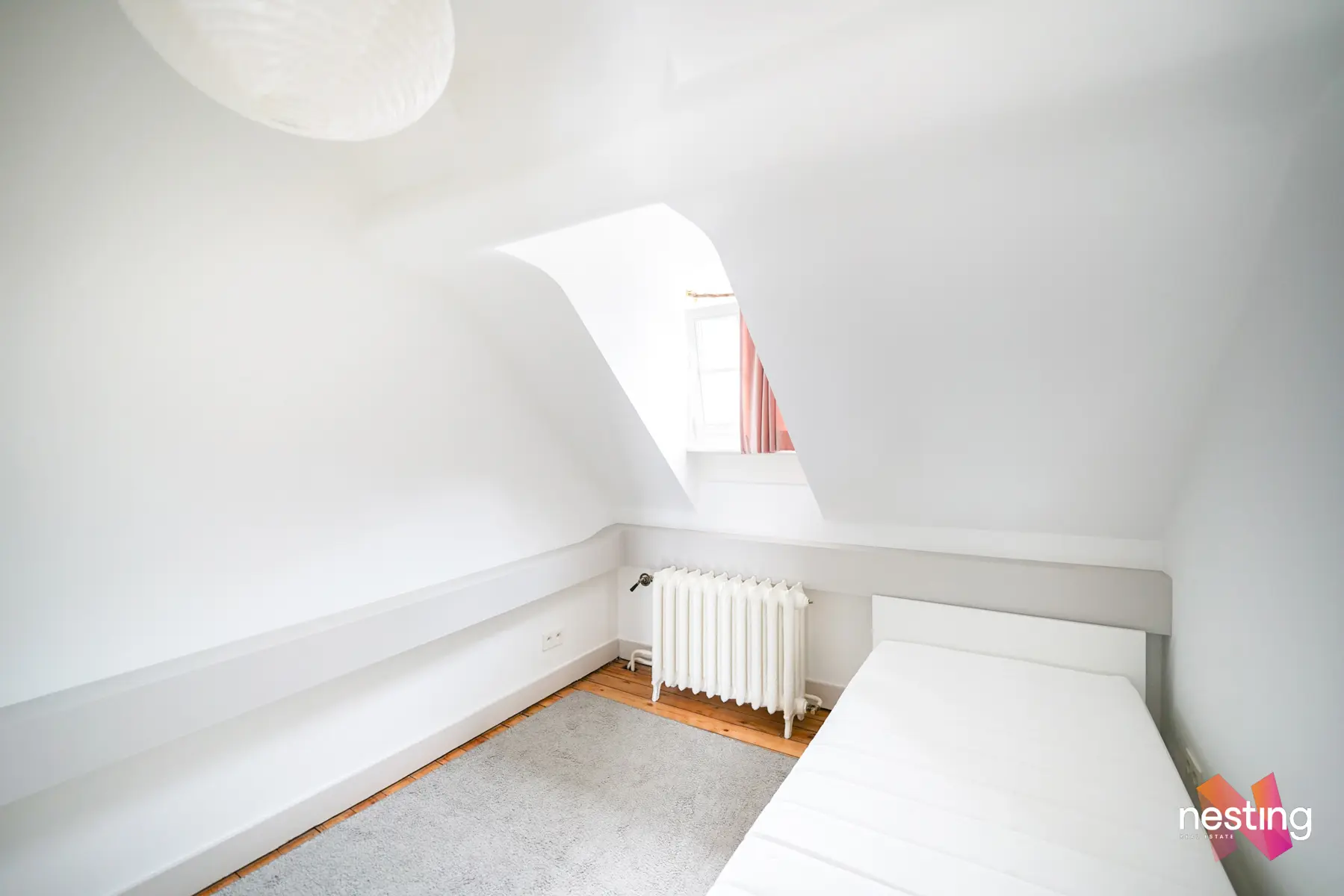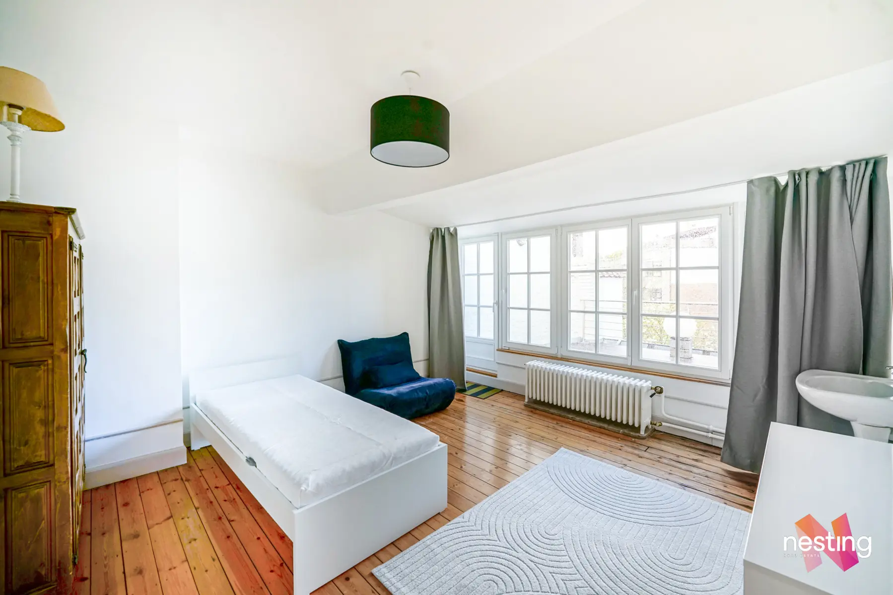 Située sur l’avenue Jeanne à Ixelles, à deux pas du Bois de la Cambre, de Université libre de Bruxelles, des commerces et des transports en commun, cette élégante maison de maître séduit par ses volumes généreux et son emplacement privilégié