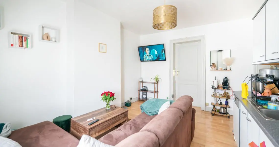 Au deuxième étage, un appartement de ±47 m² bruts (PEB F), comprenant un séjour de ±17 m² avec accès direct à un balcon, une cuisine ouverte équipée, une belle chambre de ±16 m², une salle de bains et un WC séparé.