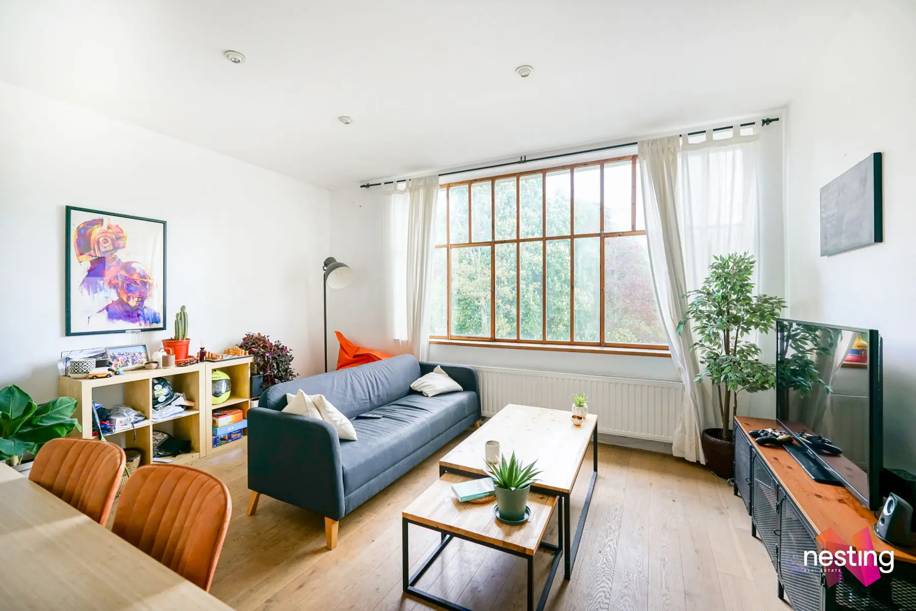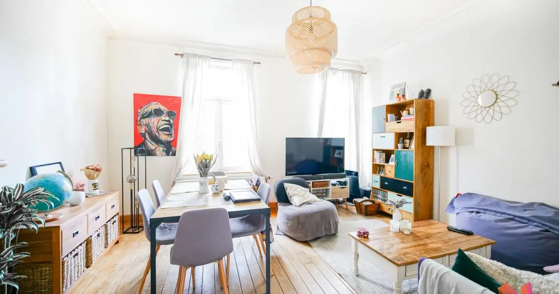 2e étage : un salon lumineux et une grande cuisine