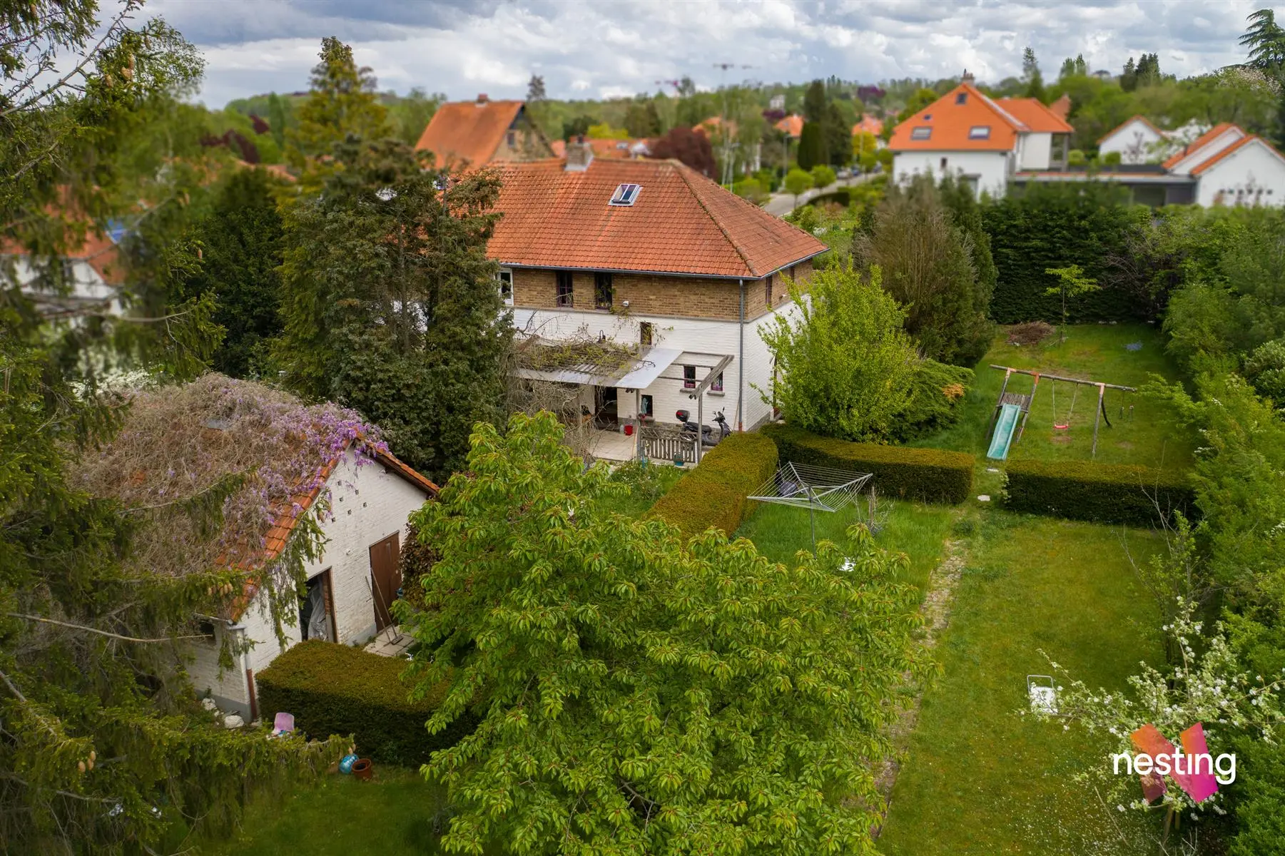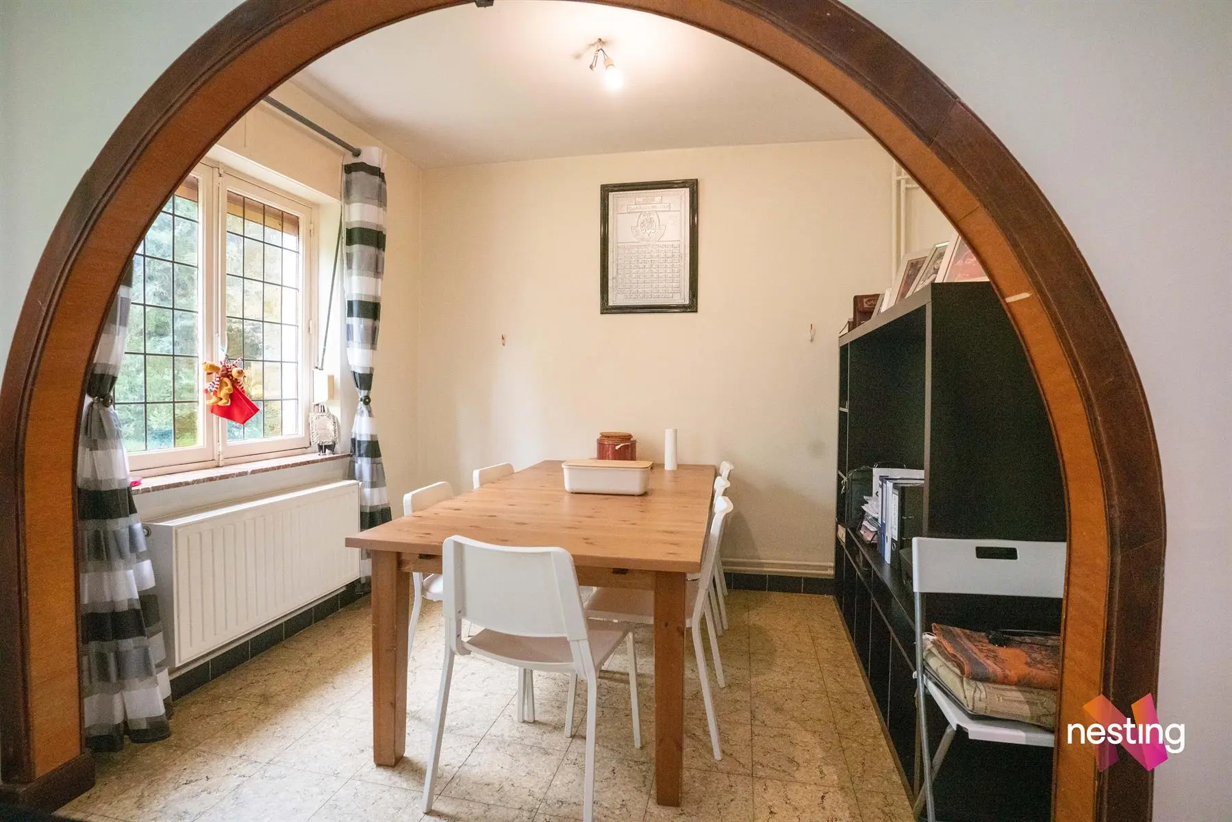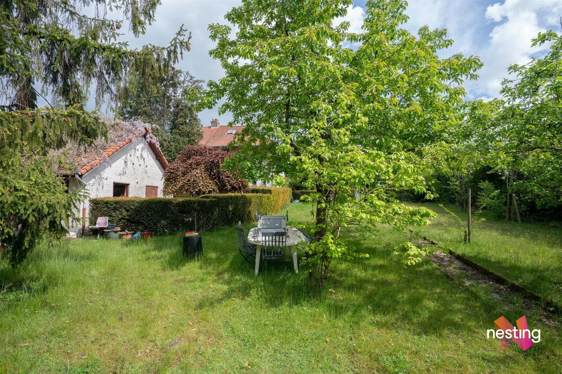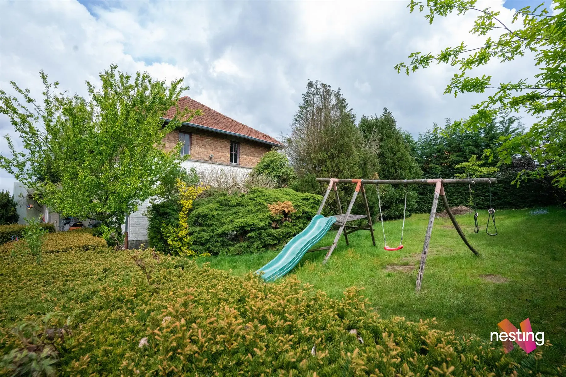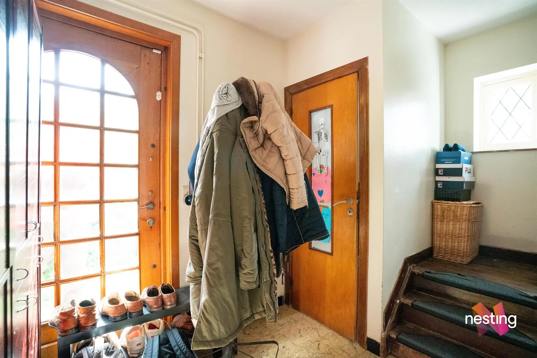 au Rez : hall d'entrée avec vestiaire et wc séparé, salon et salle à manger, cuisine équipée donnant sur la terrasse et le jardin de +/-690m2 orienté ouest / sud-ouest