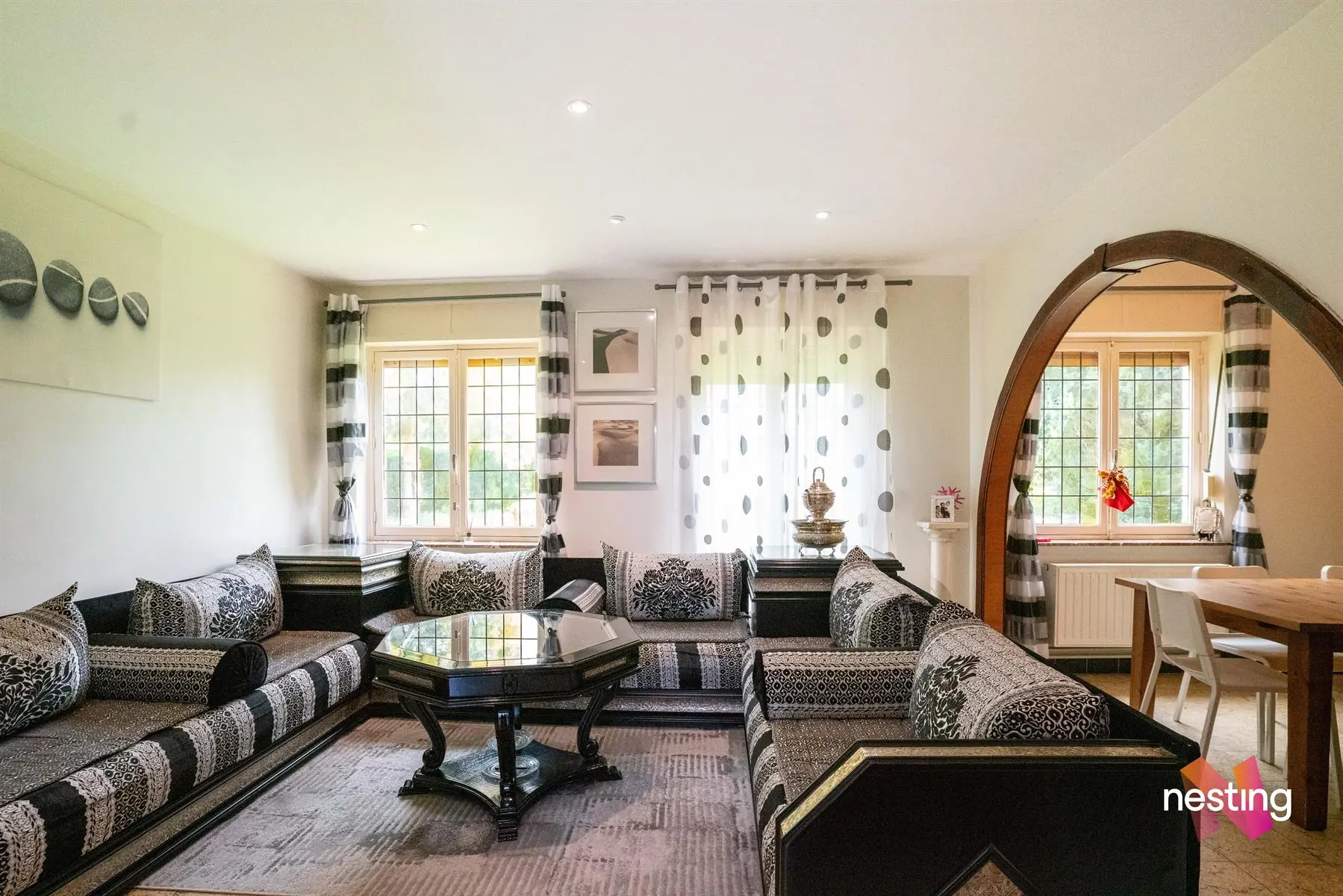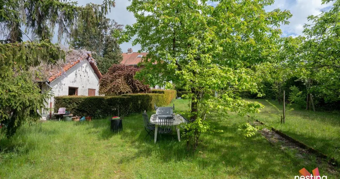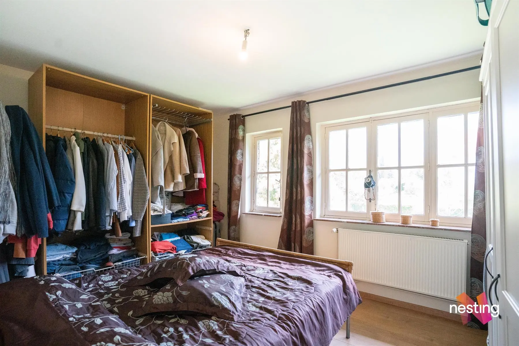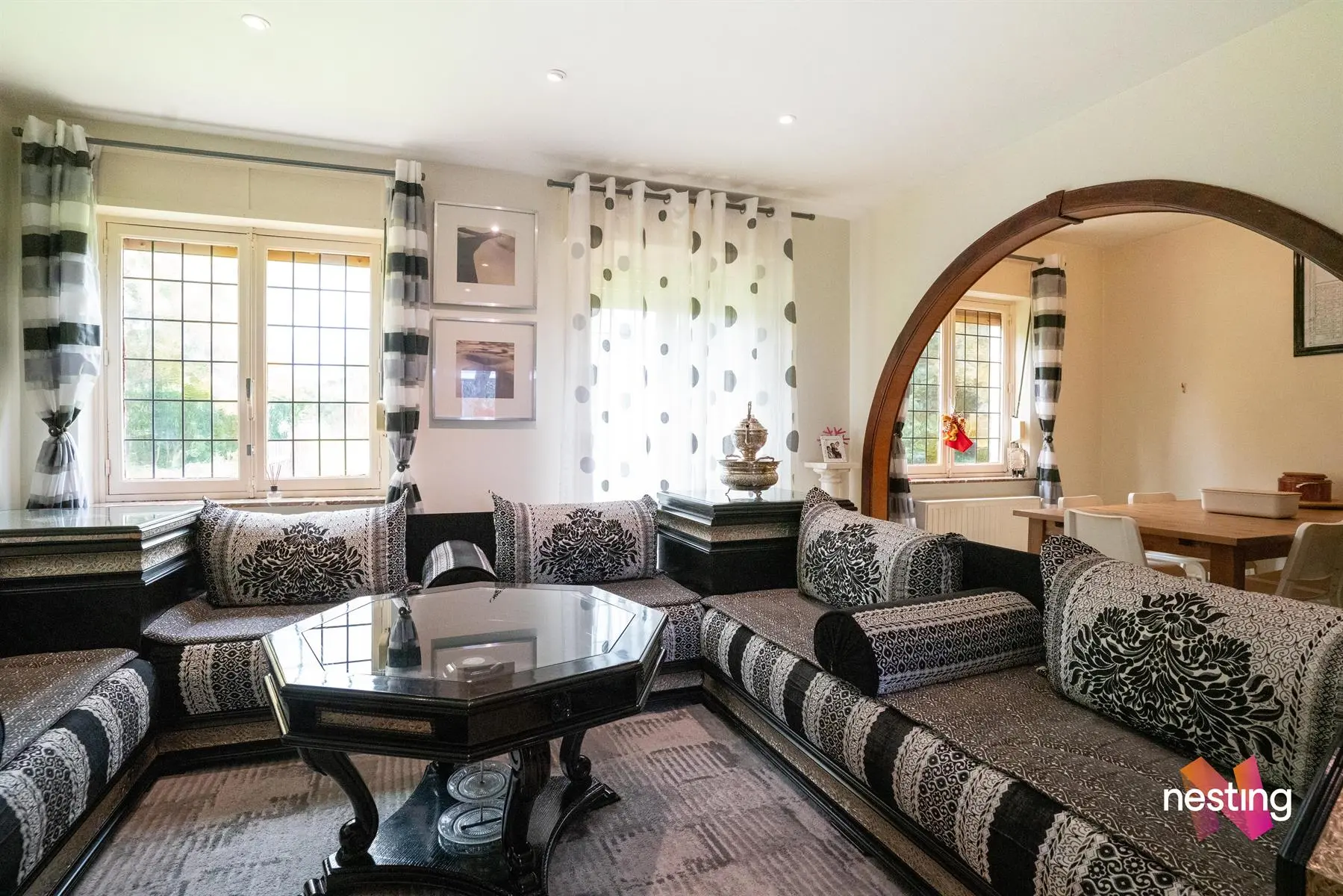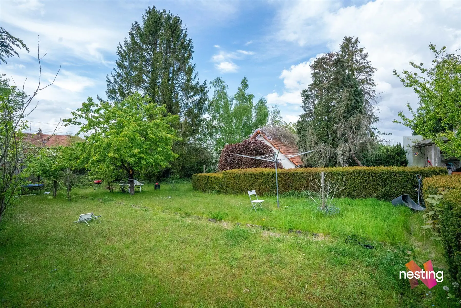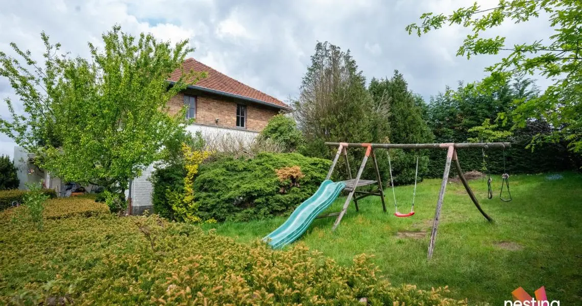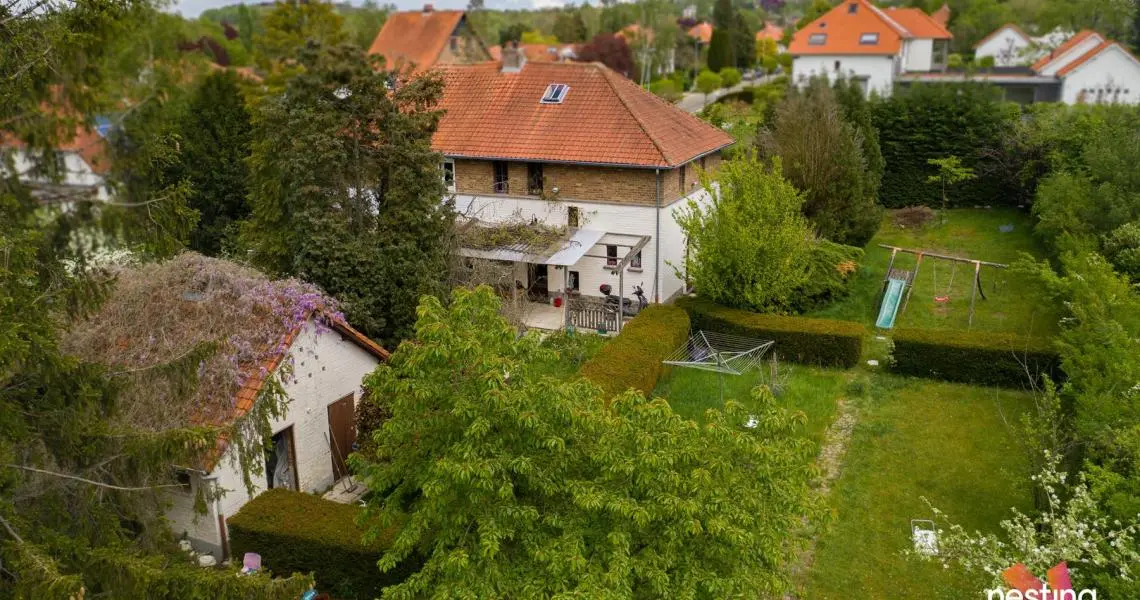 au Rez : hall d'entrée avec vestiaire et wc séparé, salon et salle à manger, cuisine équipée donnant sur la terrasse et le jardin de +/-690m2 orienté ouest / sud-ouest