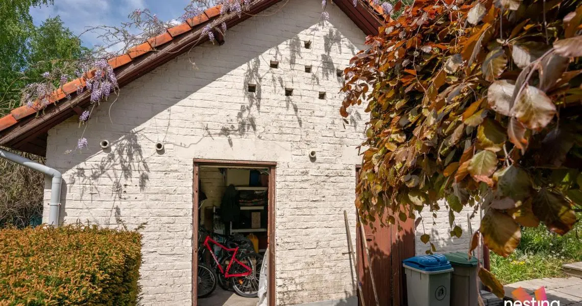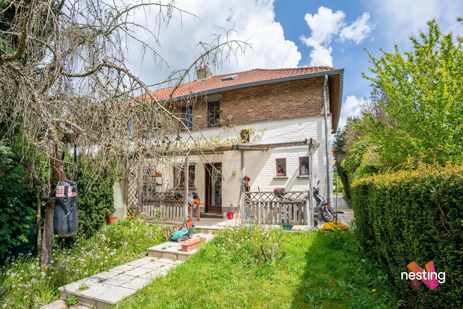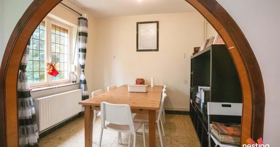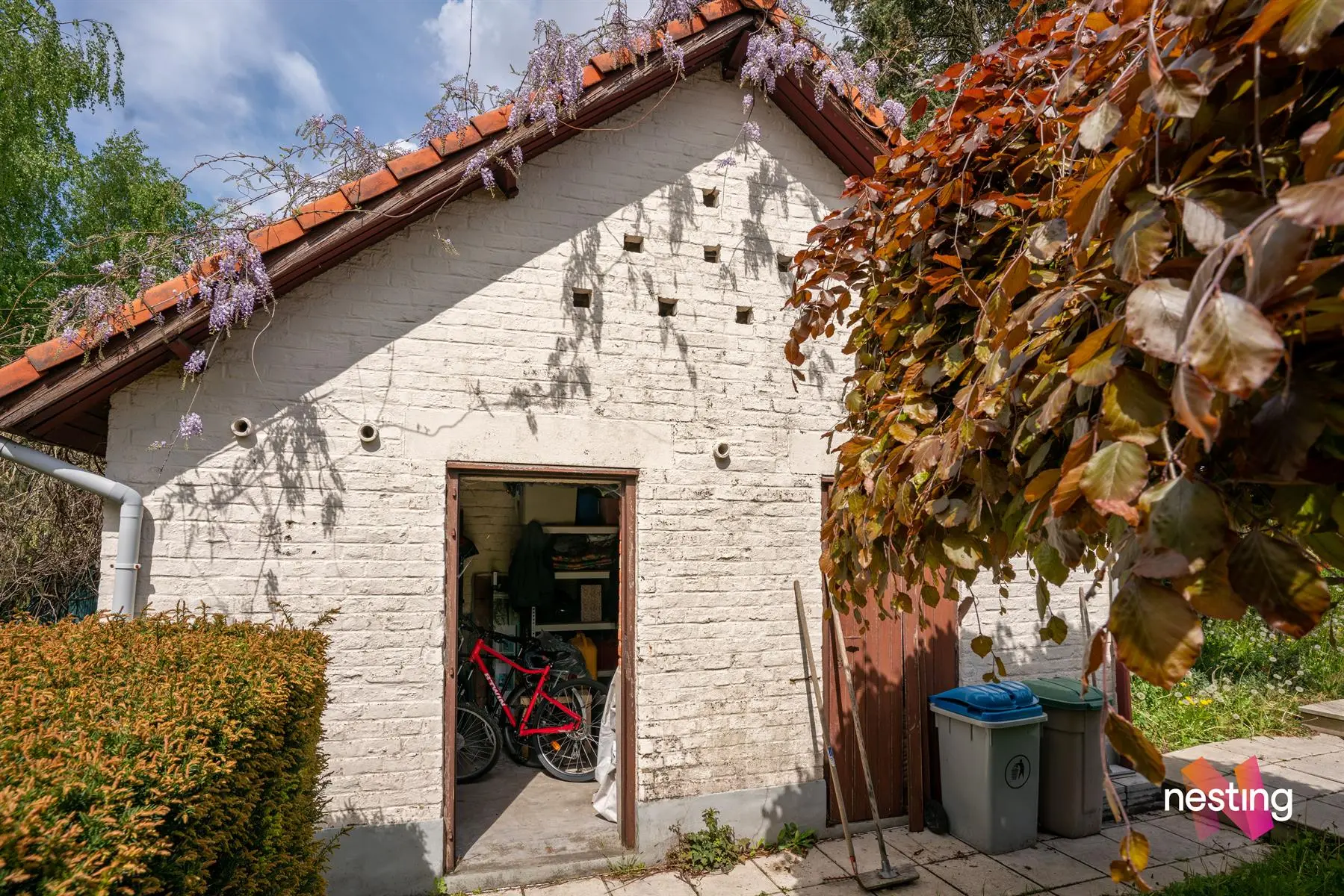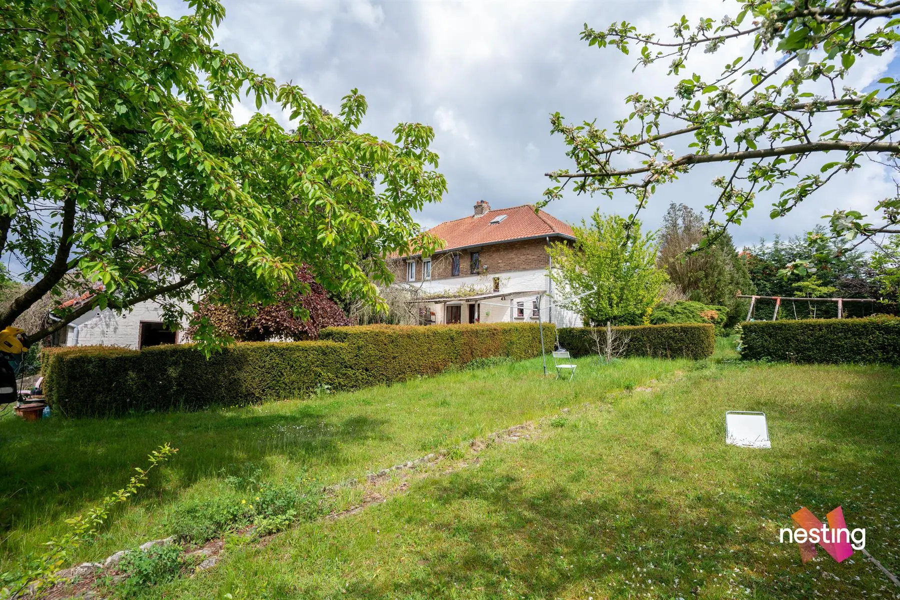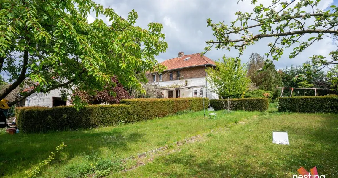 au Rez : hall d'entrée avec vestiaire et wc séparé, salon et salle à manger, cuisine équipée donnant sur la terrasse et le jardin de +/-690m2 orienté ouest / sud-ouest